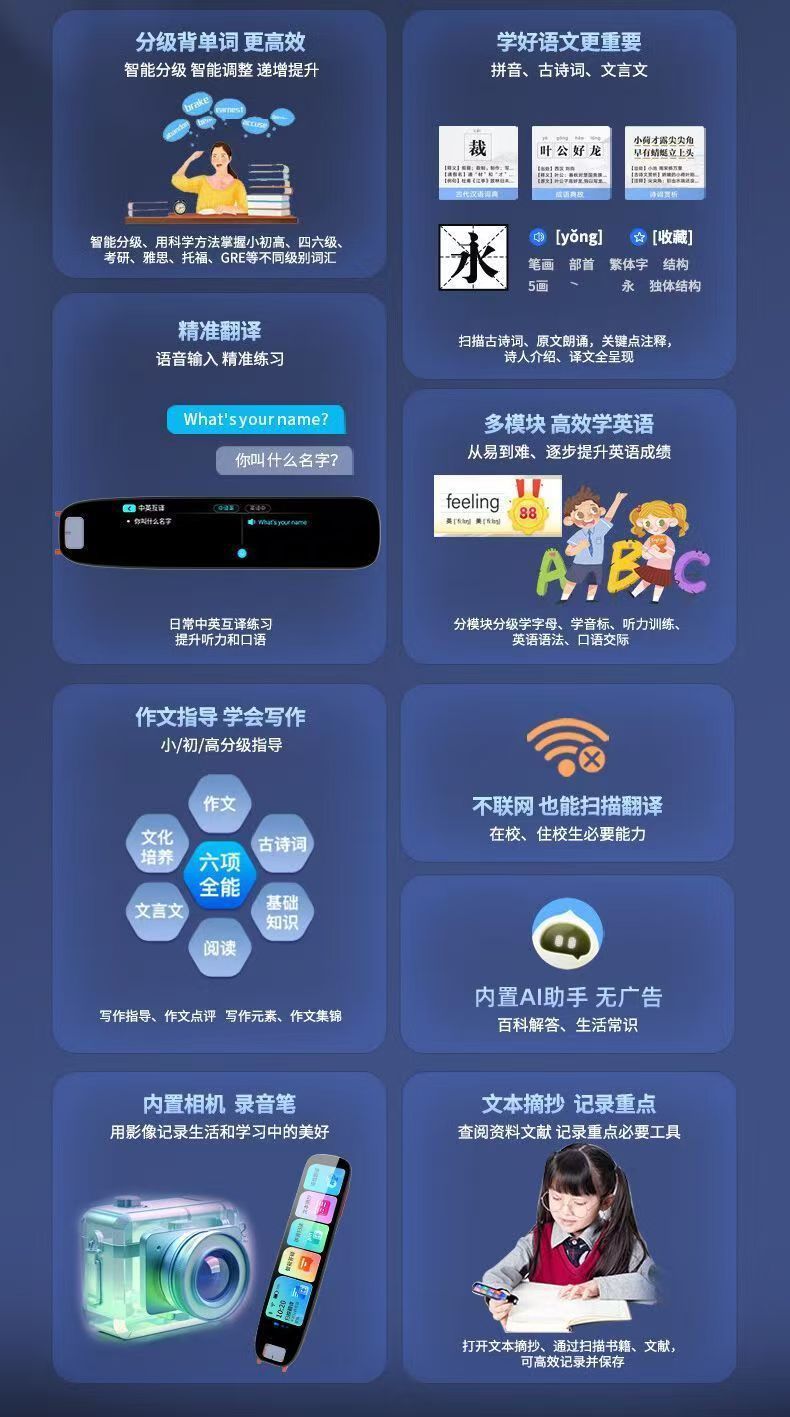 新款智能点读笔万能通用5Gwifi多语言翻译笔词典笔小初高离线