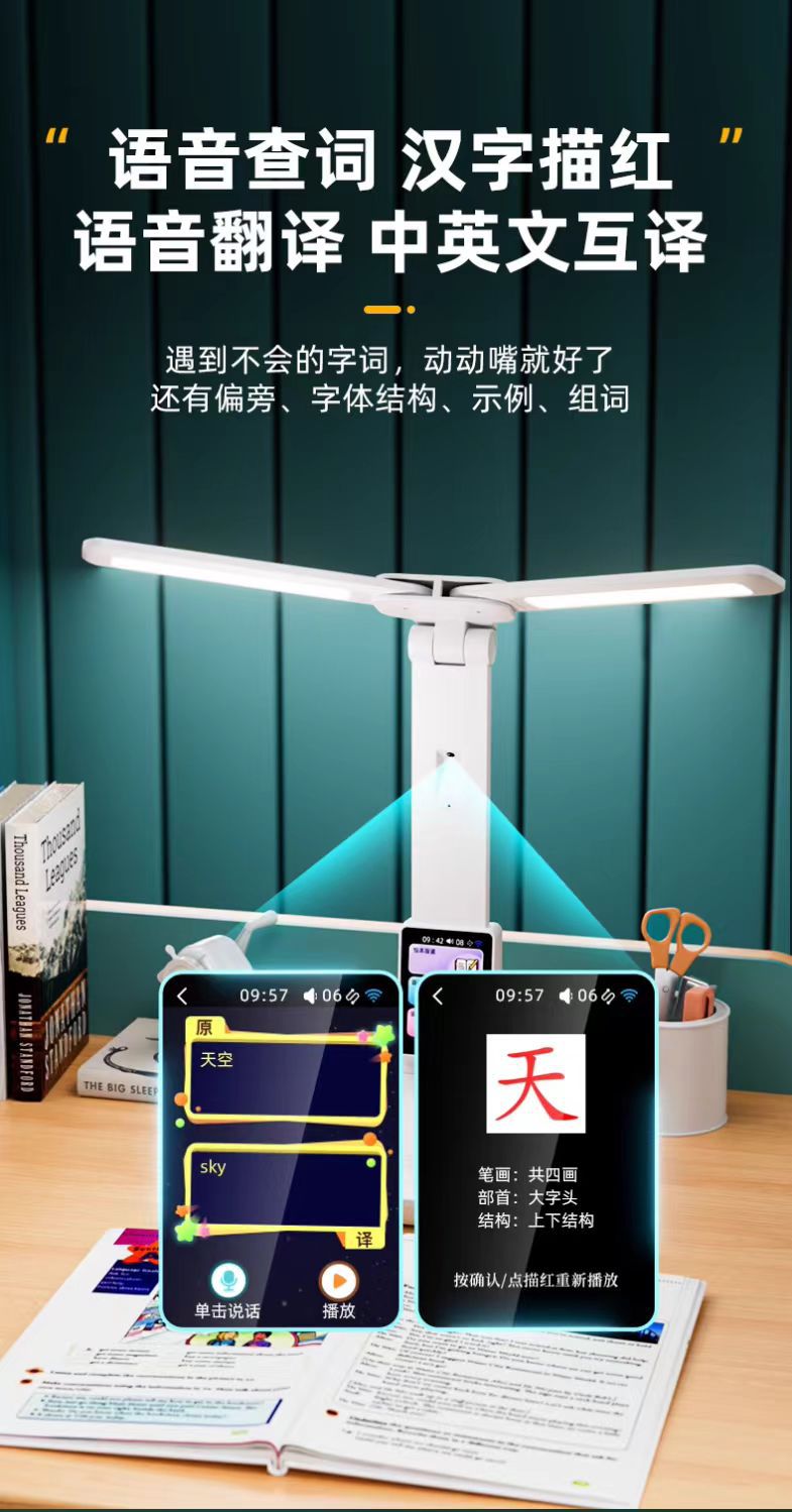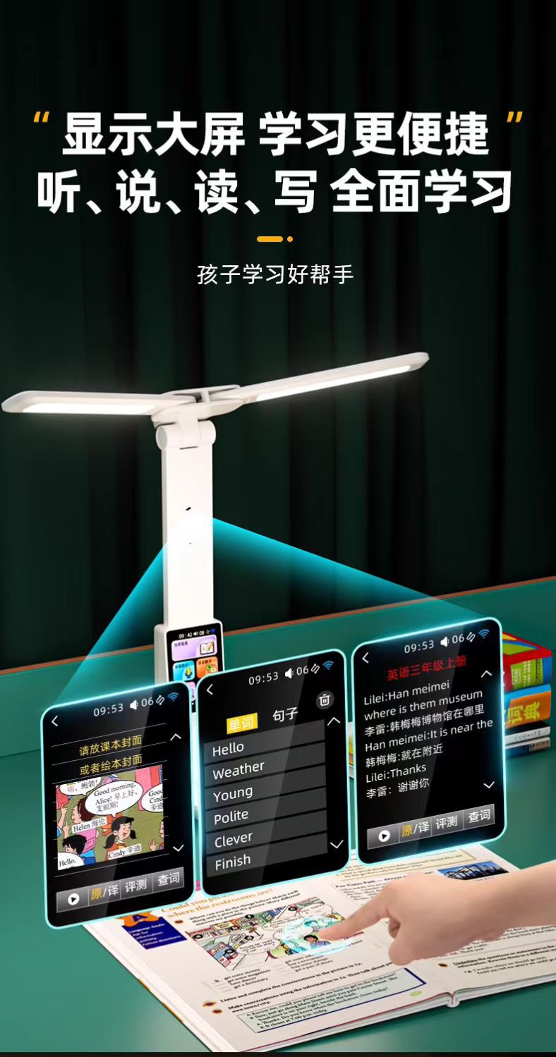 3寸屏幕智能护眼指读阅读绘本台灯 同步英数语课本学习机床头灯