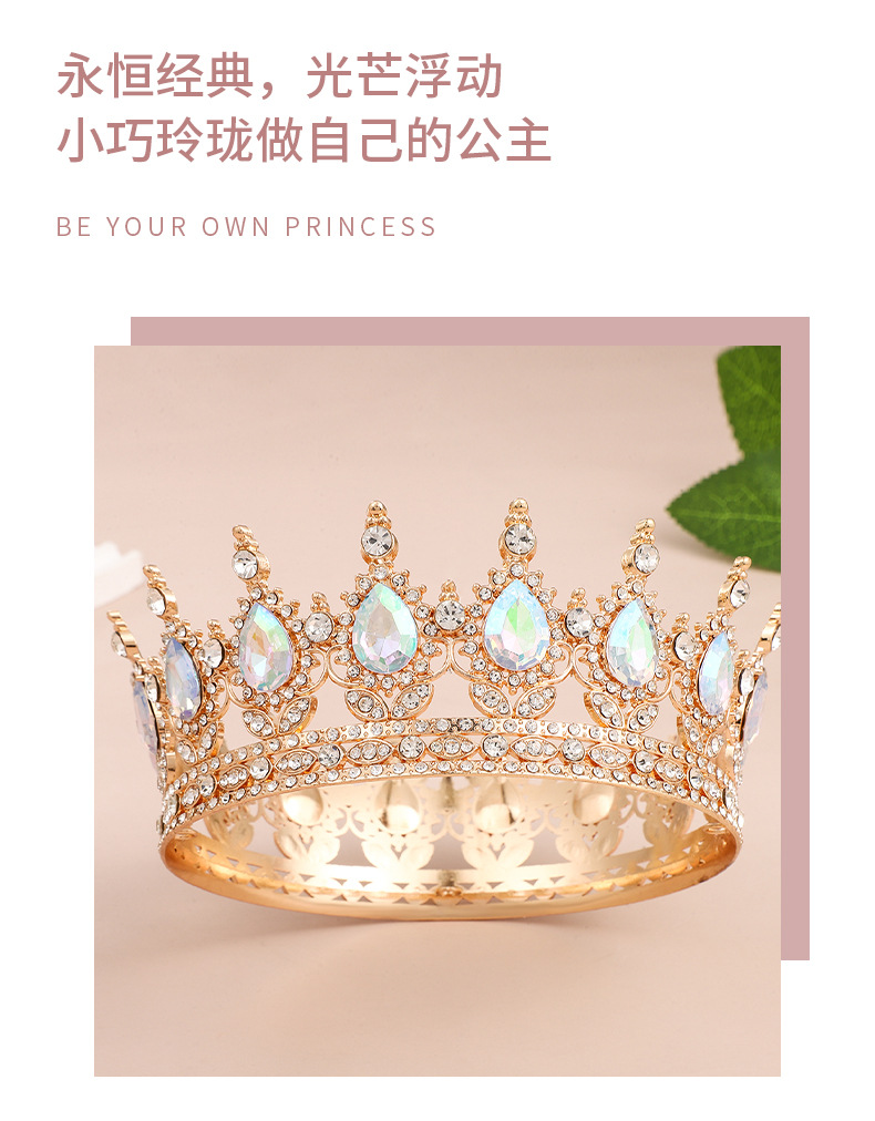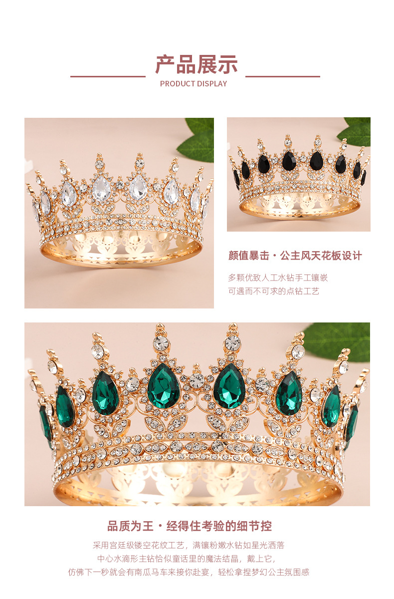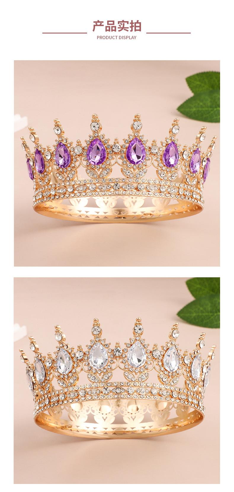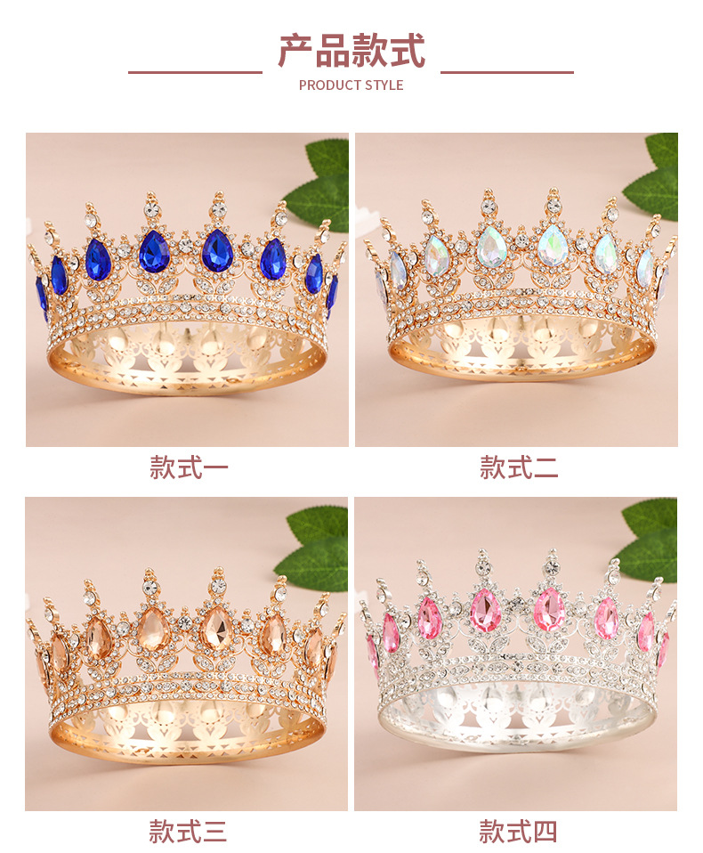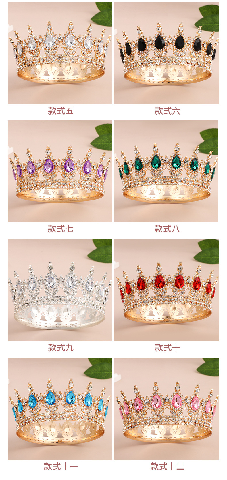 跨境圆冠巴洛克合金圆皇冠水钻头饰生日成人礼皇冠圆型王冠皇冠女