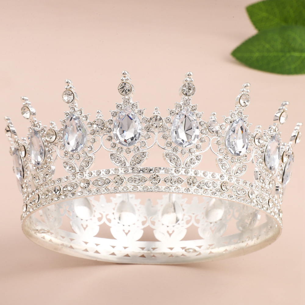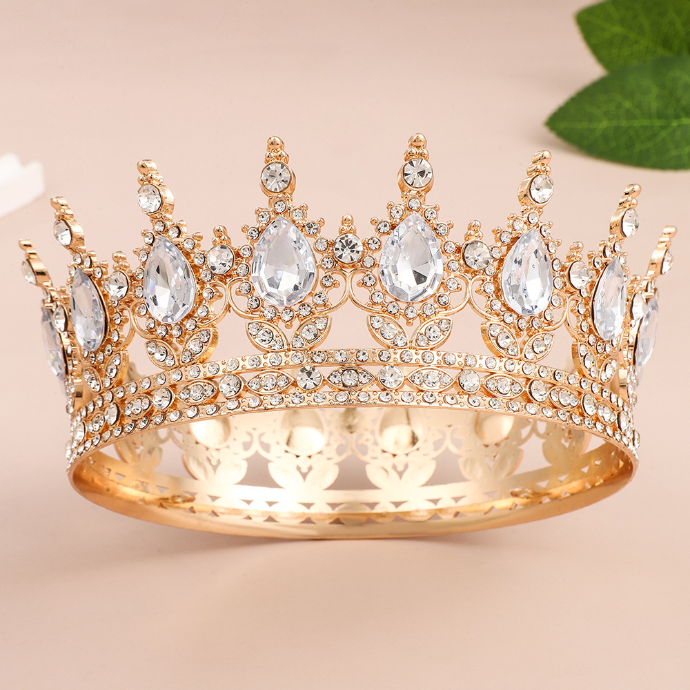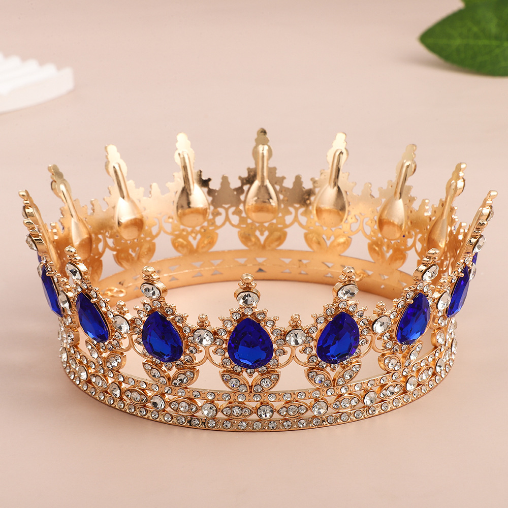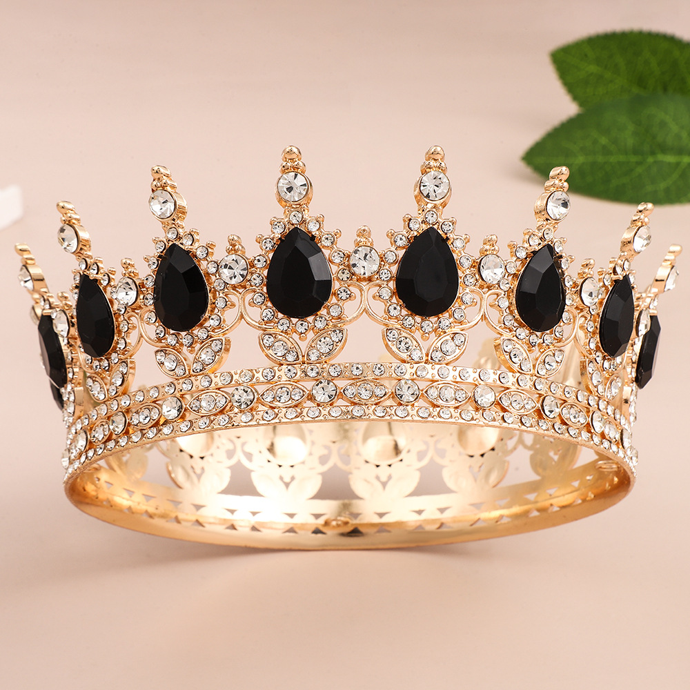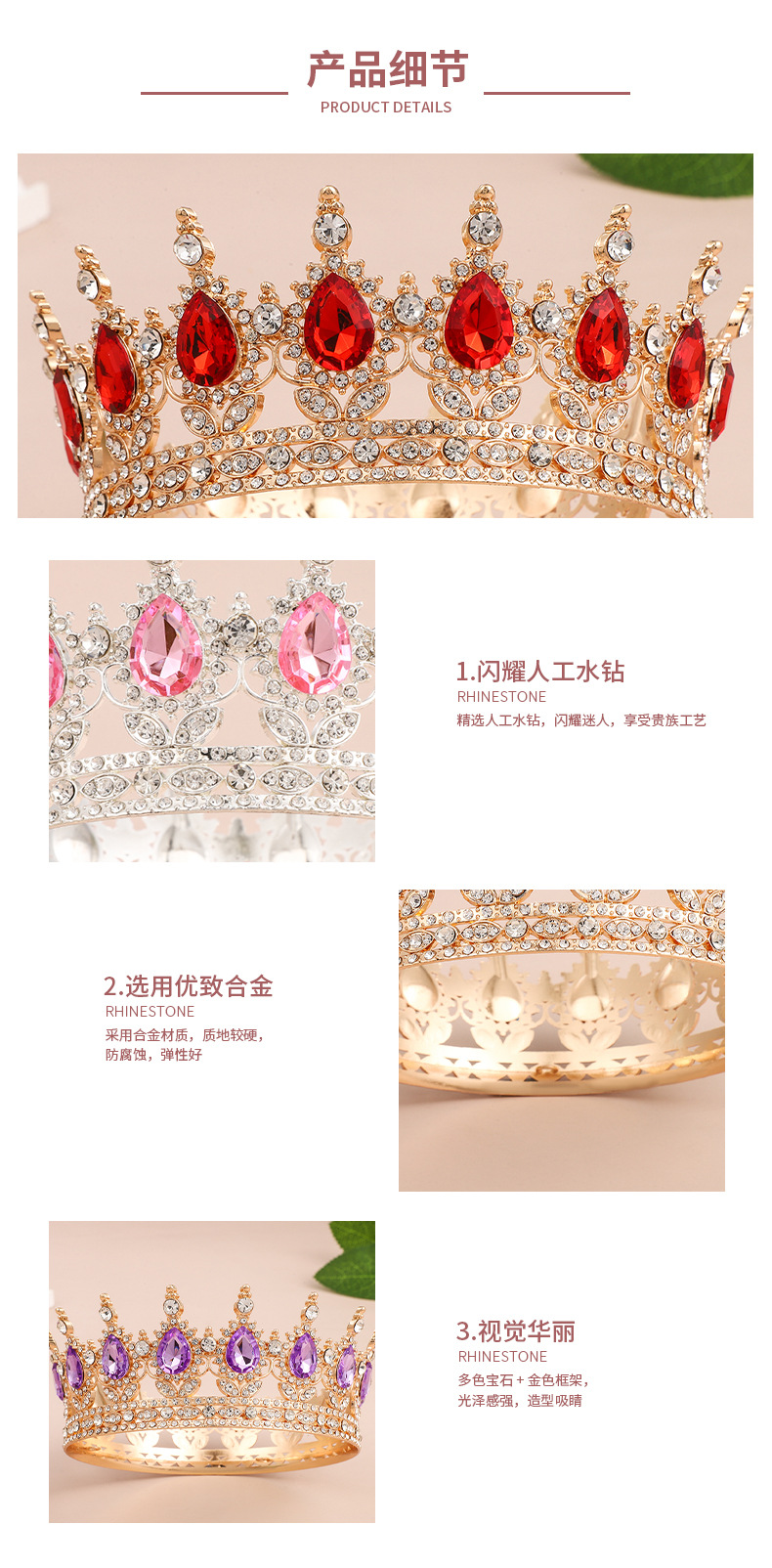 跨境圆冠巴洛克合金圆皇冠水钻头饰生日成人礼皇冠圆型王冠皇冠女