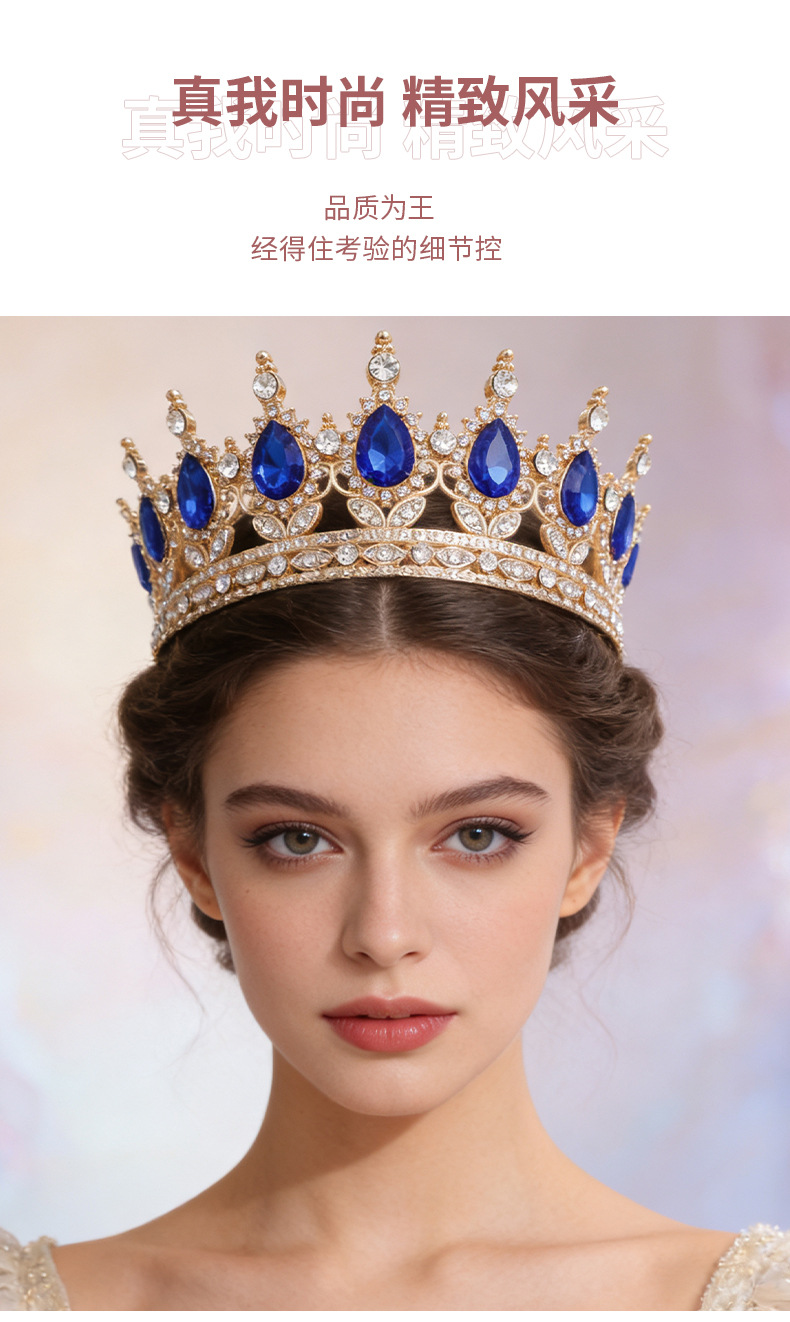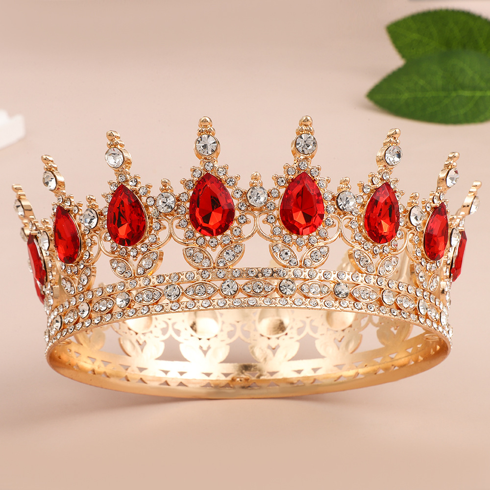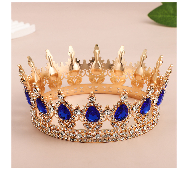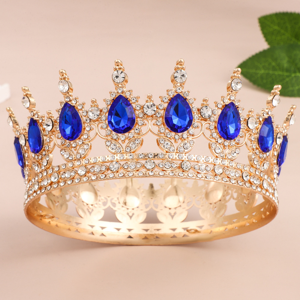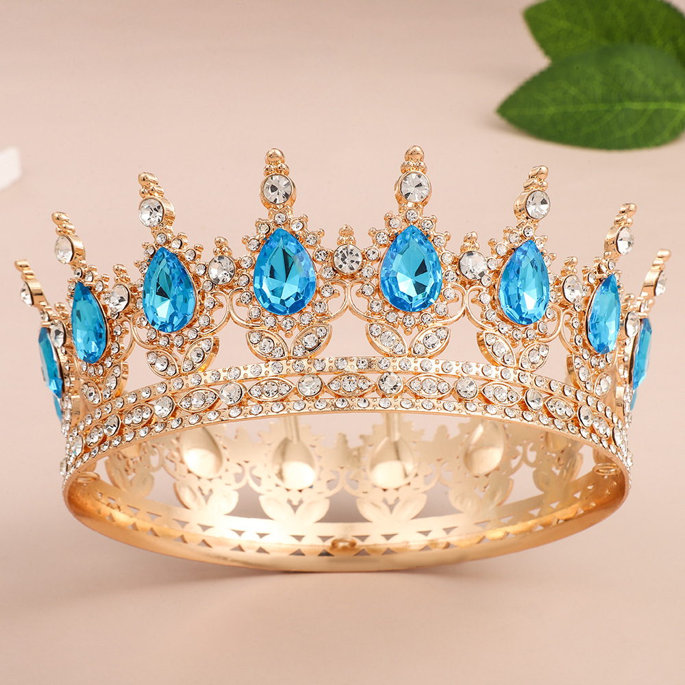 跨境圆冠巴洛克合金圆皇冠水钻头饰生日成人礼皇冠圆型王冠皇冠女