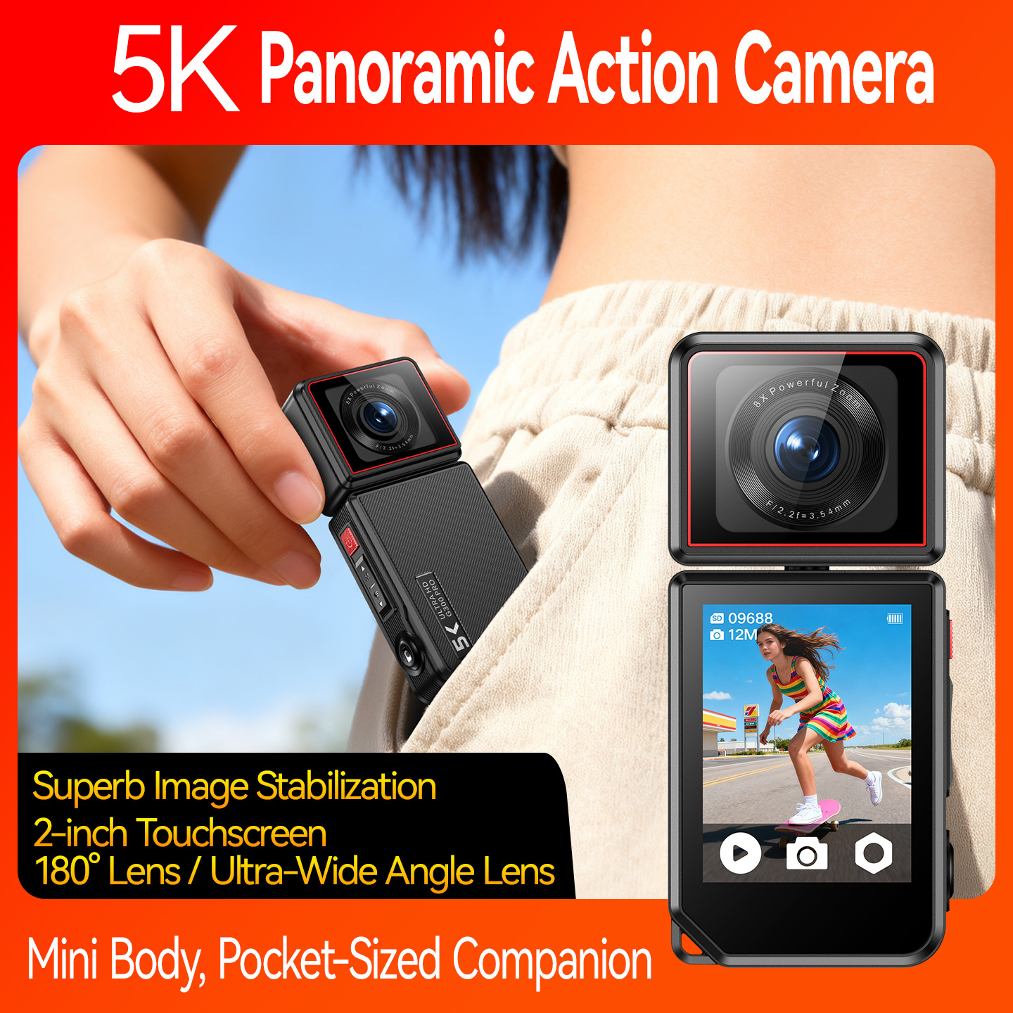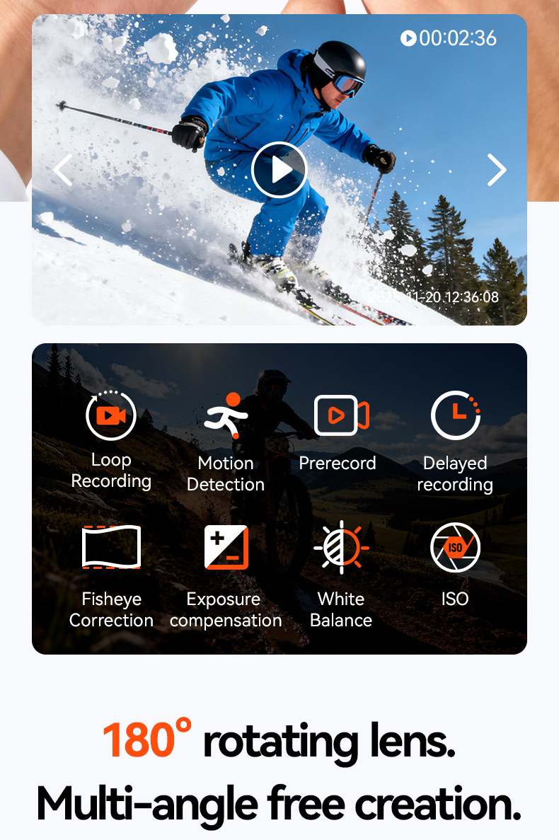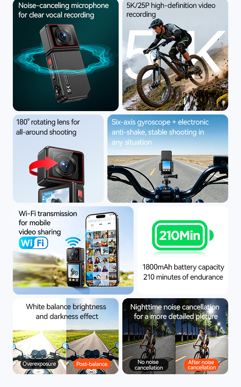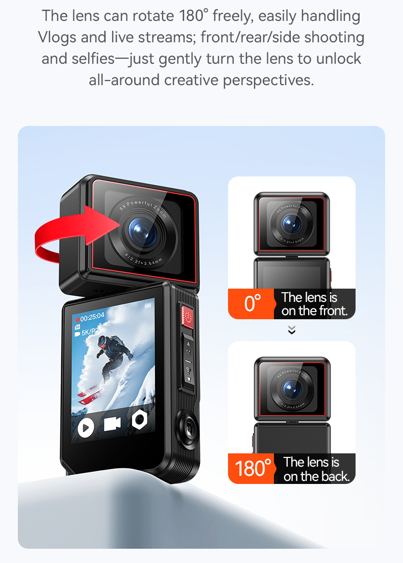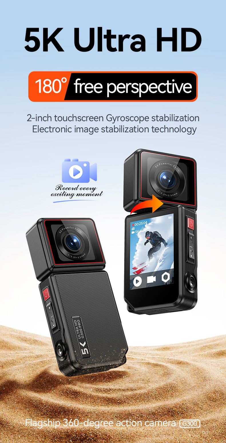 外贸版新款Sports camera 拇指运动相机旋转摄像头高清广角防抖5K