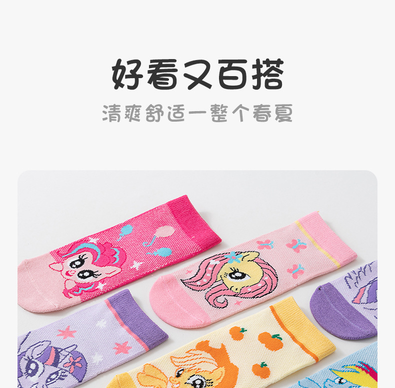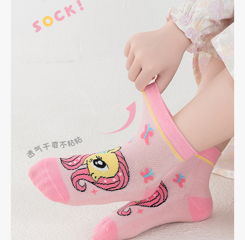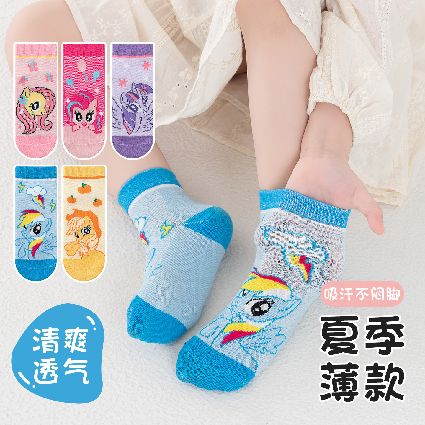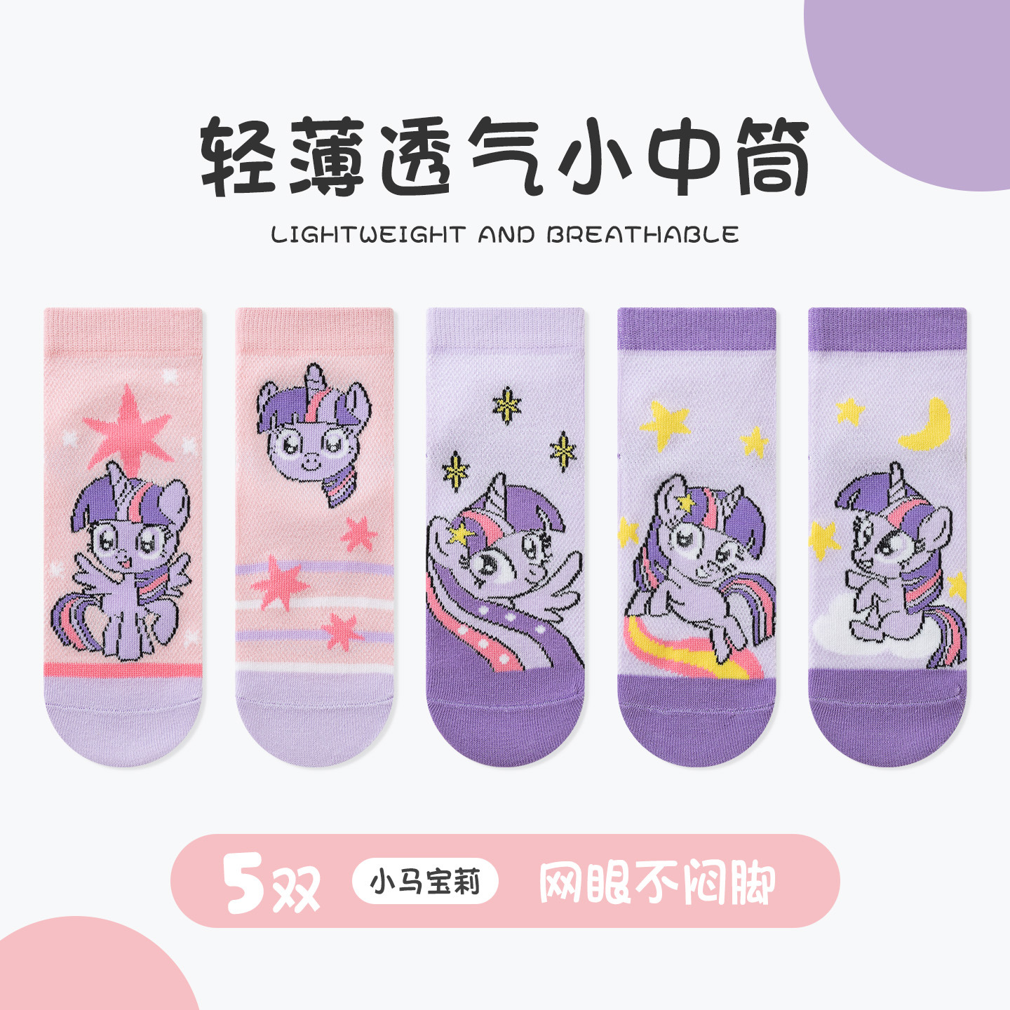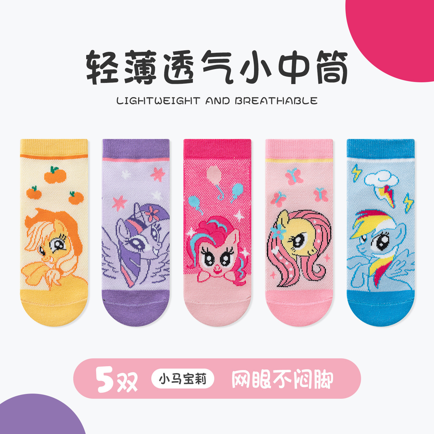 小马宝莉女童袜子夏季卡通网眼女宝中筒袜中小童糖果色甜美公主袜
