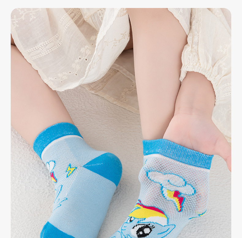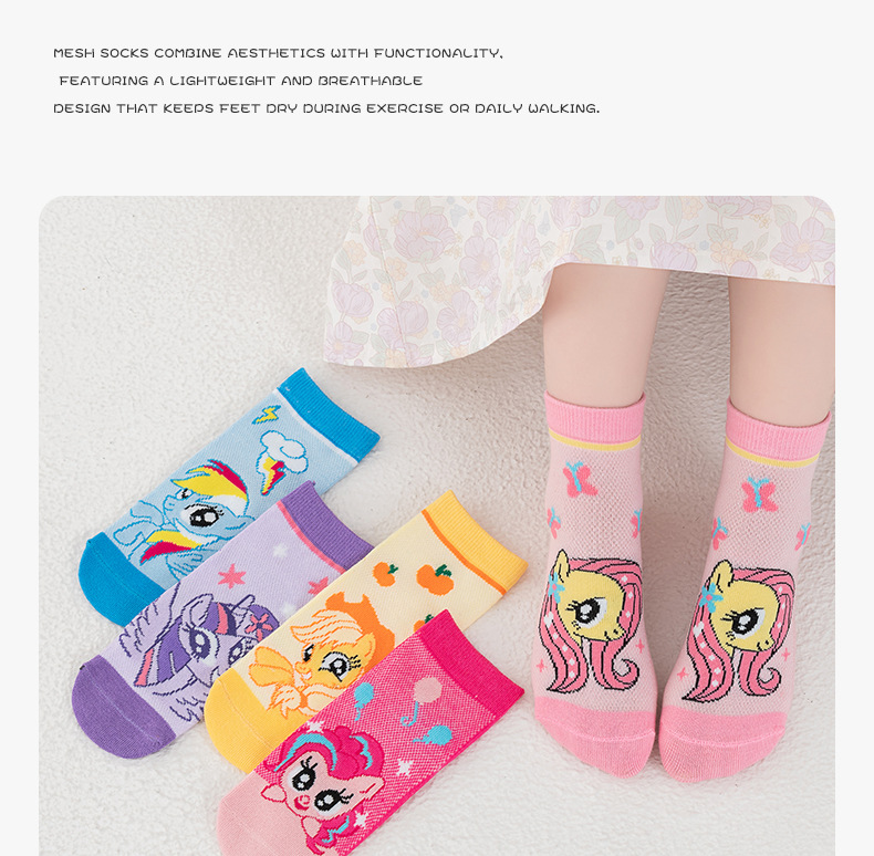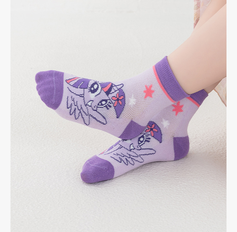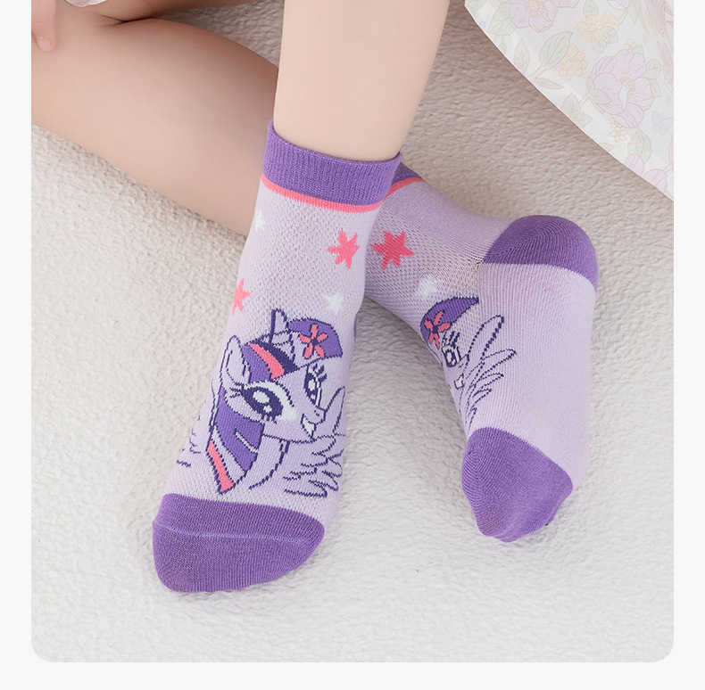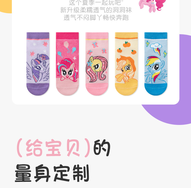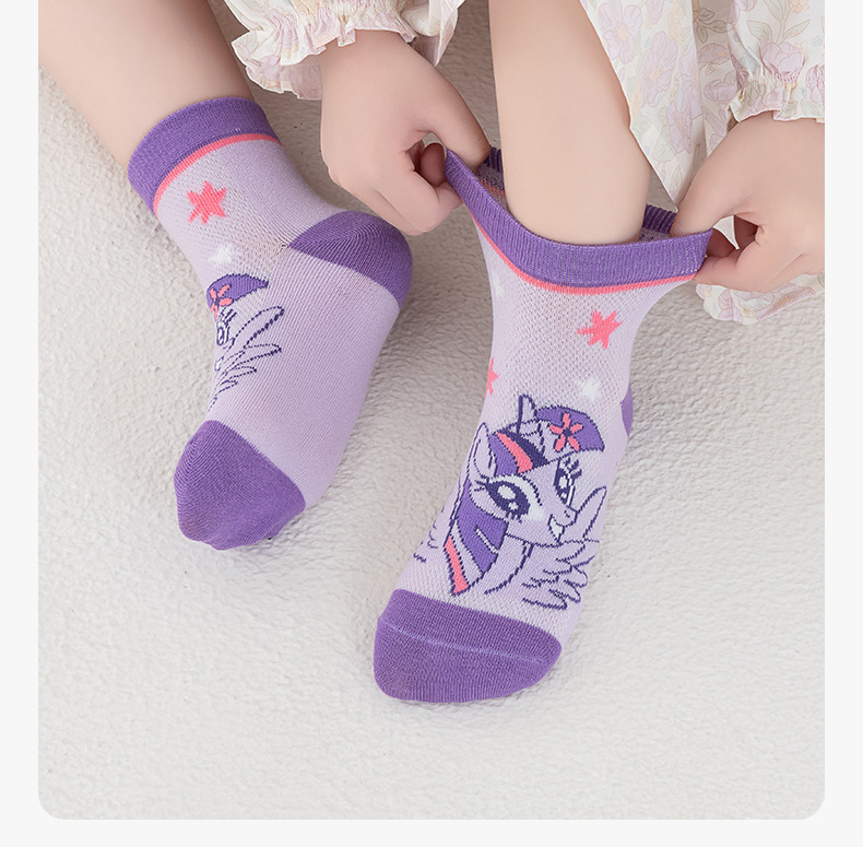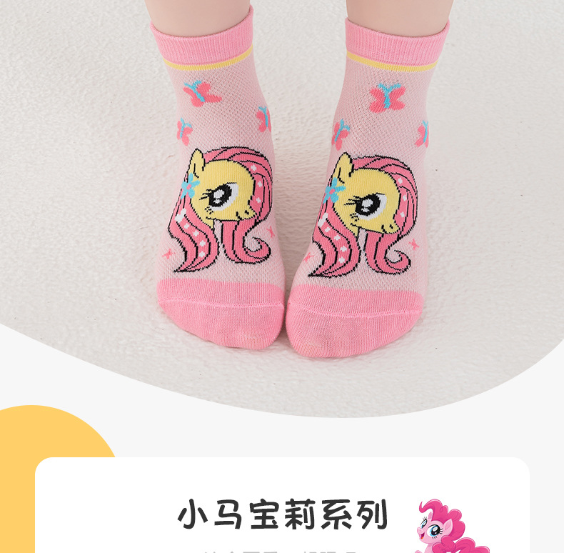 小马宝莉女童袜子夏季卡通网眼女宝中筒袜中小童糖果色甜美公主袜