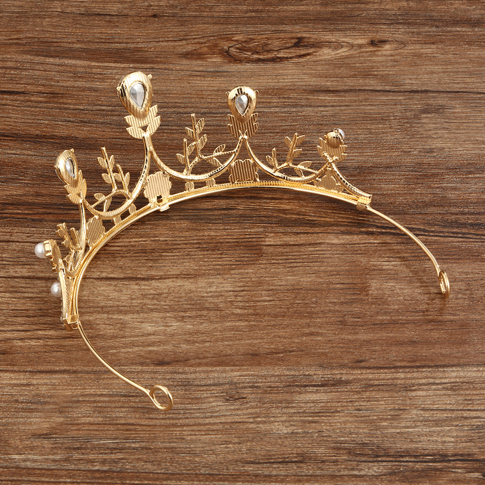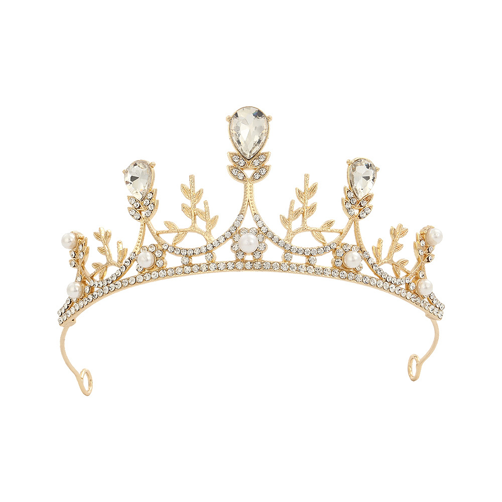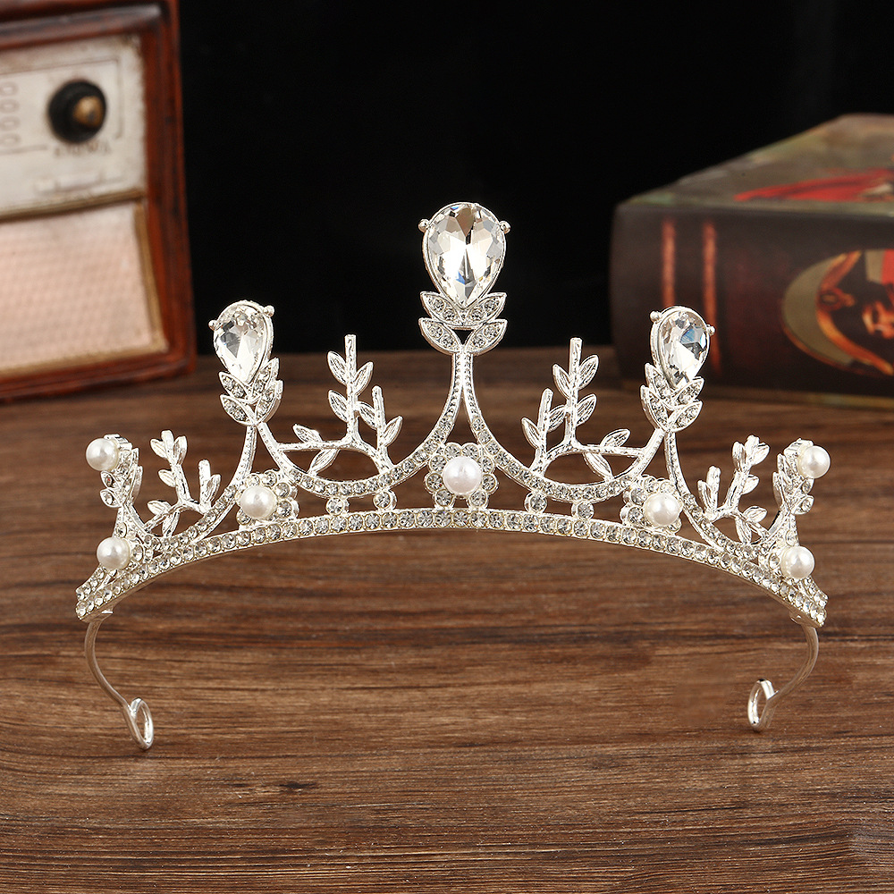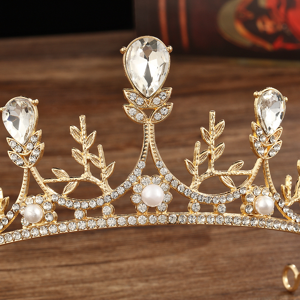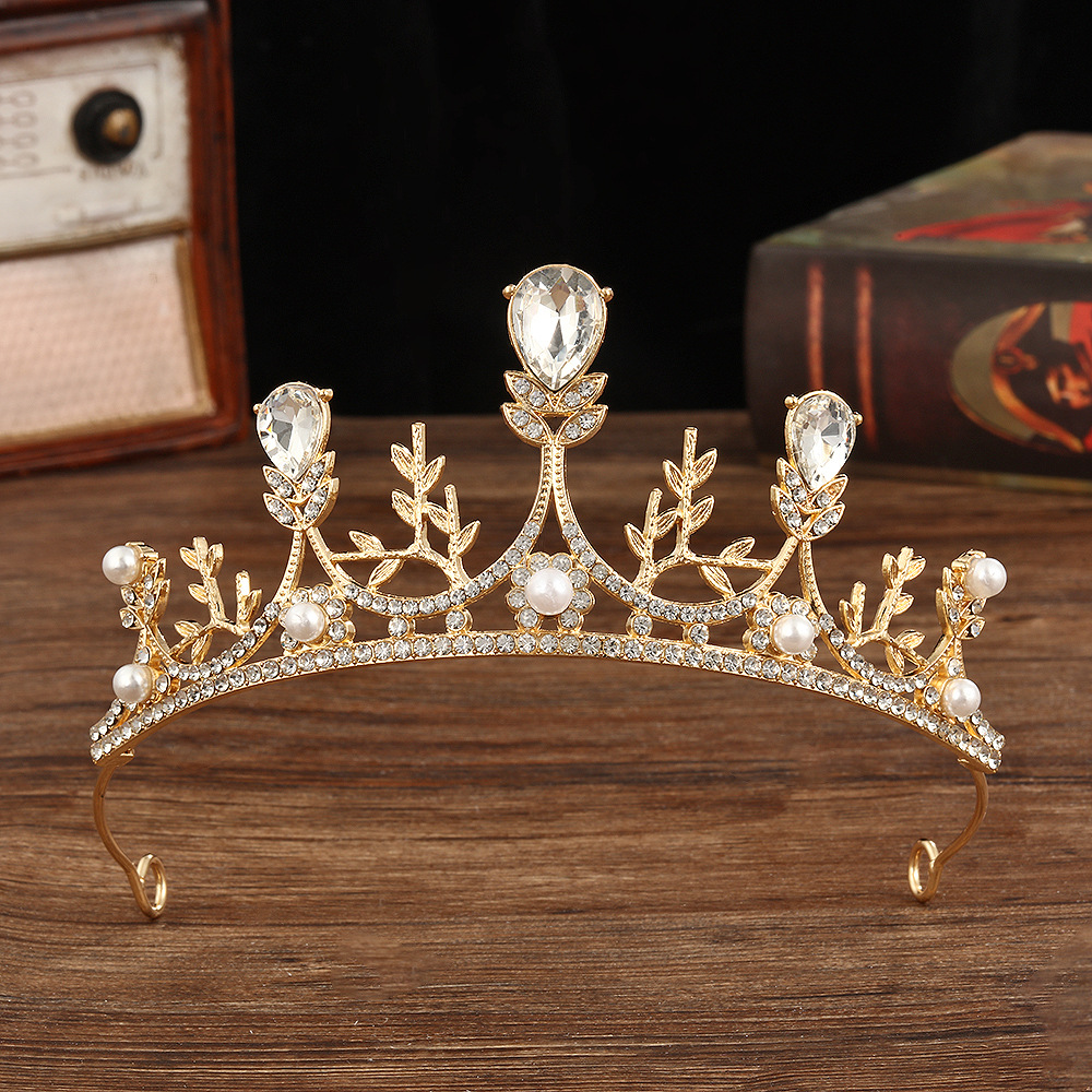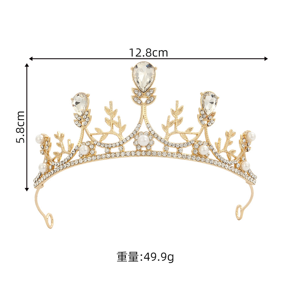 跨境轻奢珍珠水晶皇冠发箍枝叶装饰新娘头饰婚礼伴娘舞台王冠发饰