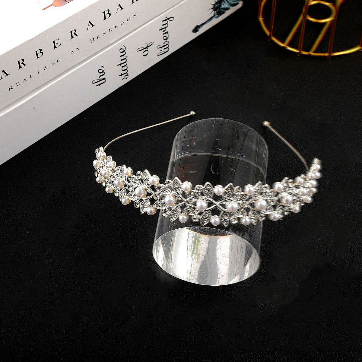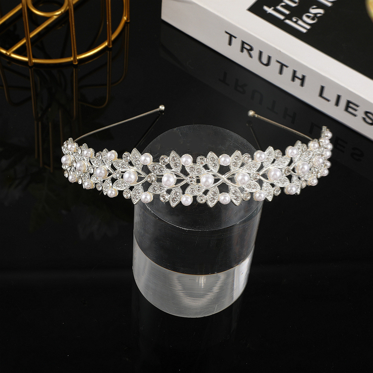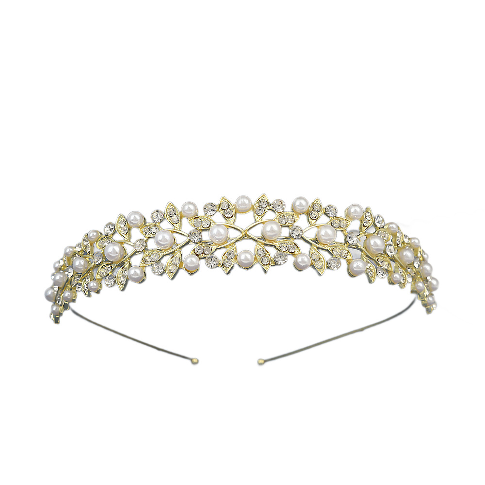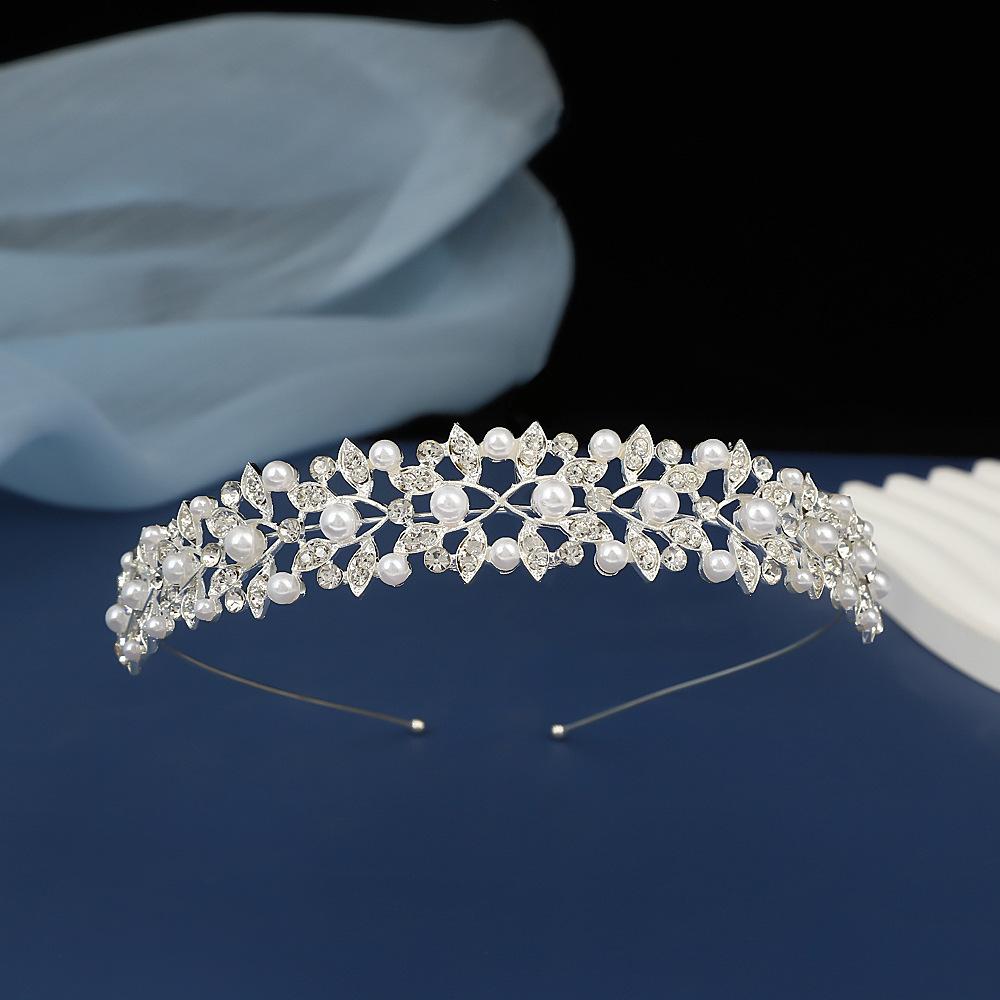 跨境爆款儿童公主皇冠头饰女童发箍水晶珍珠王冠生日演出礼服配饰