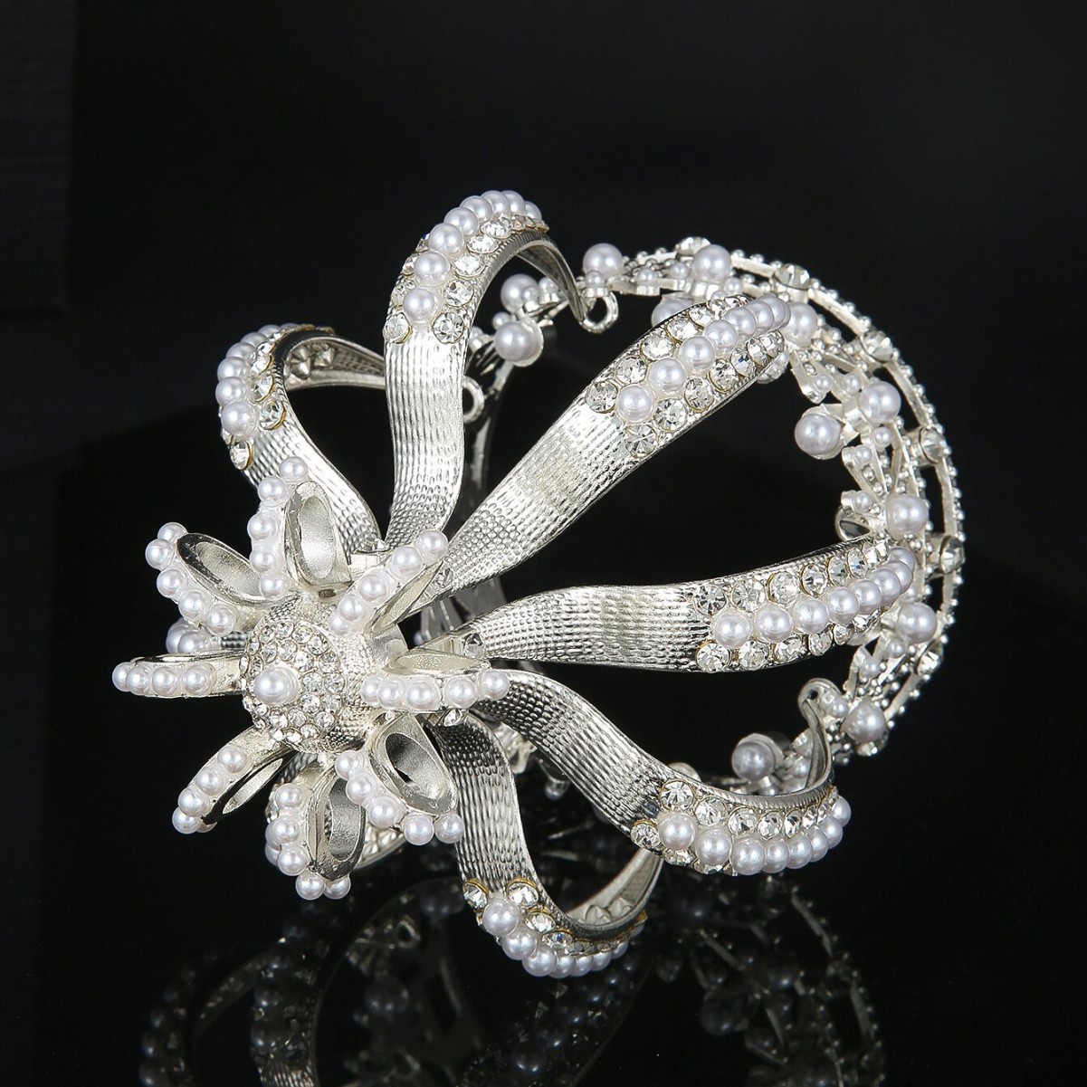 新娘头饰走秀珍珠公主皇冠欧美水钻皇冠生日皇冠头饰新娘发饰