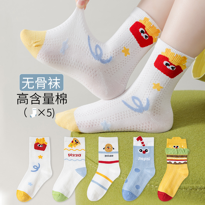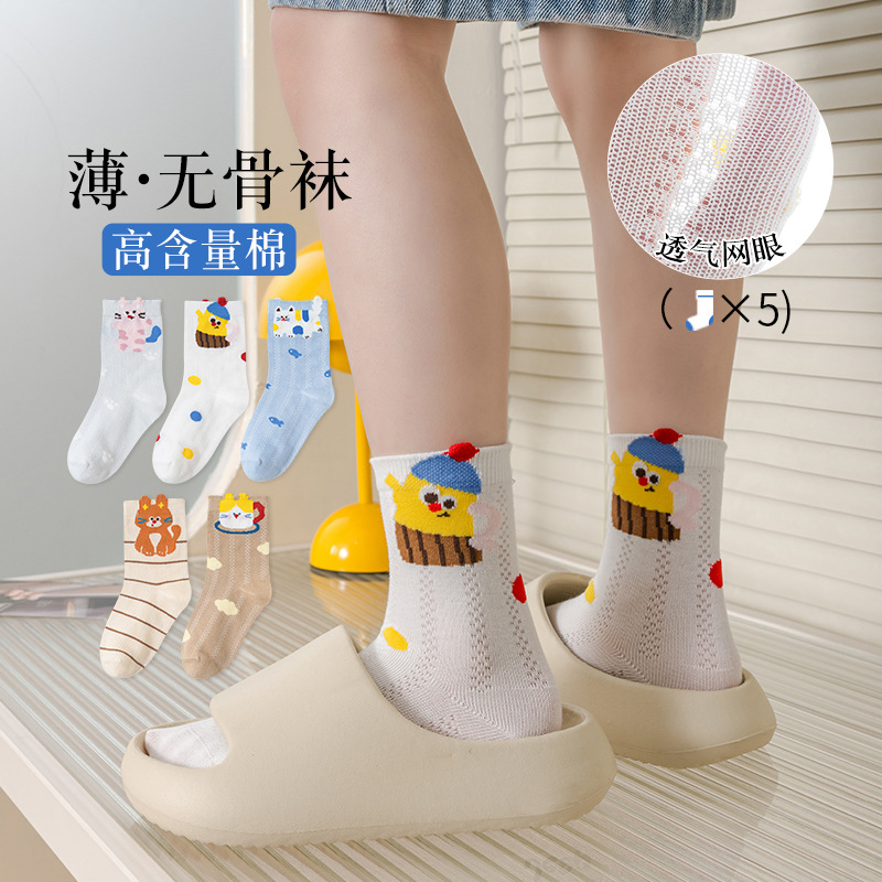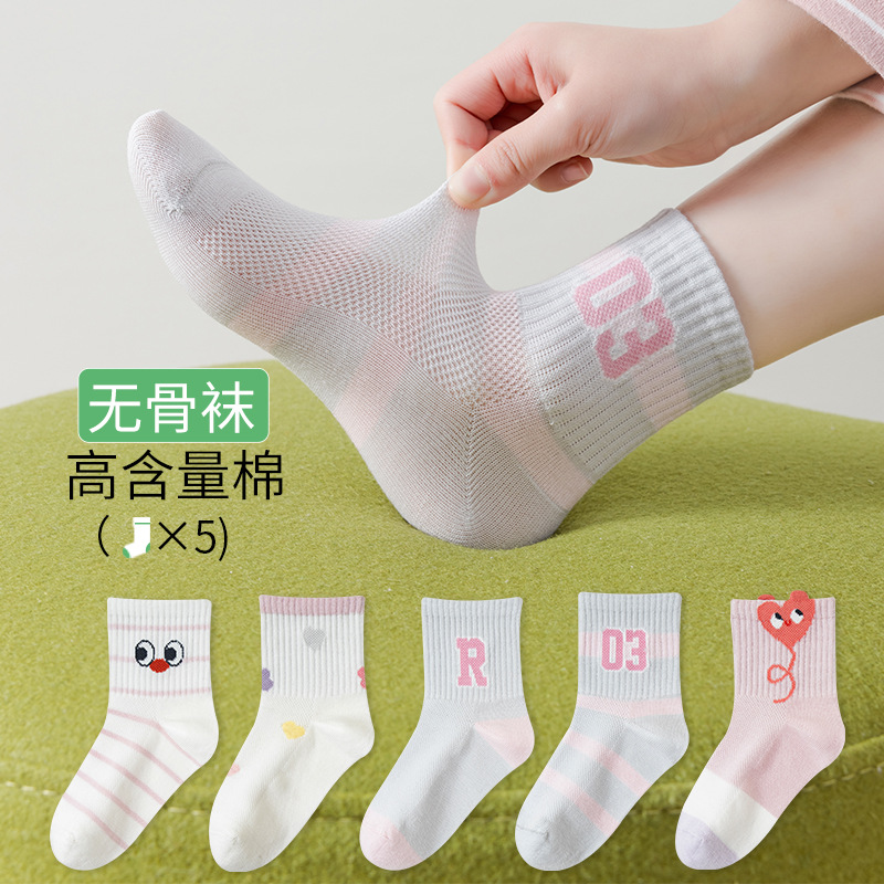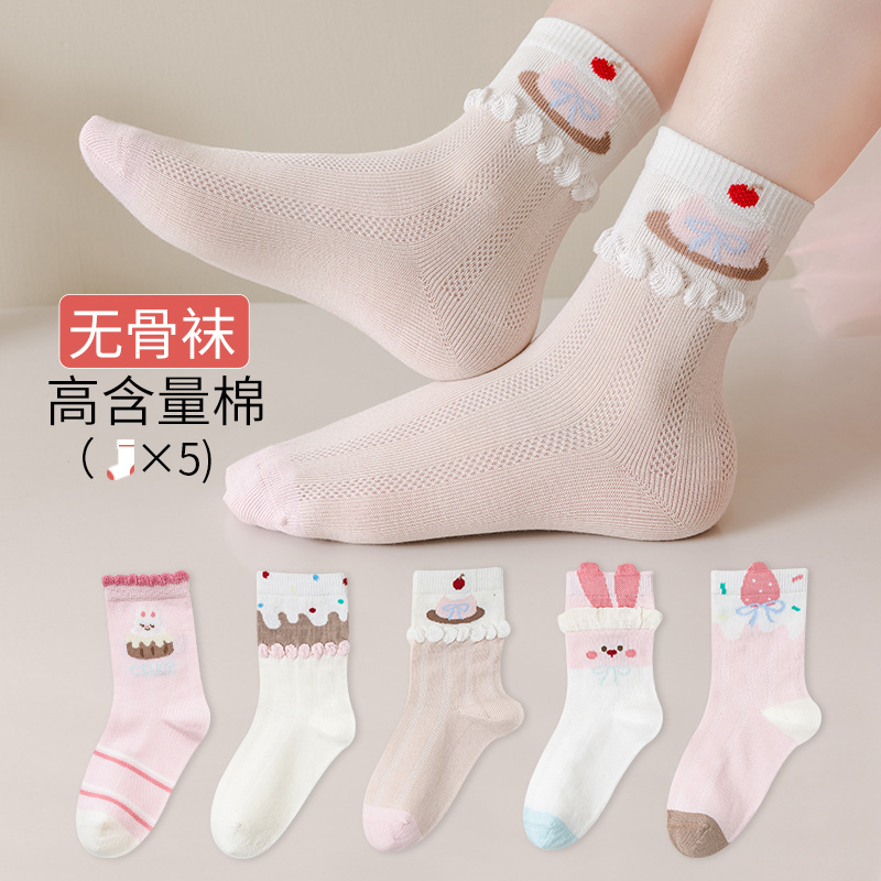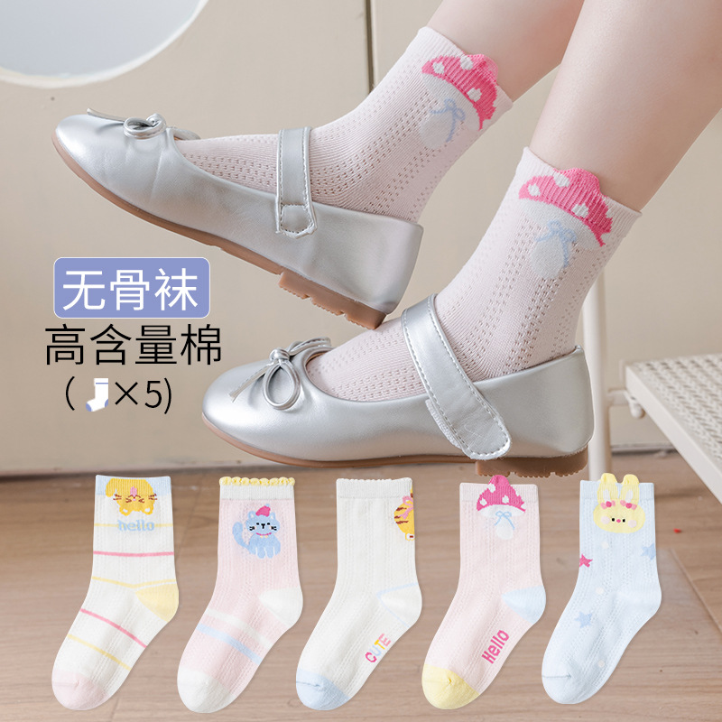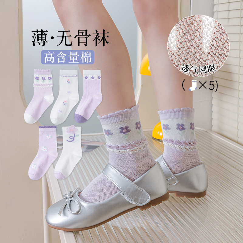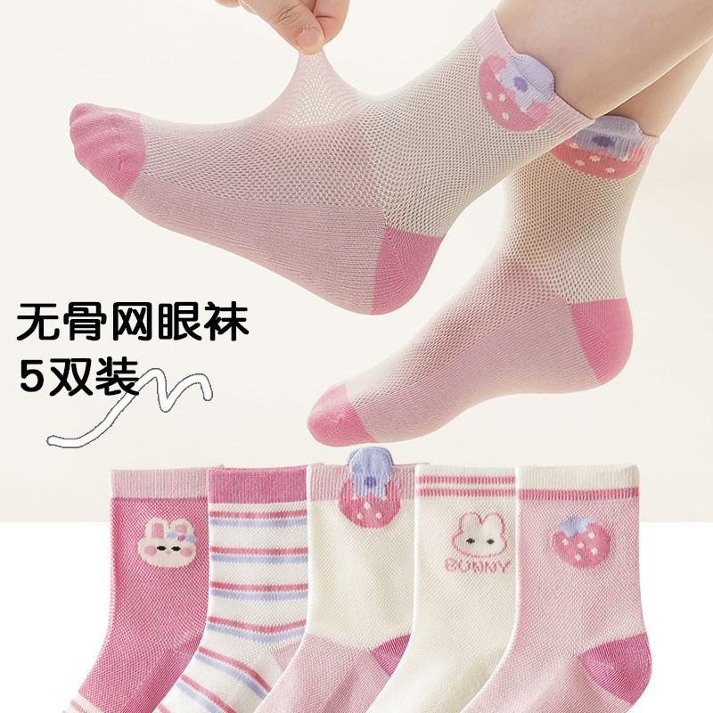 春夏新款儿童袜子女童春夏薄款无骨抗起球女孩子网眼透气中筒棉袜