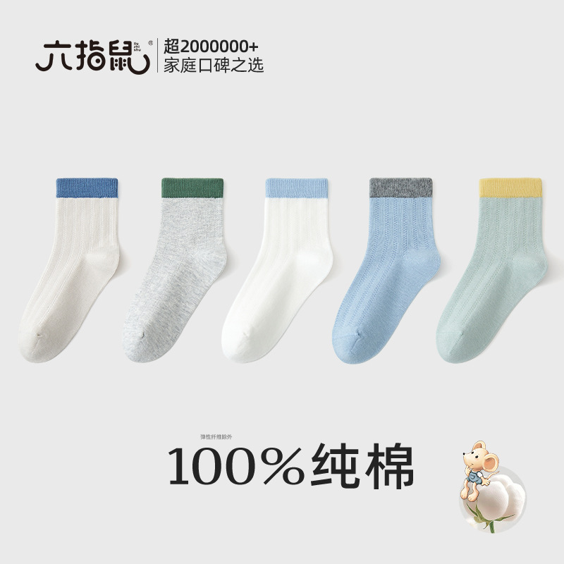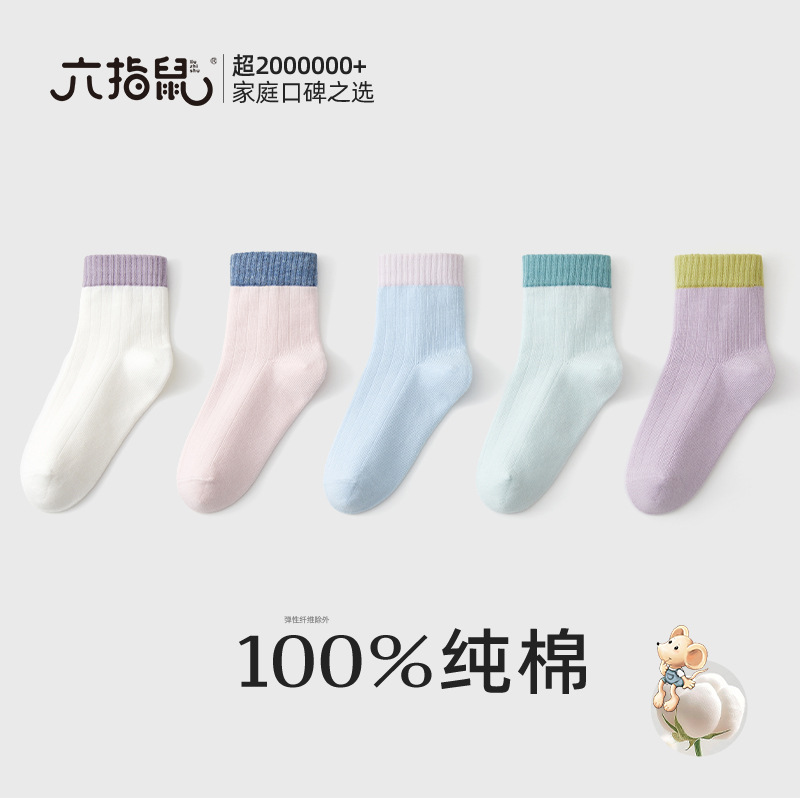 六指鼠批发无骨儿童袜子春秋冬季纯棉薄款女童百棉袜中大童中筒袜