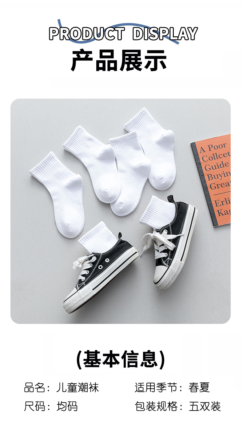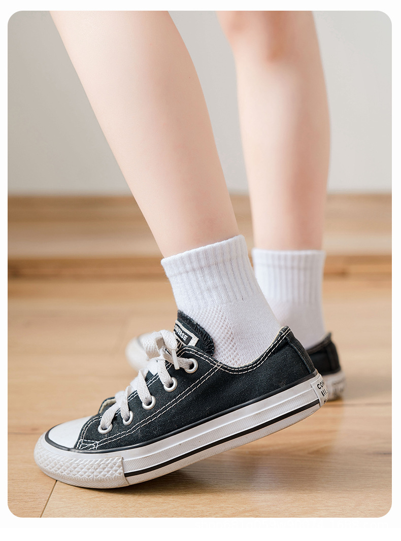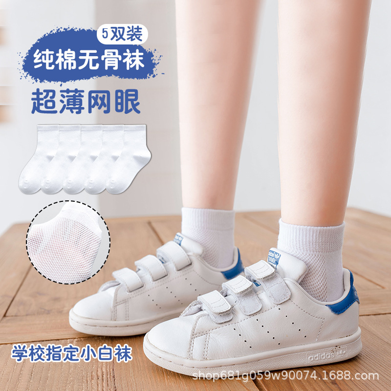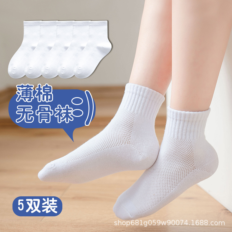 学生白色袜子男女童袜纯棉a类夏季款网眼薄款透气小白袜中筒宝宝