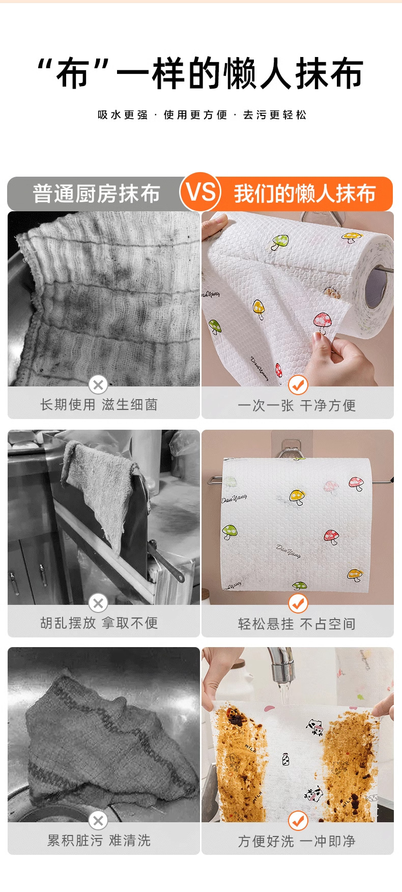 懒人抹布干湿两用擦碗布厨房专用纸巾吸油吸水纸可水洗擦手擦脚纸