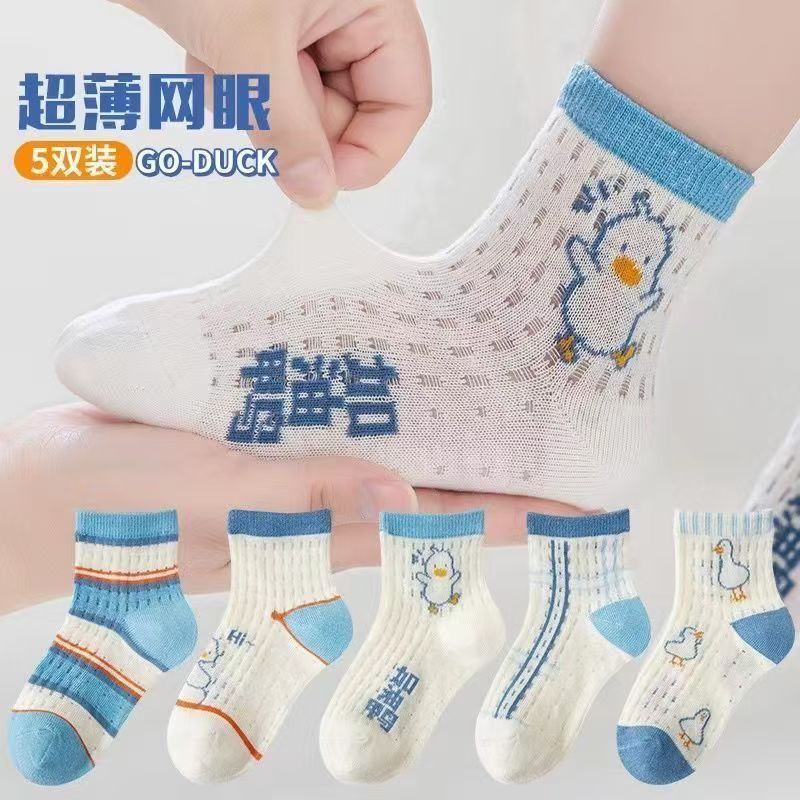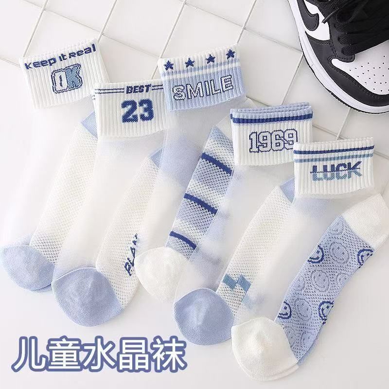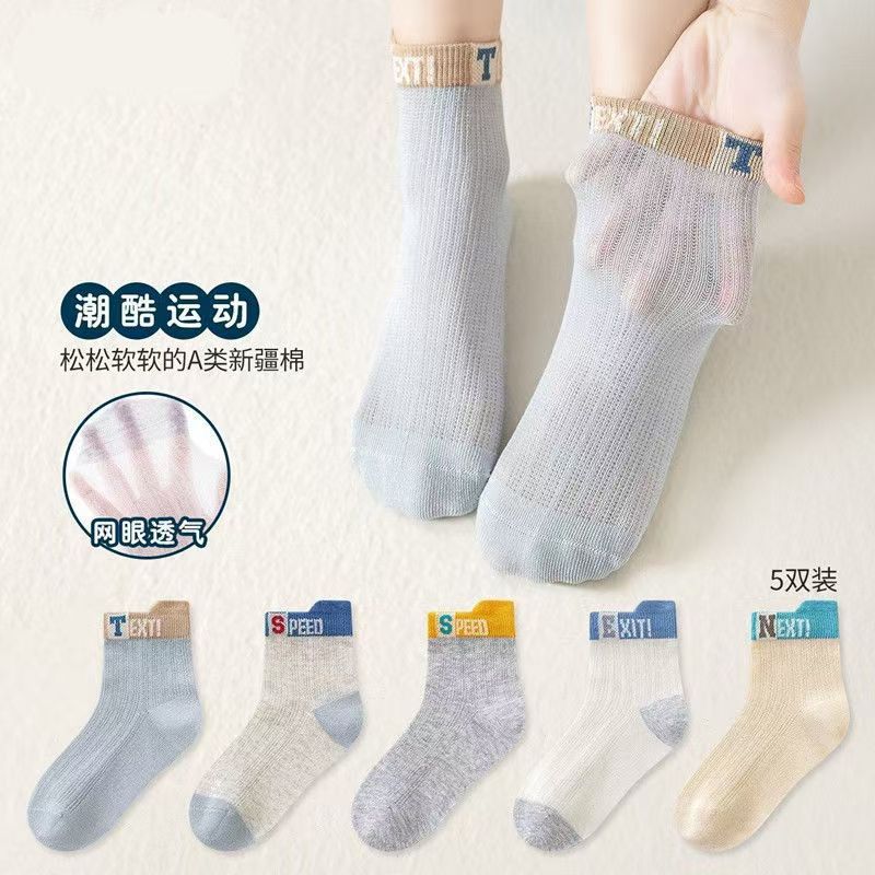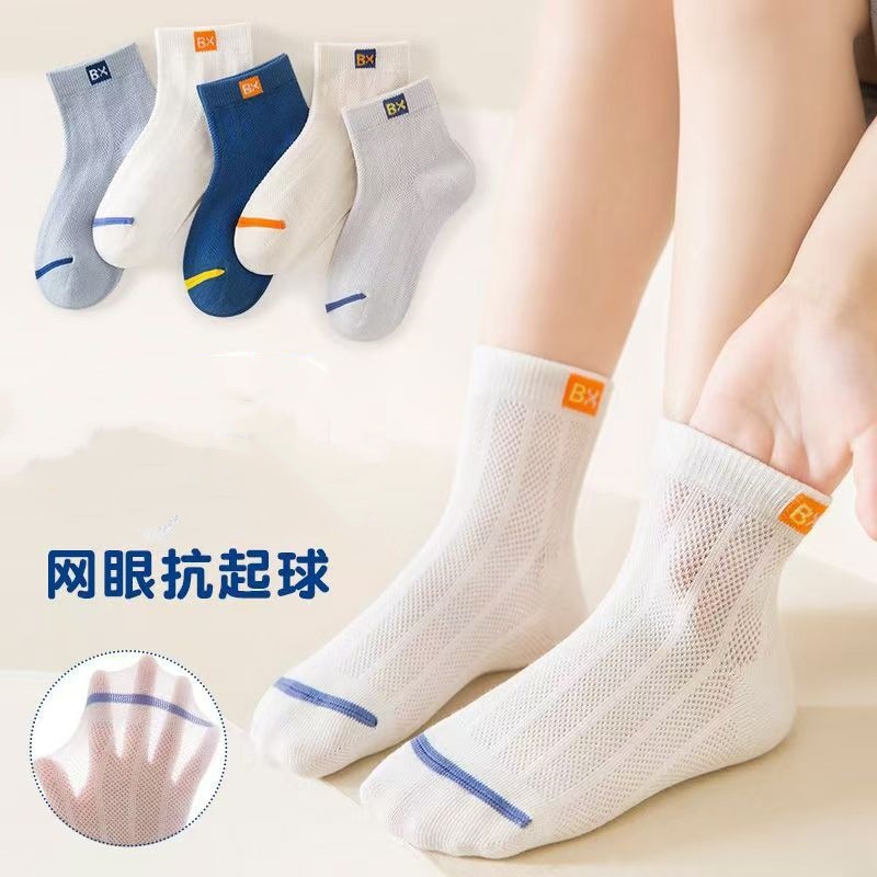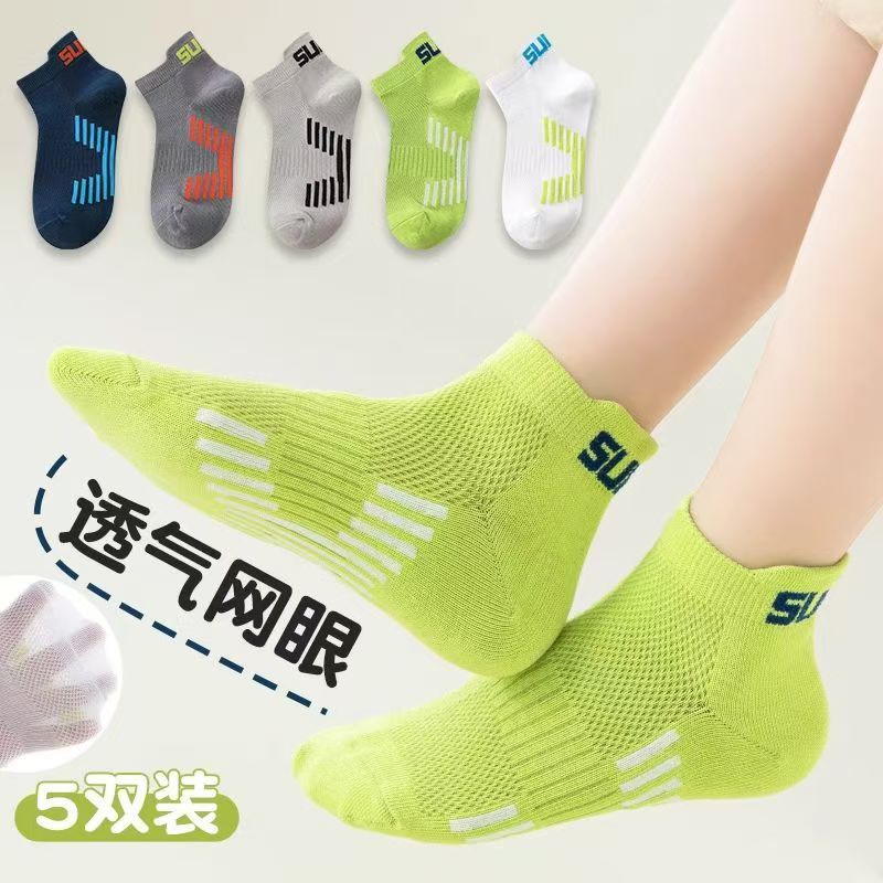 儿童袜子夏季网眼薄款字母网眼短袜学生运动透气吸汗防臭男童潮袜