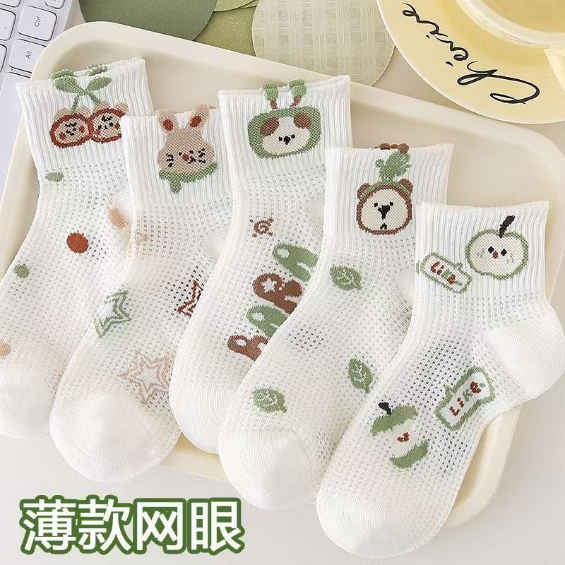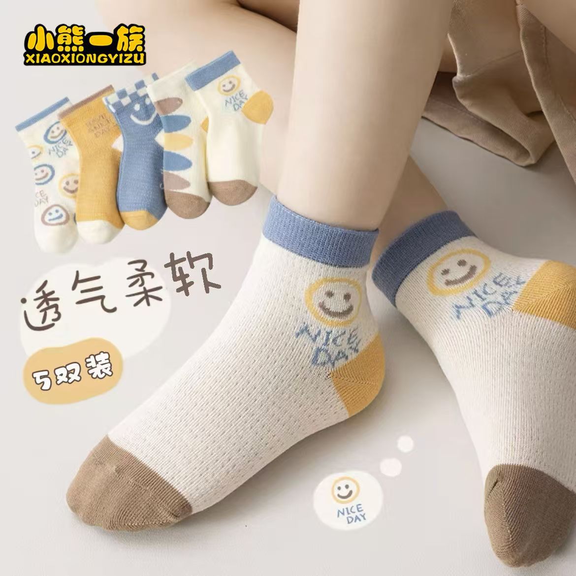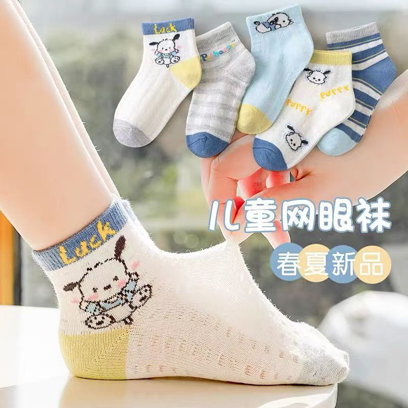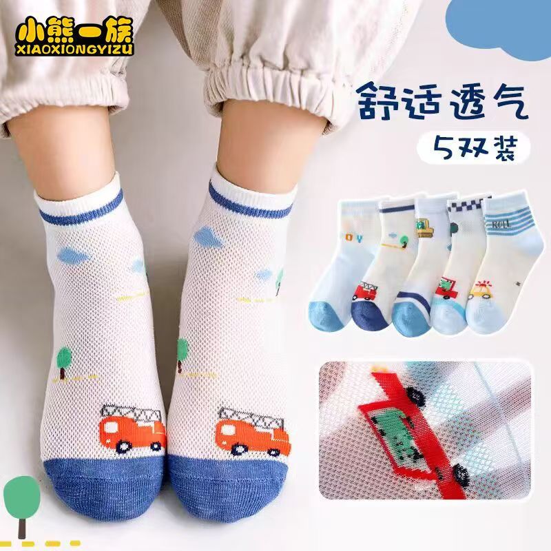儿童袜子夏季网眼薄款字母网眼短袜学生运动透气吸汗防臭男童潮袜