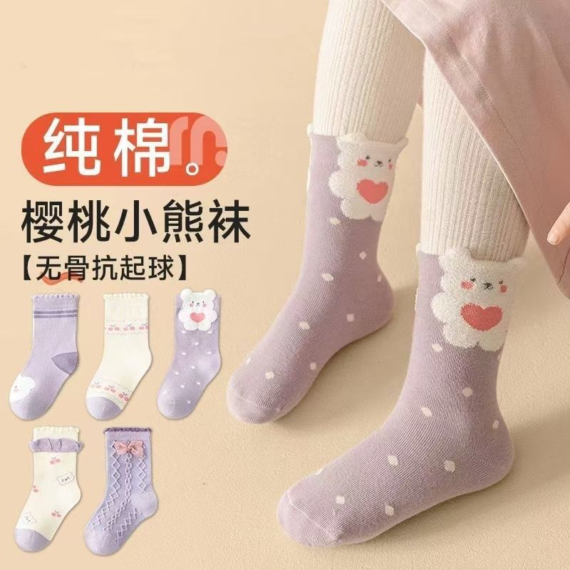 春秋宝宝公主女孩儿童春秋季百搭花边中筒袜卡通可爱女童无骨袜子