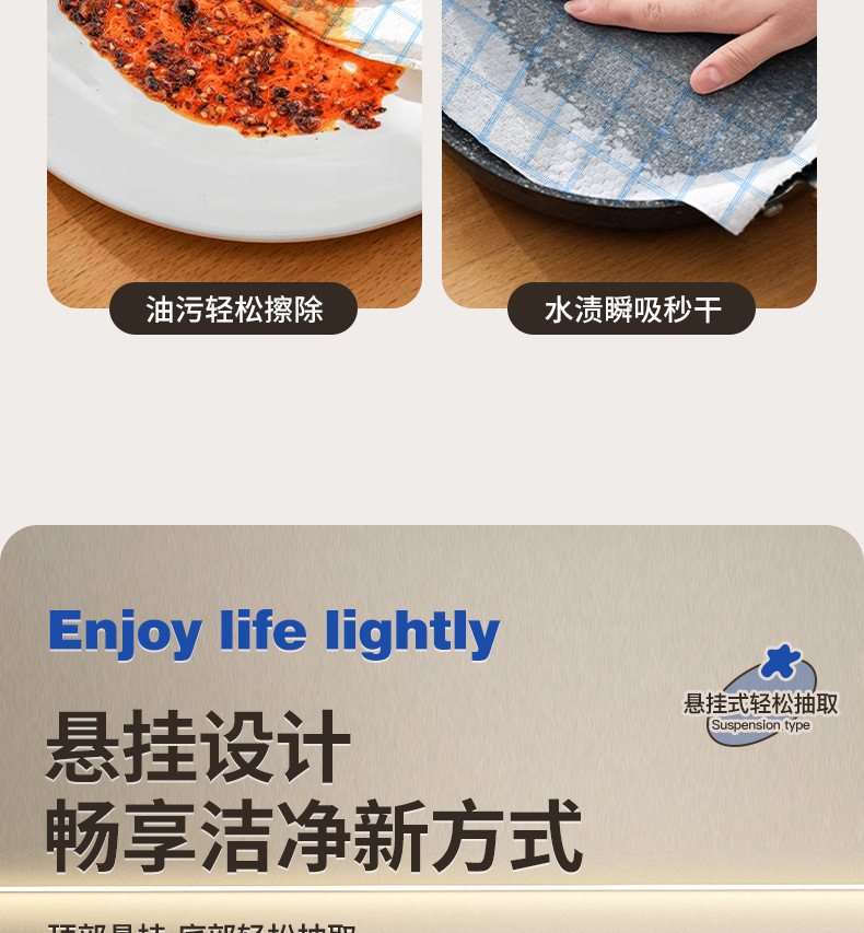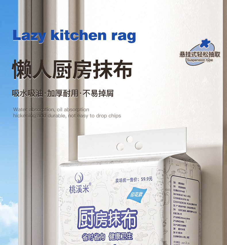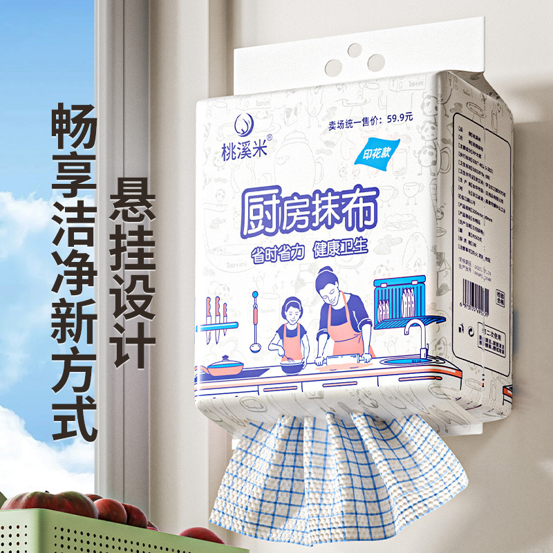 厨房抹布一次性懒人挂抽家用干湿两用加厚百洁布悬挂式无纺布去污