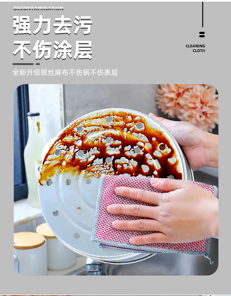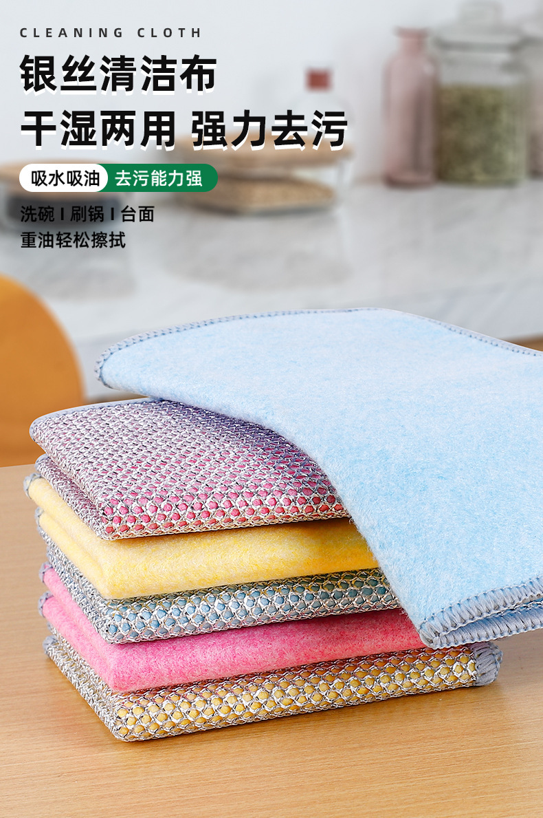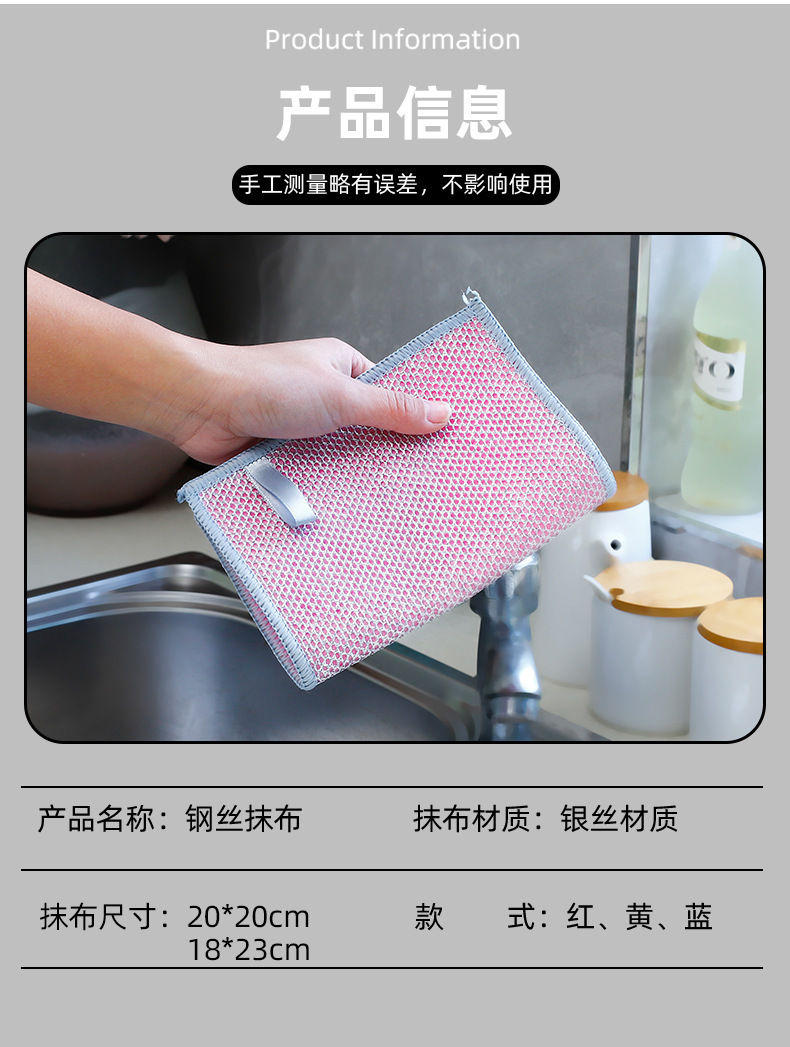 双面两用银丝椰壳清洁布不沾油不伤锅厨房抹布吸水加厚钢丝洗碗布