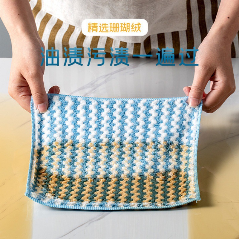 吸水阳离子珊瑚绒洗碗布百洁布加厚大抹布批发厨房家用锁边波浪纹