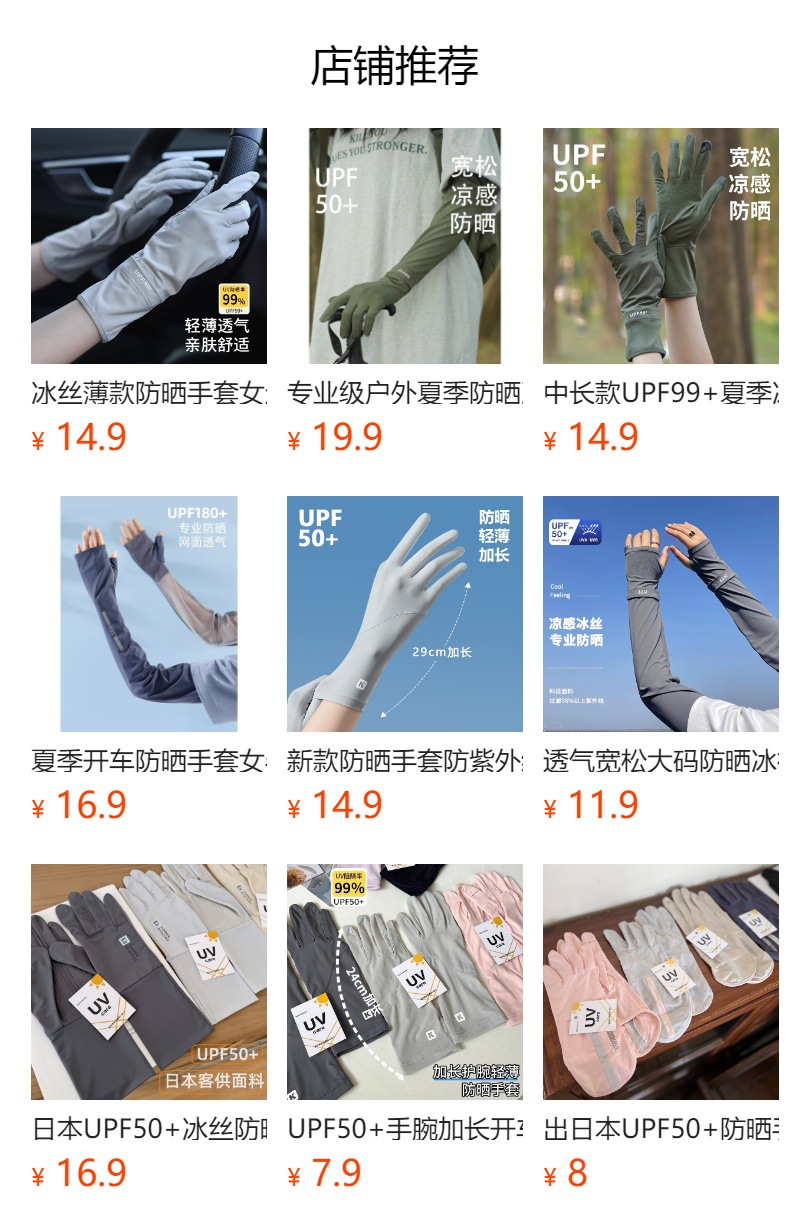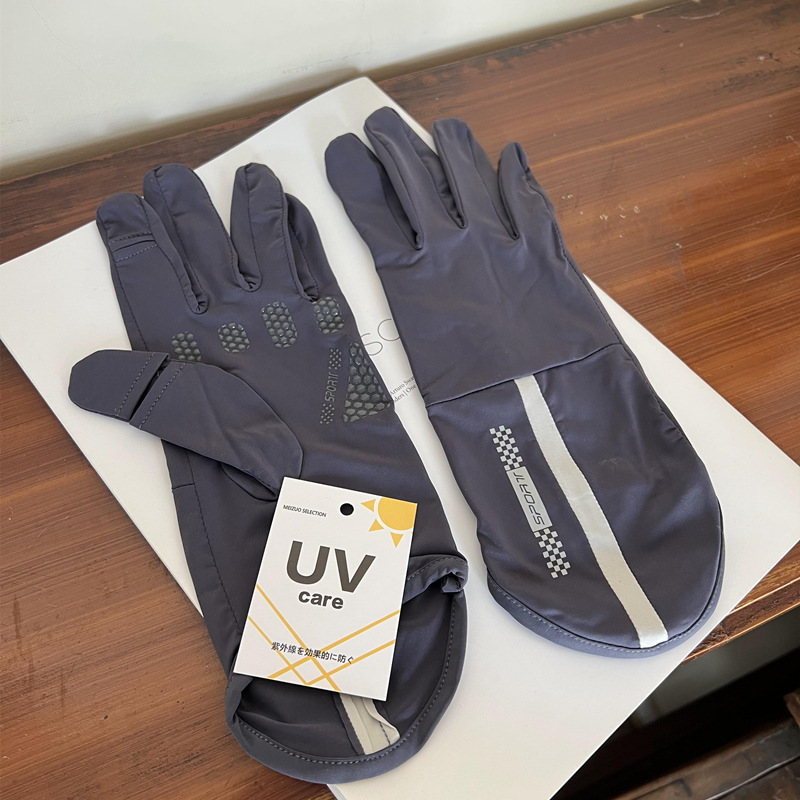 出日本UPF50+防晒手套男女通用春夏薄款冰丝凉感防紫外线灰色防滑