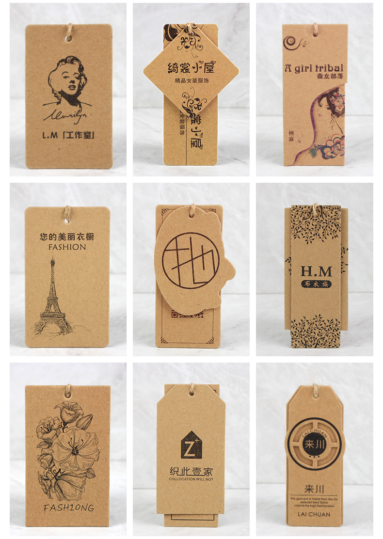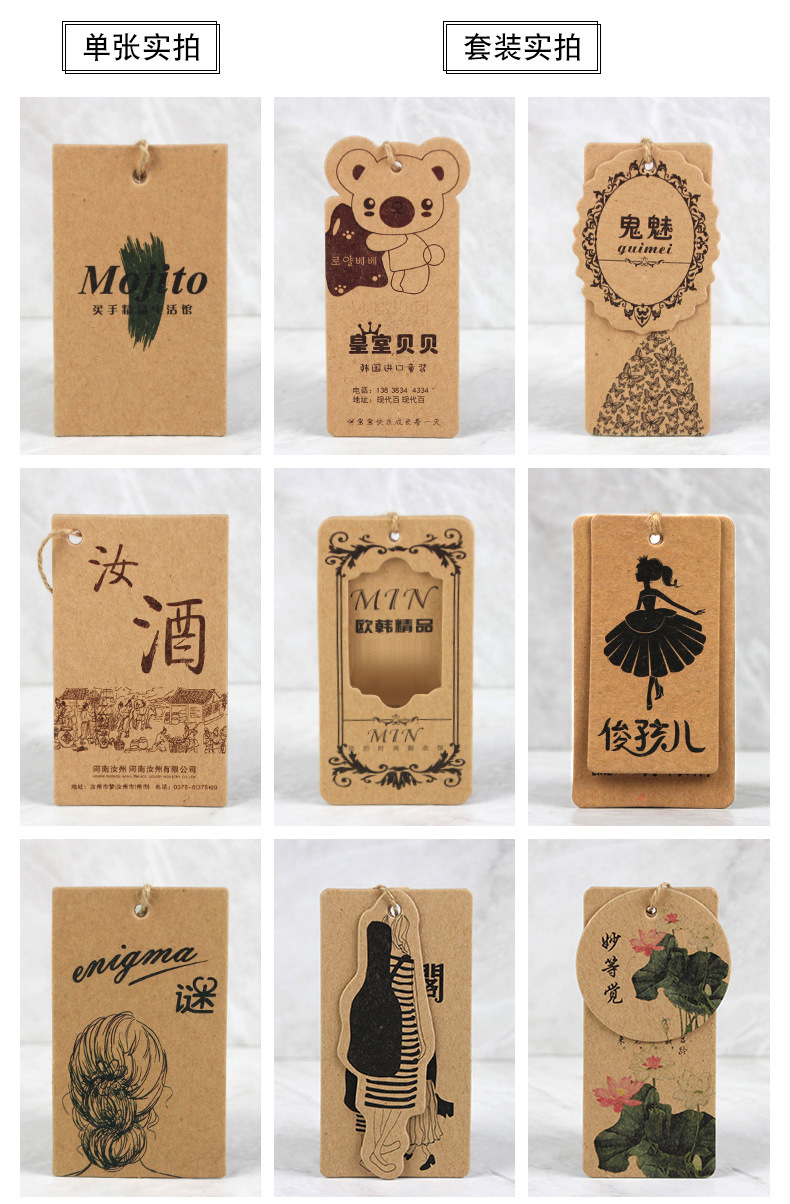 牛皮纸服装吊牌定制手写卡片标签纸免费设计印刷logo可丝网UV吊牌