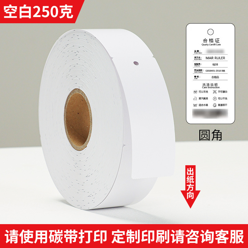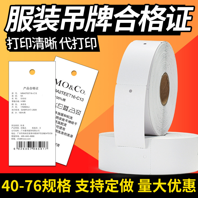 250克铜版纸卷筒服装箱包吊牌合格证标签打印纸圆角直角空白吊卡