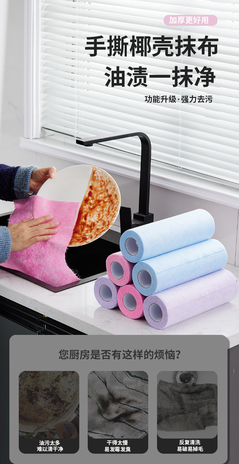 家用厨房椰壳抹布不易沾油点段式洗碗巾不易掉毛一次性清洁百洁布