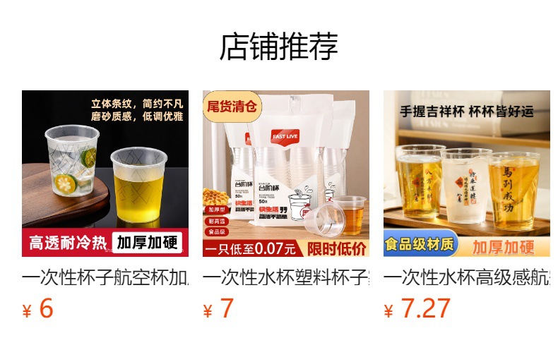 航空杯一次性硬塑料杯加厚食品级水杯茶杯家用太空杯饮料透明杯子