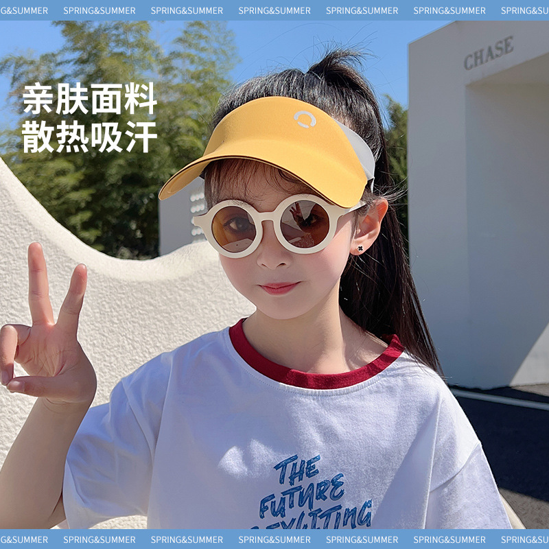 一体成型轻便儿童空顶帽户外骑车跑步简约运动遮阳帽鸭舌防晒帽子