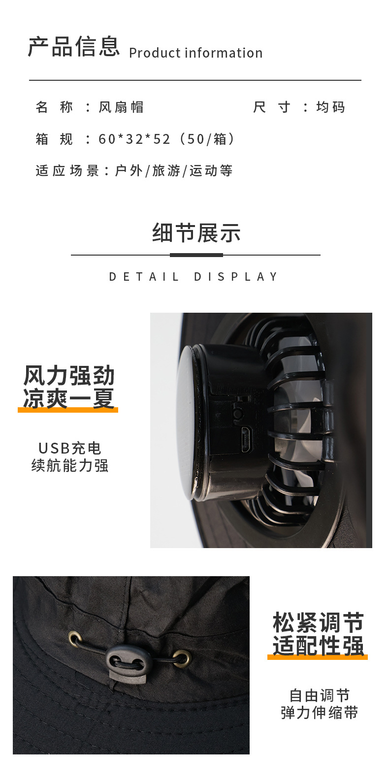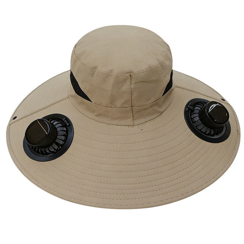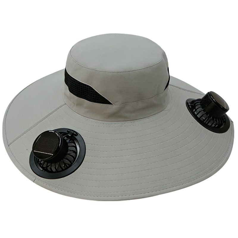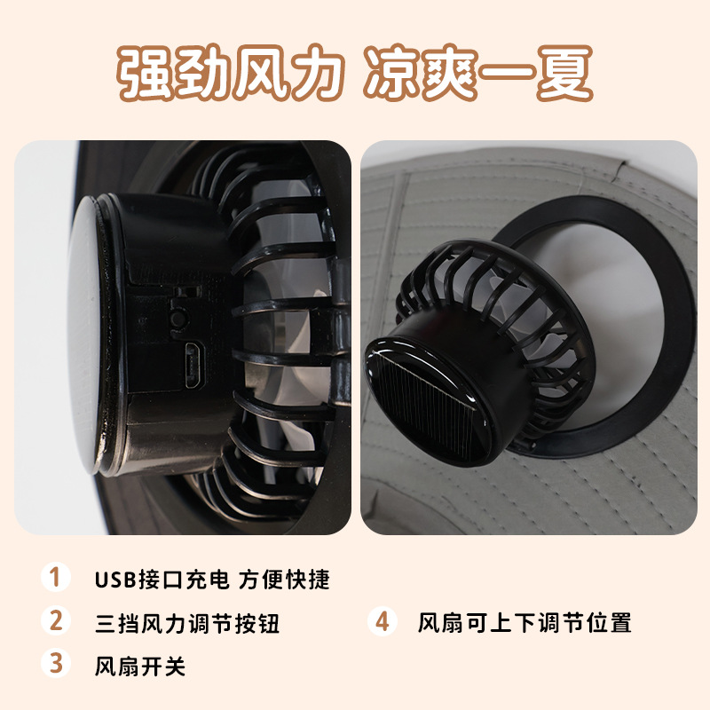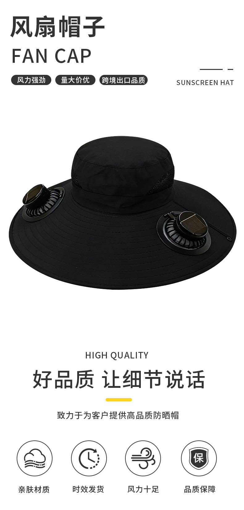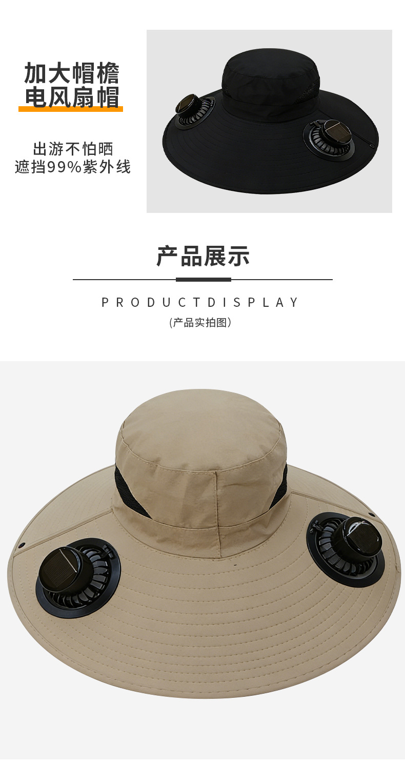 时尚太阳能帽长续航风扇充电大风力夏大沿防晒帽男遮阳速干渔夫帽