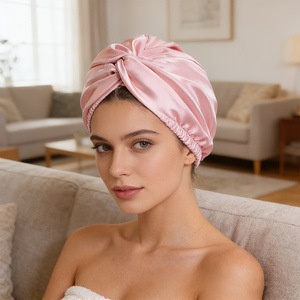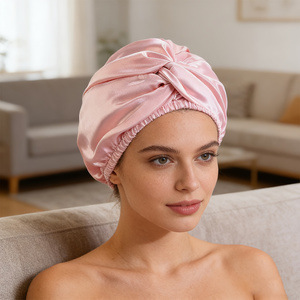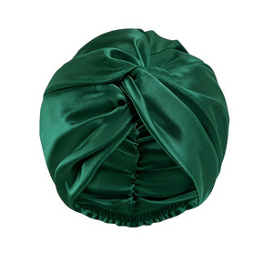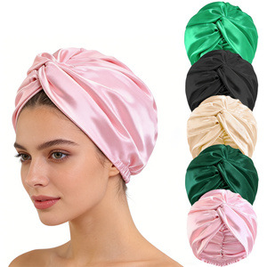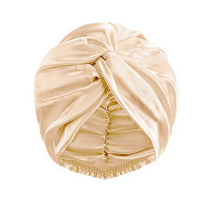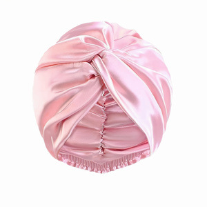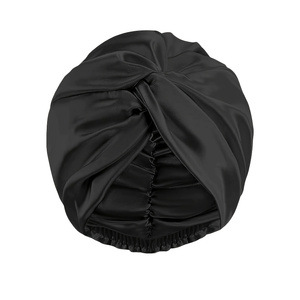 仿真丝可调节美容护发双层睡帽,圆帽加发圈和隐交叉扭扭帽.