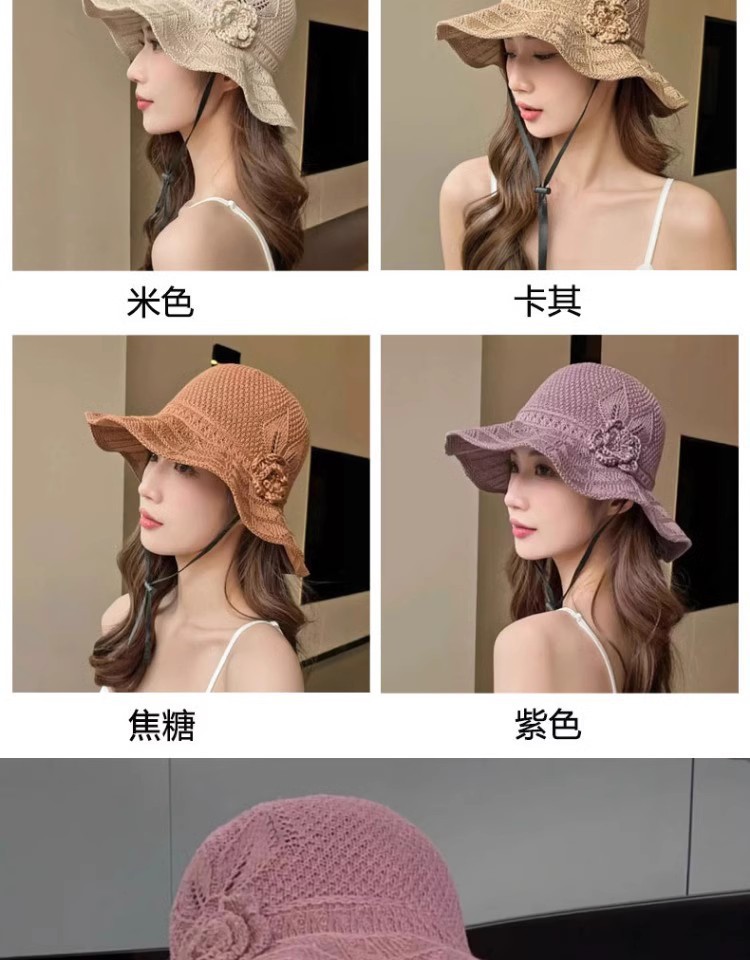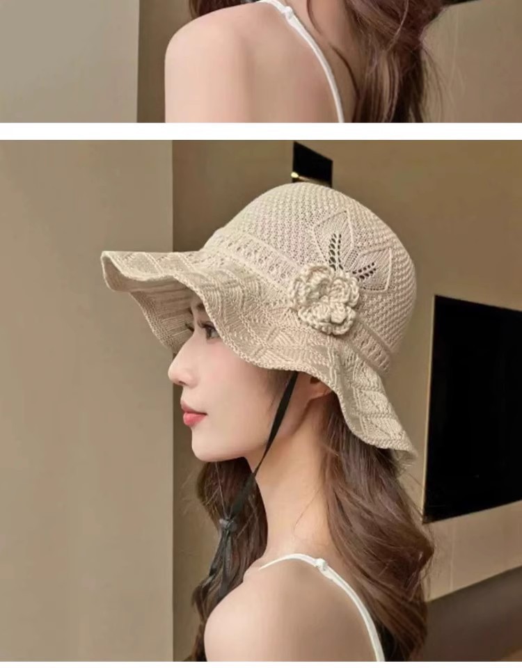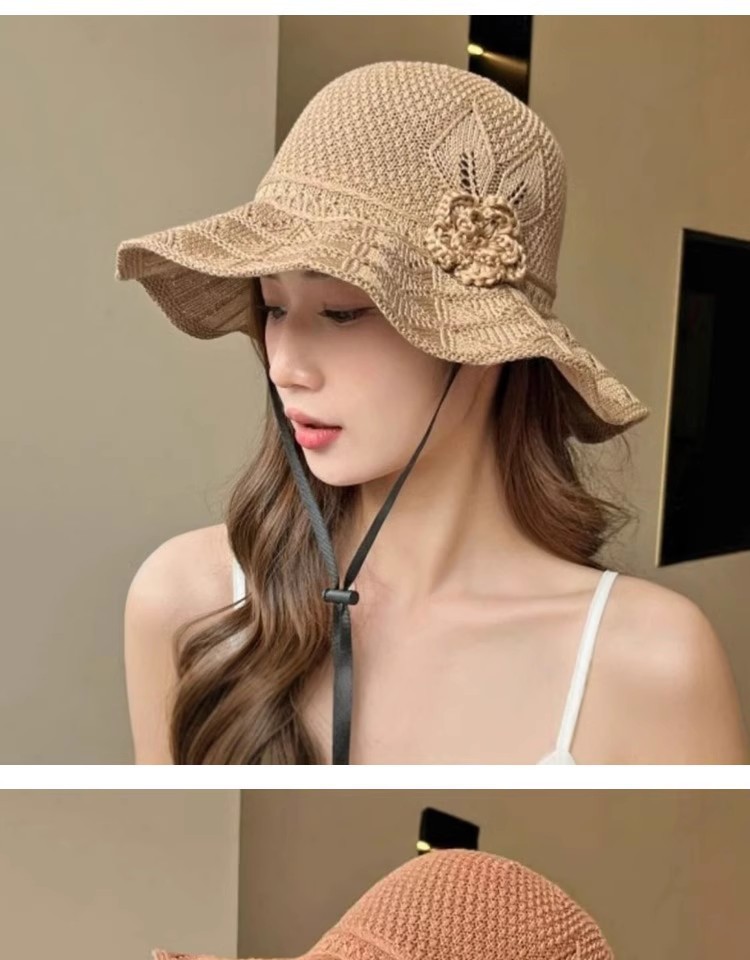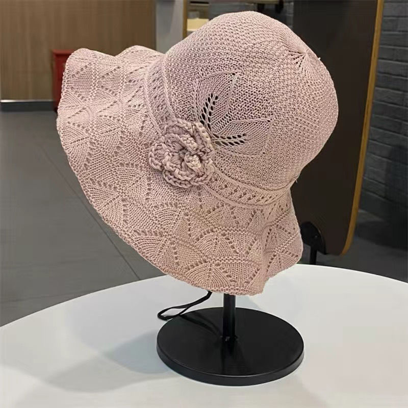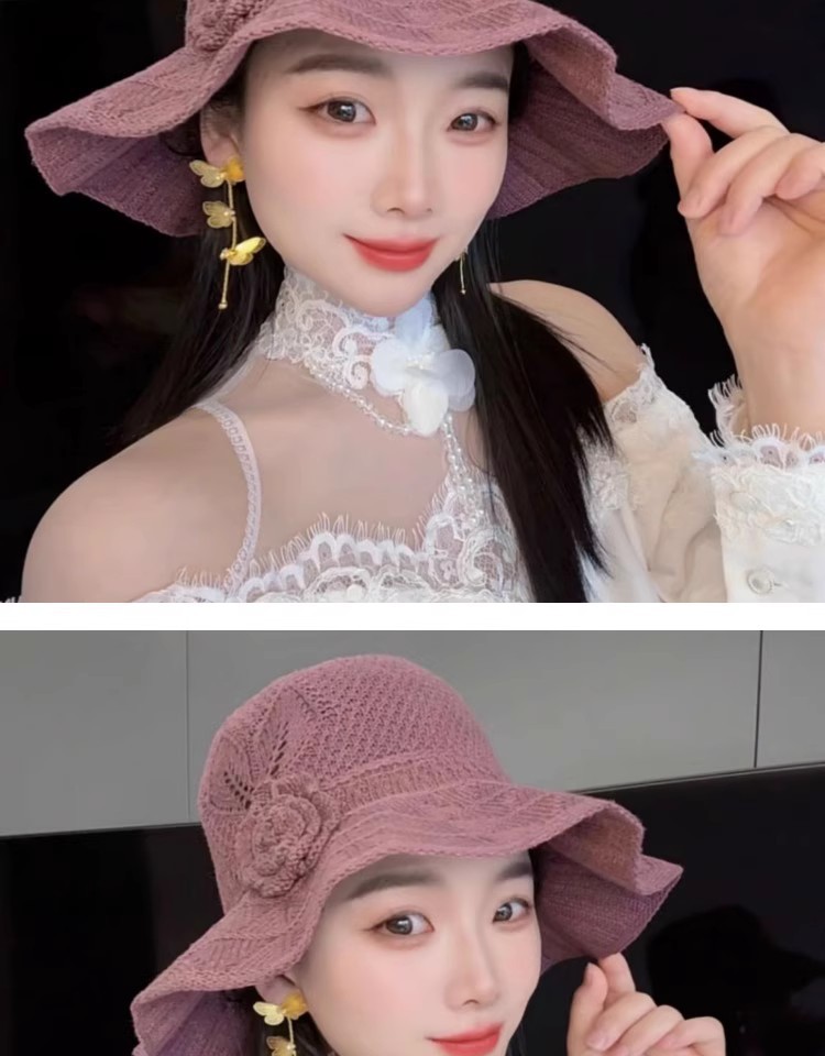 新款潮流夏季花朵户外百搭渔夫遮阳防晒透气镂空折叠韩版大檐盆帽