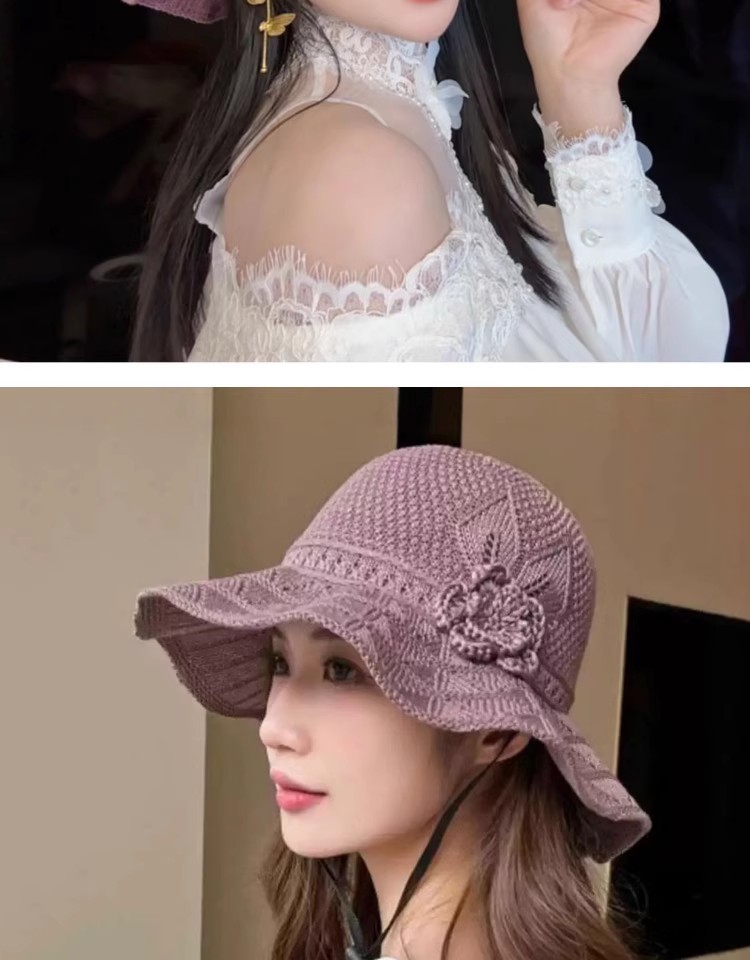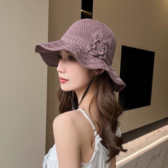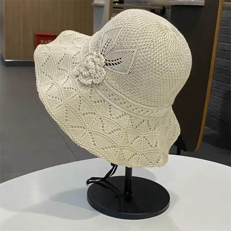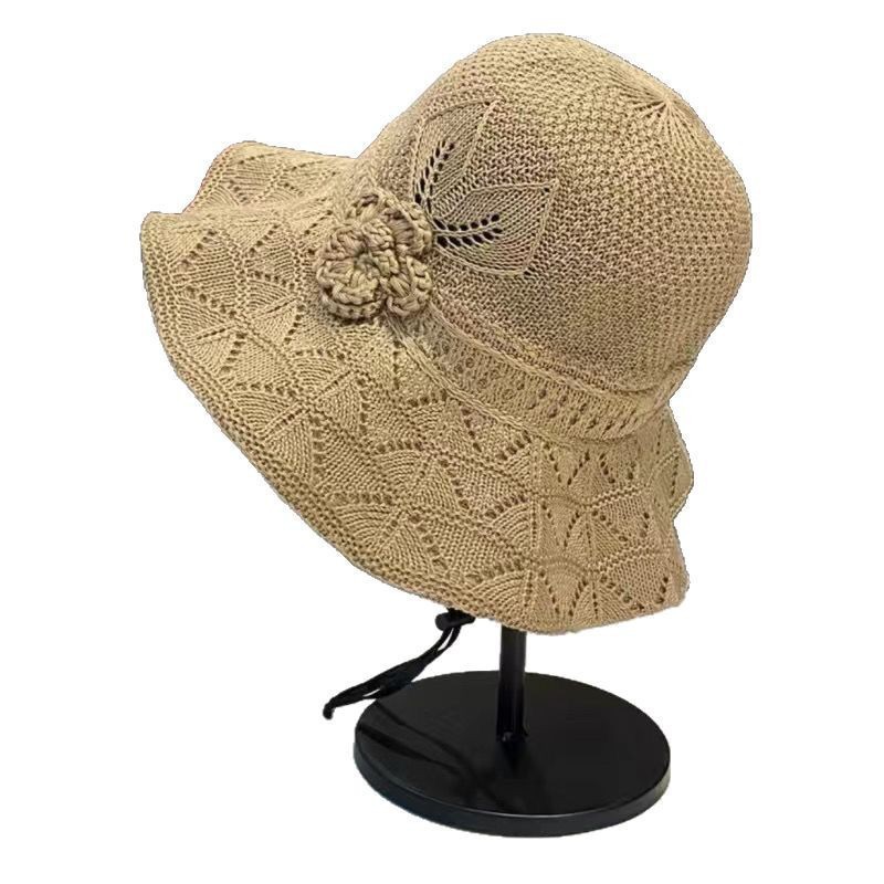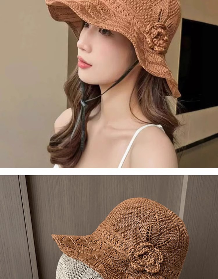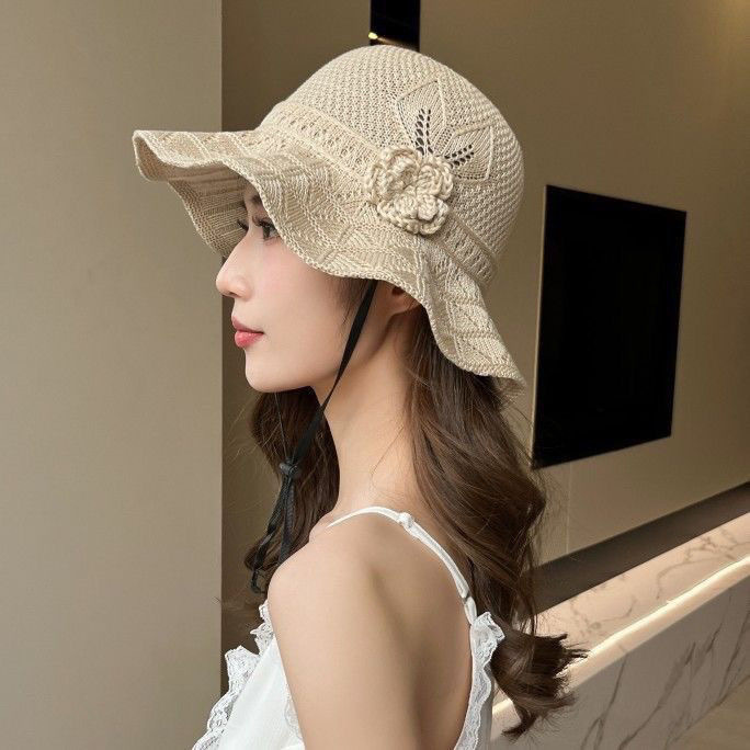 新款潮流夏季花朵户外百搭渔夫遮阳防晒透气镂空折叠韩版大檐盆帽