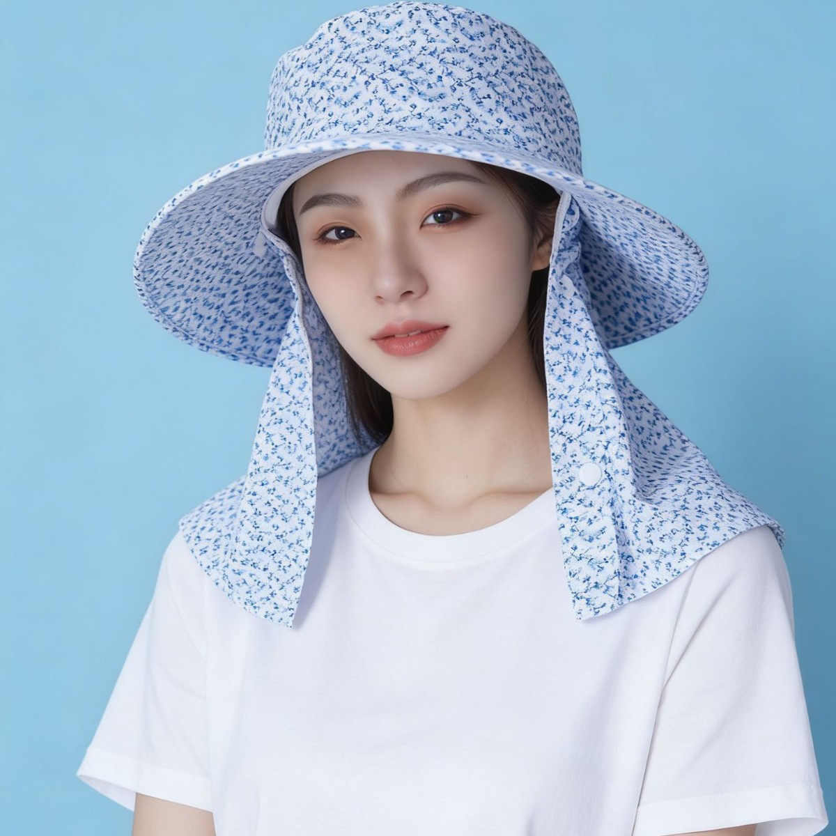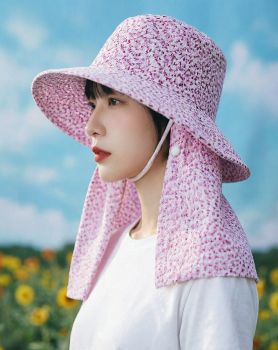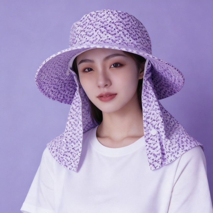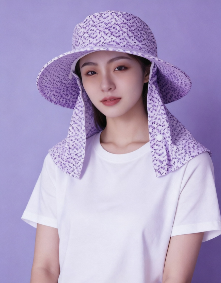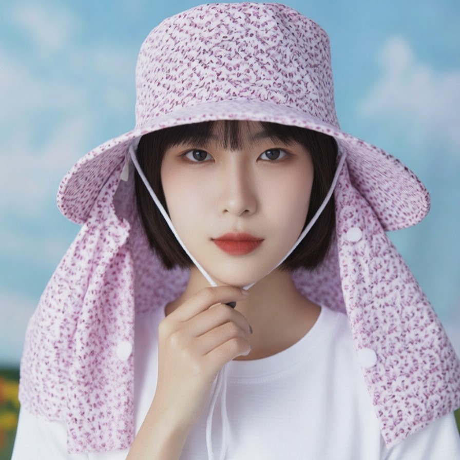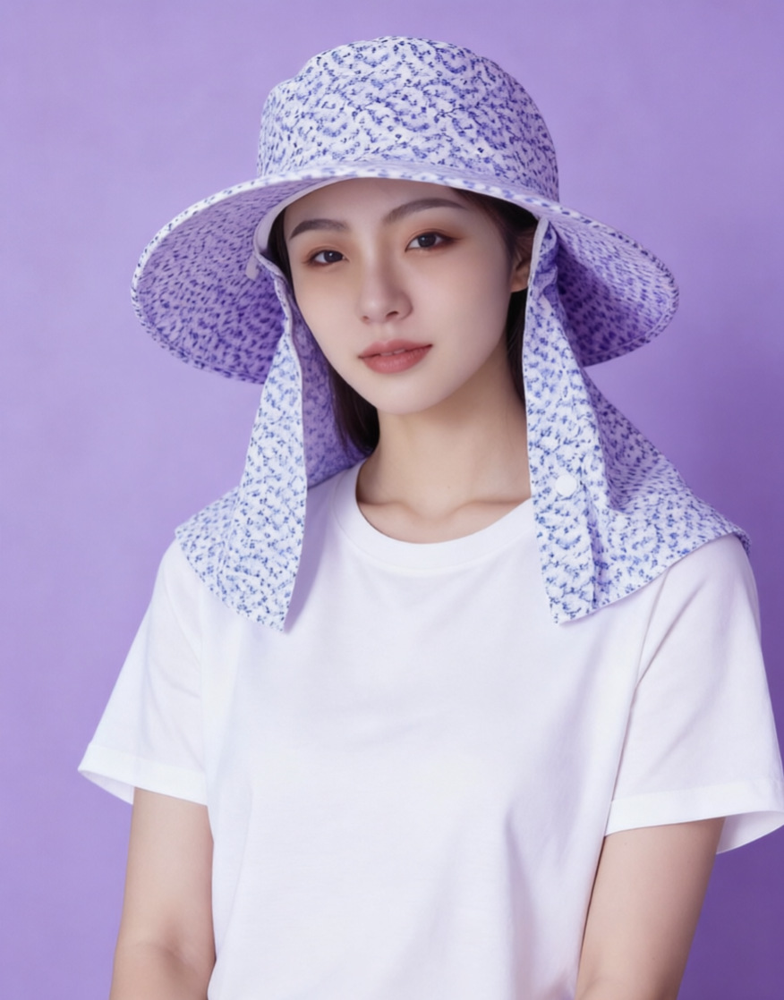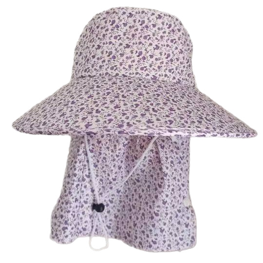 夏季户外防晒帽女小花一体不拆卸护颈面罩遮阳帽防紫外线透气舒适
