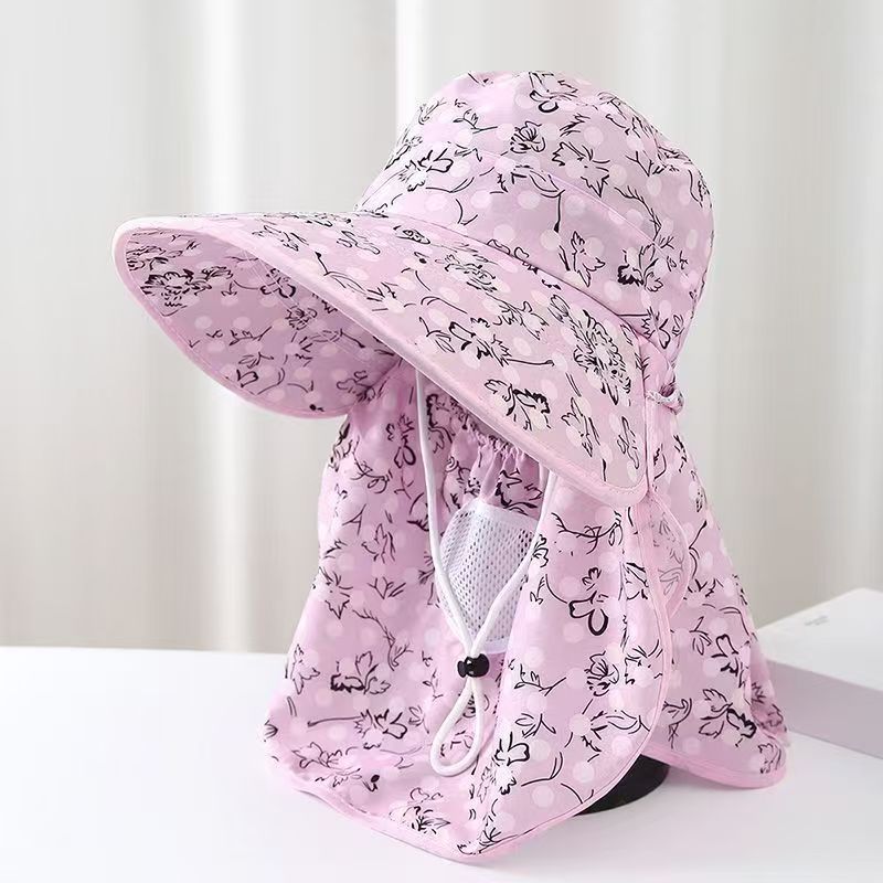 采茶防晒夏季帽子遮脸太阳帽干活面罩户外紫外线新款骑车遮阳帽子