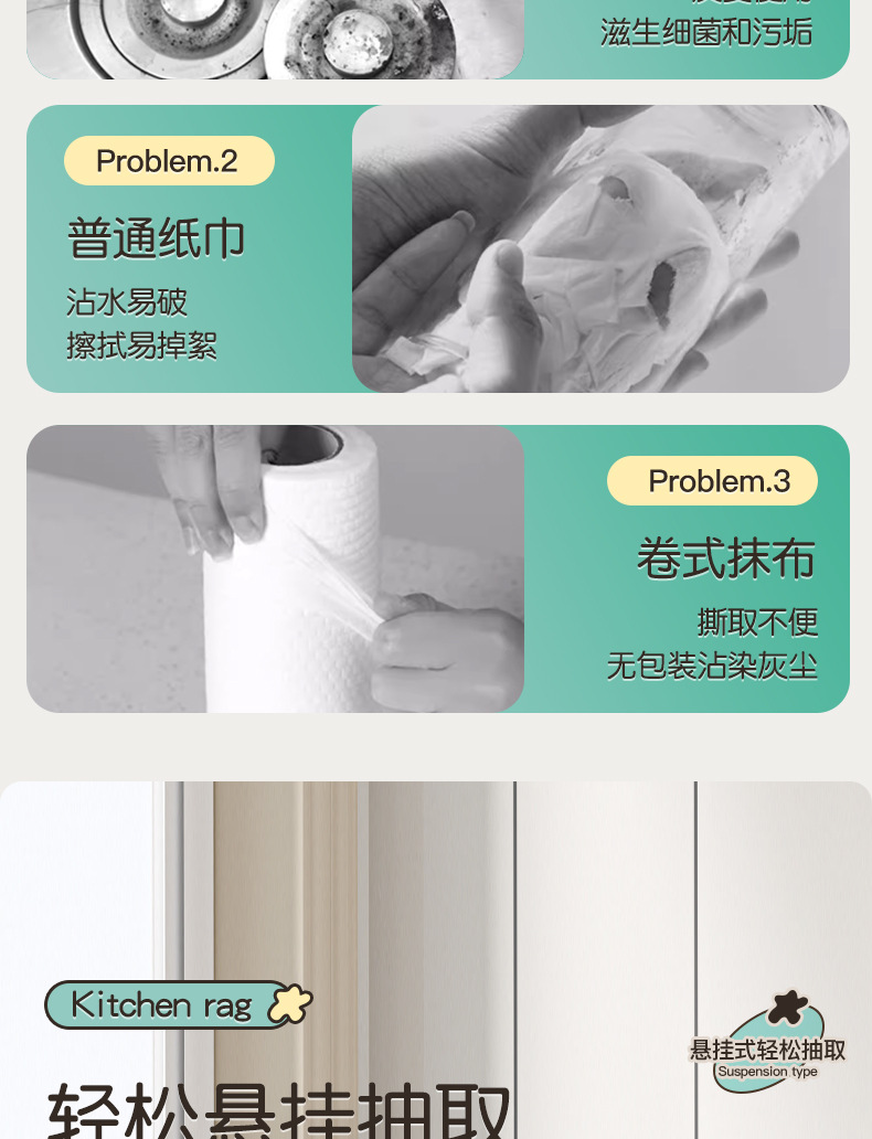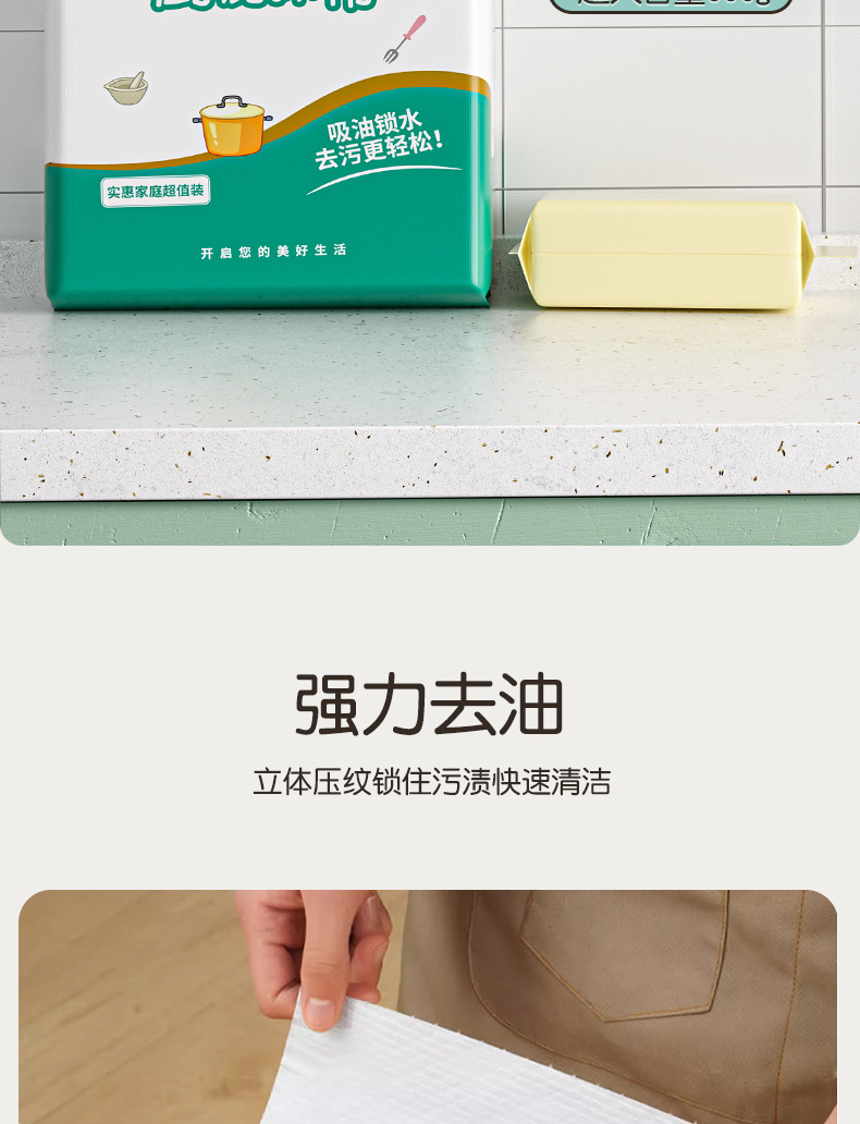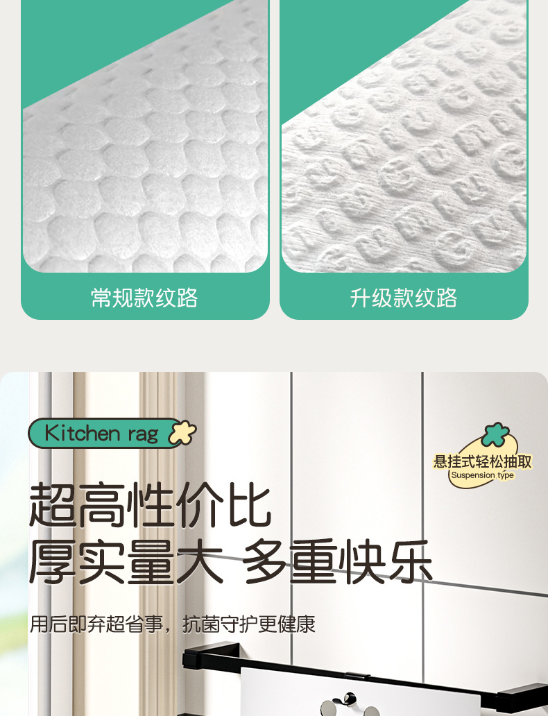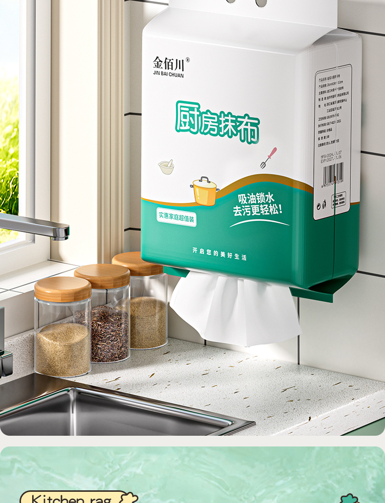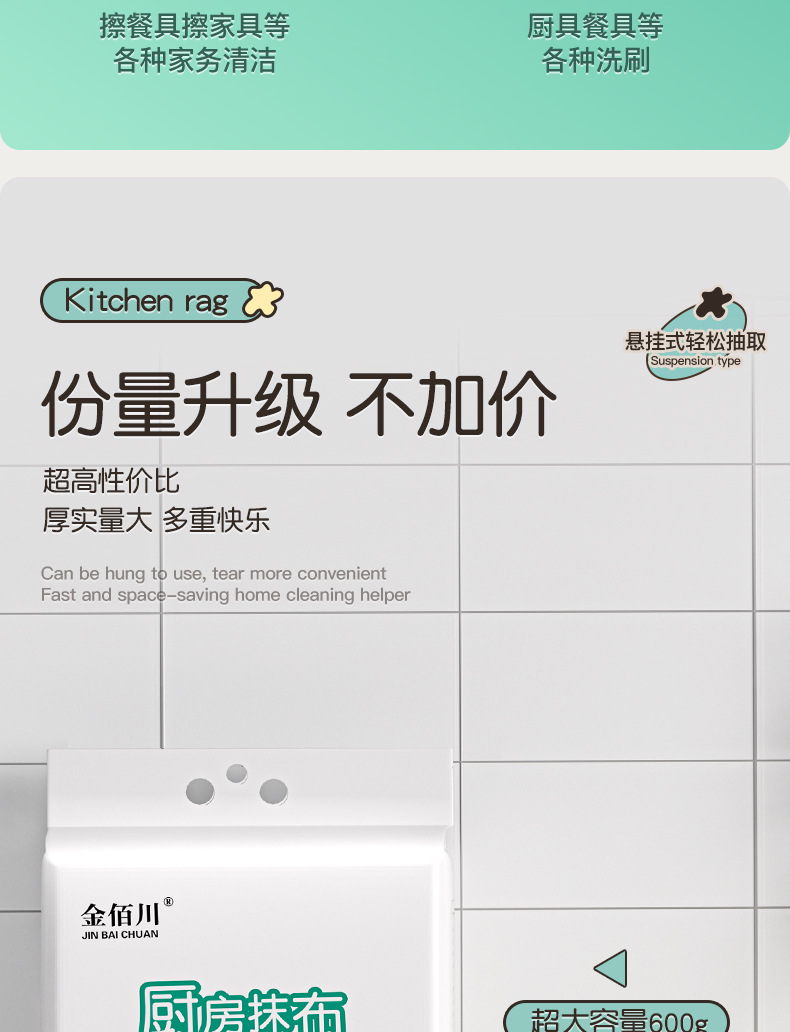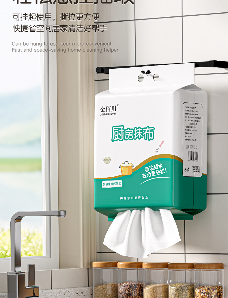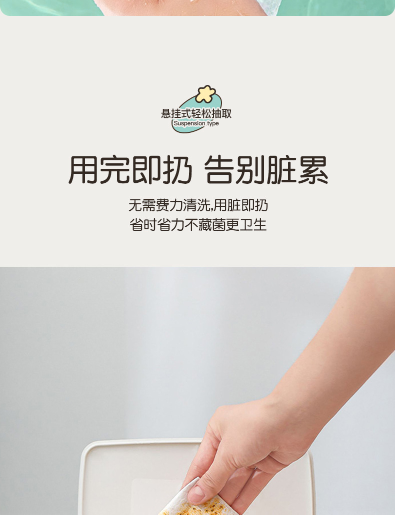家用一次性厨房抹布悬挂式干湿两用加大加厚吸水去污百洁布无纺布
