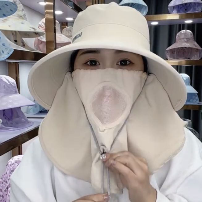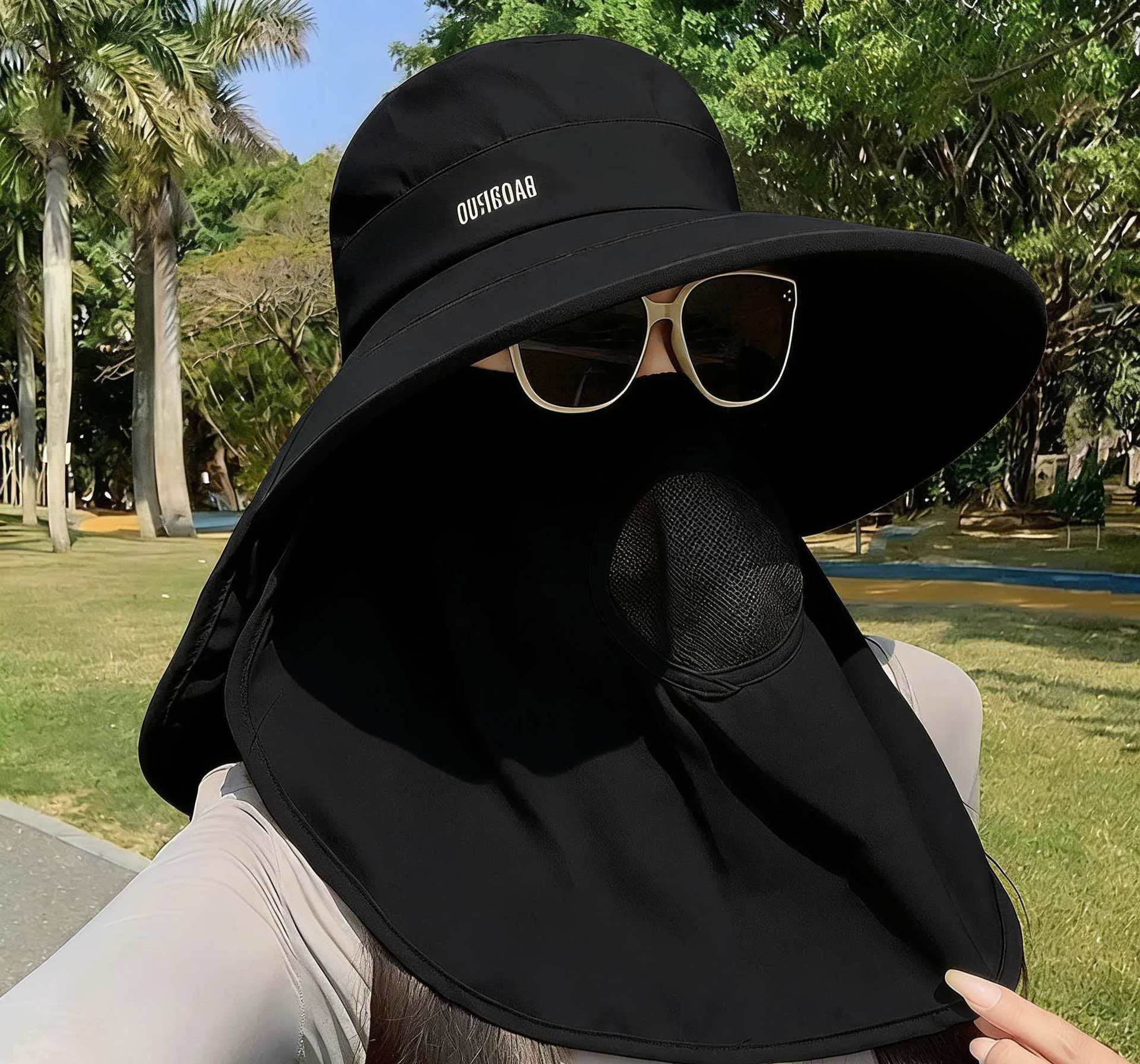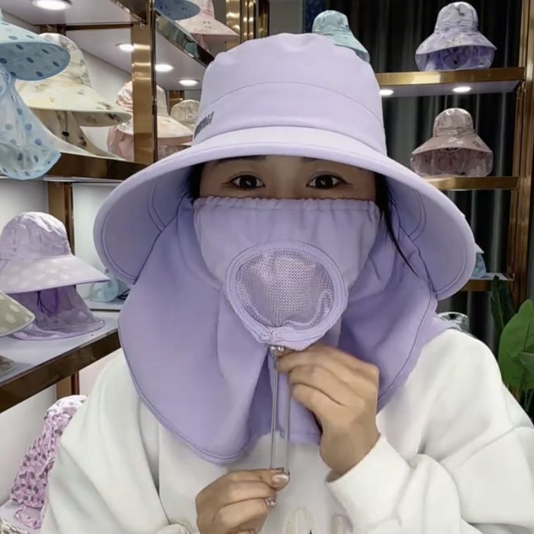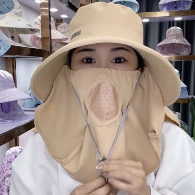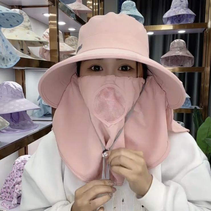 帽子防晒紫外线护颈一体夏季遮脸面罩太阳帽骑车采茶户外遮阳帽