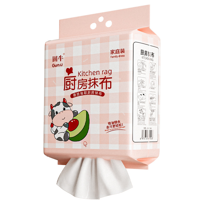 固牛厨房抹布悬挂式底部抽取懒人抹布加大加厚一次性家用百洁布