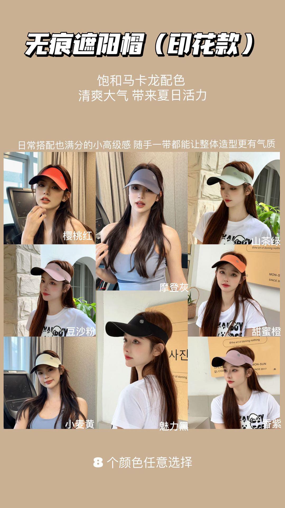 LLBB&无痕遮阳帽 2023夏季新款防晒帽太阳帽空顶帽子 遮脸神器女
