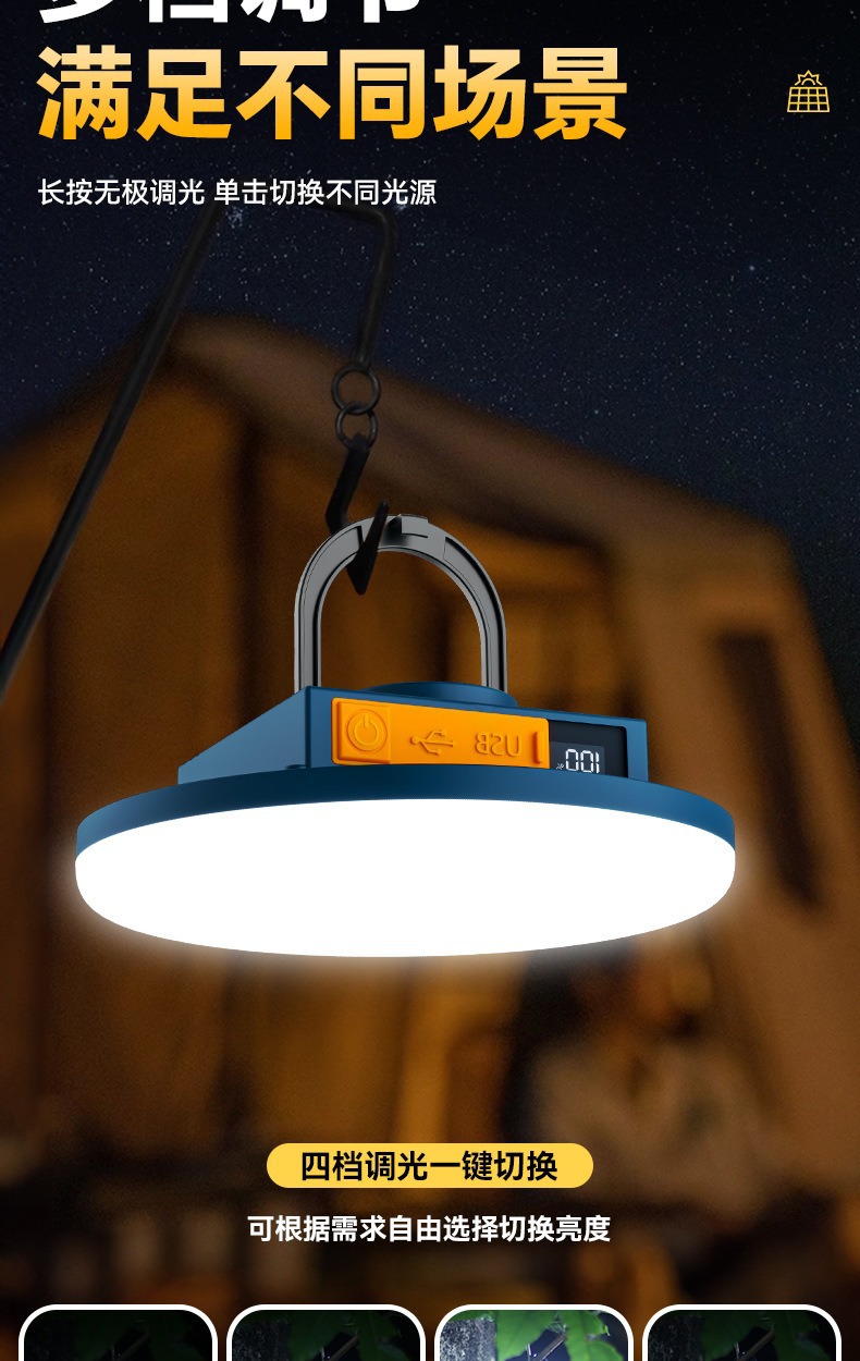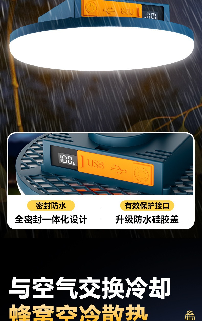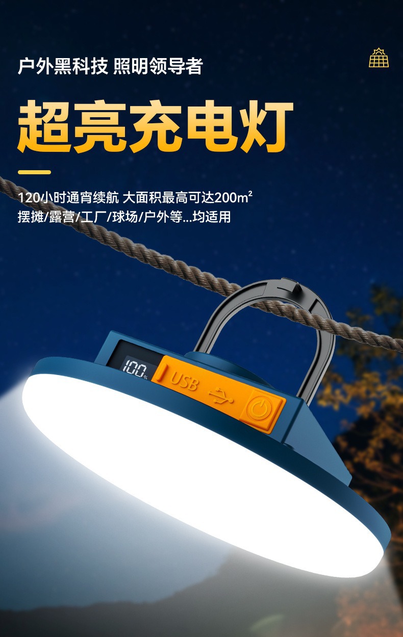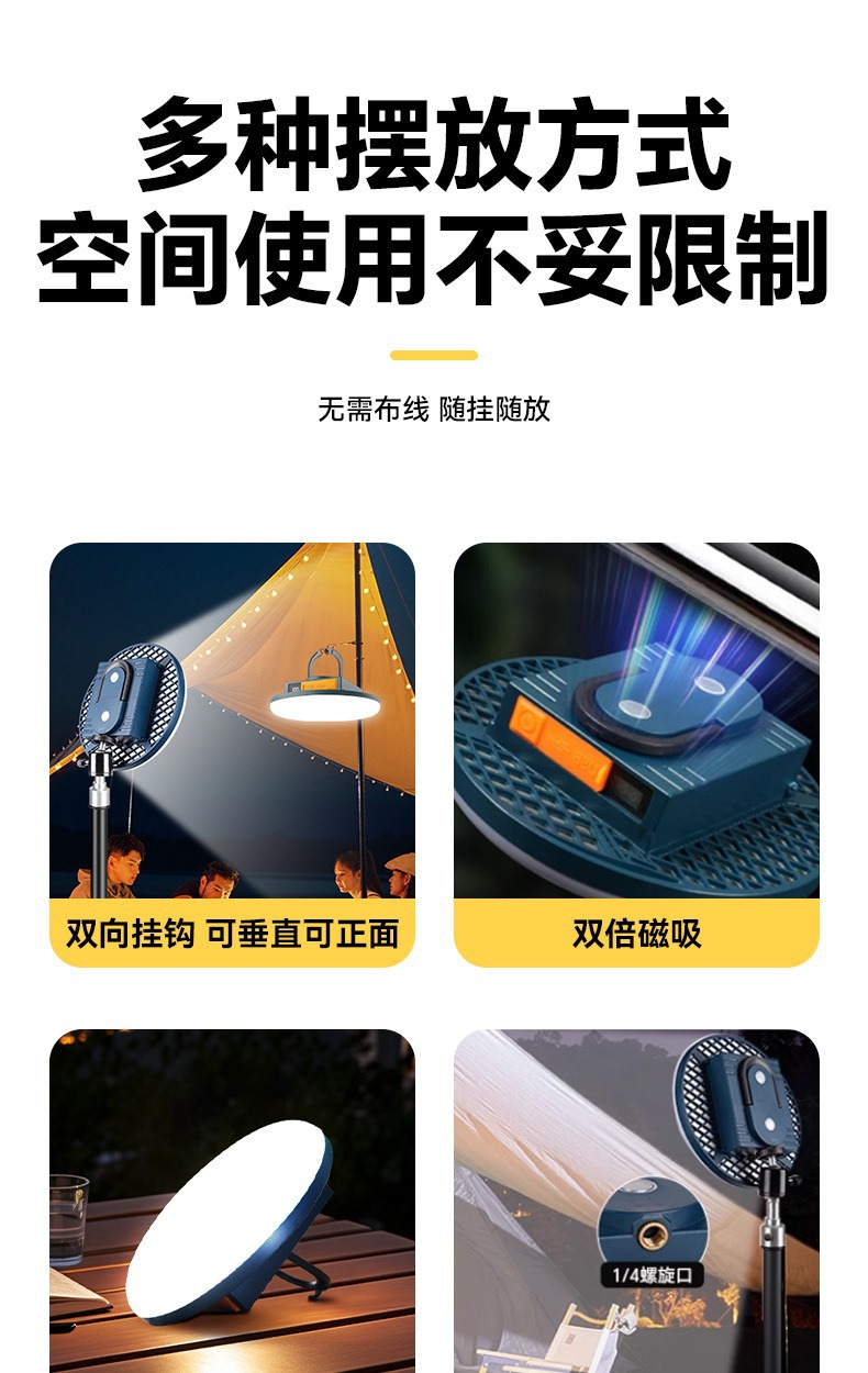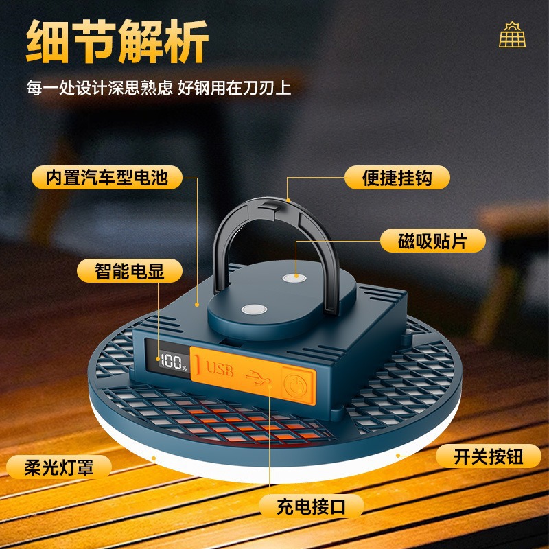 现货批发户外露营灯超长续航磁吸充电照明灯大容量摆摊专用照明灯