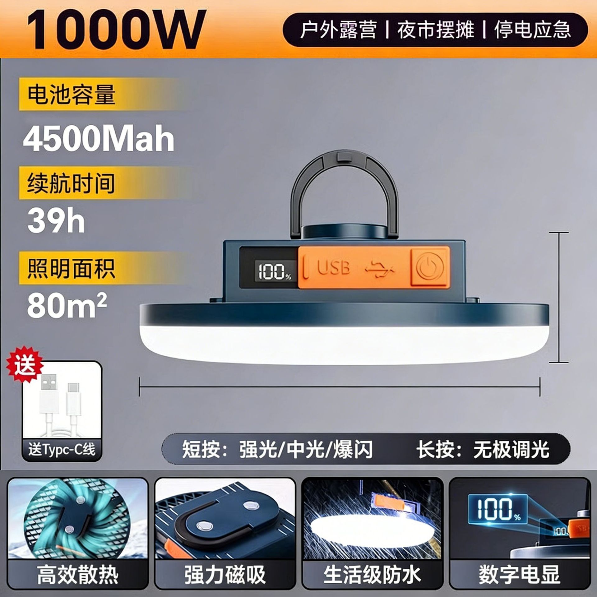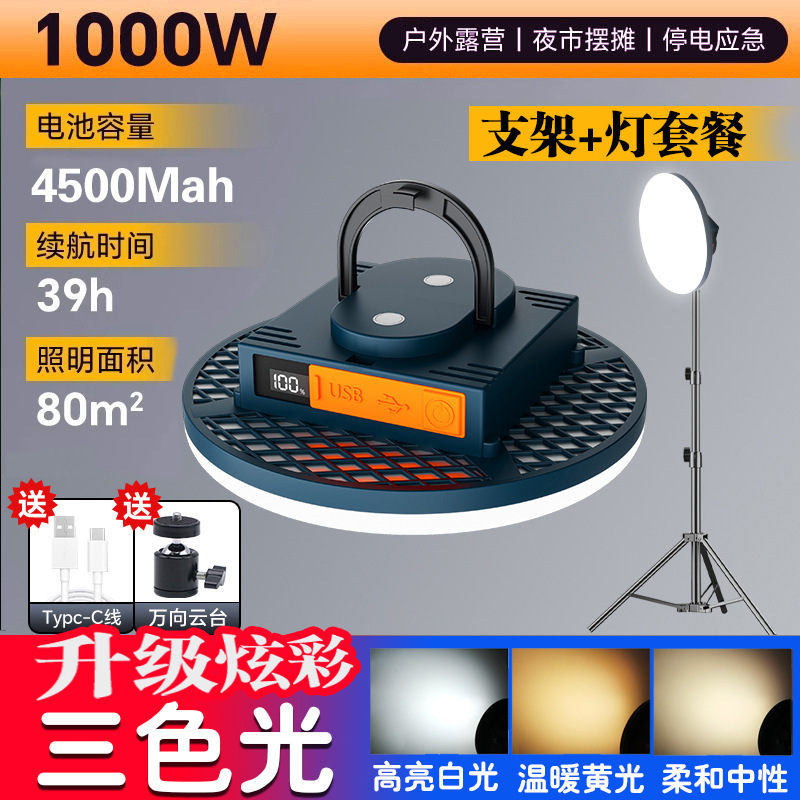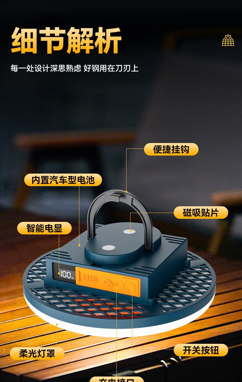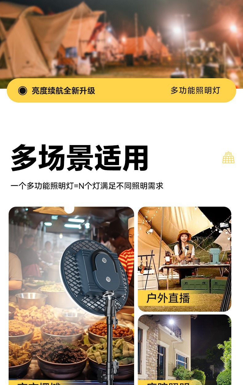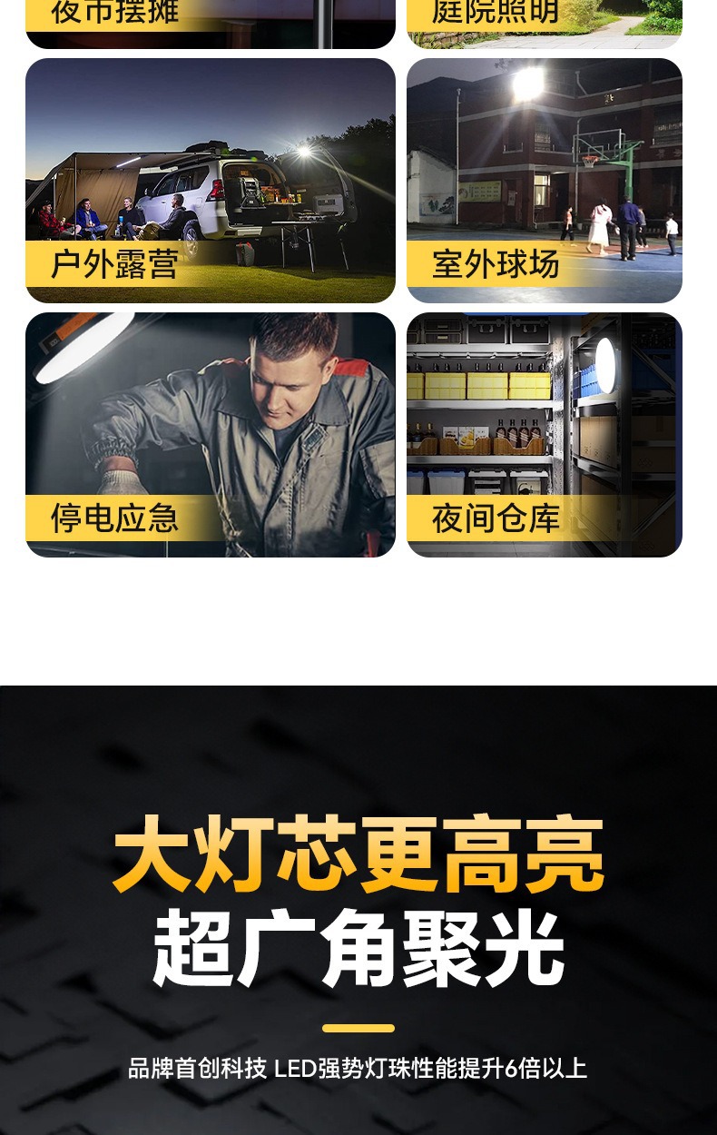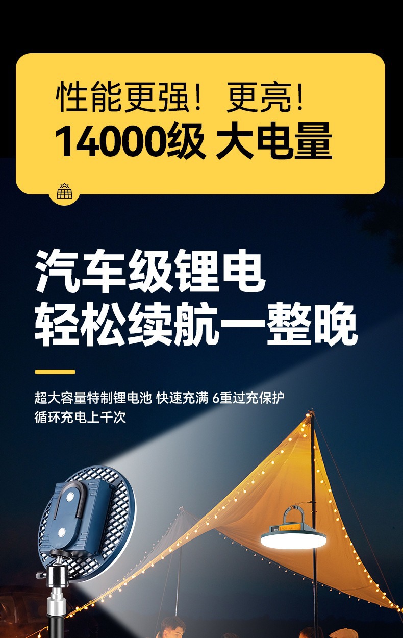 现货批发户外露营灯超长续航磁吸充电照明灯大容量摆摊专用照明灯