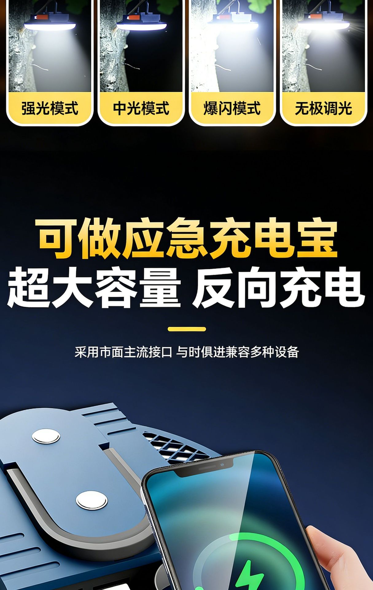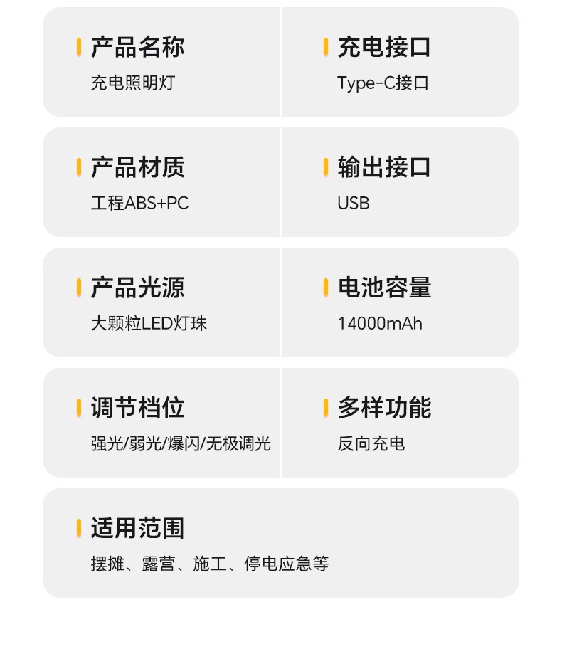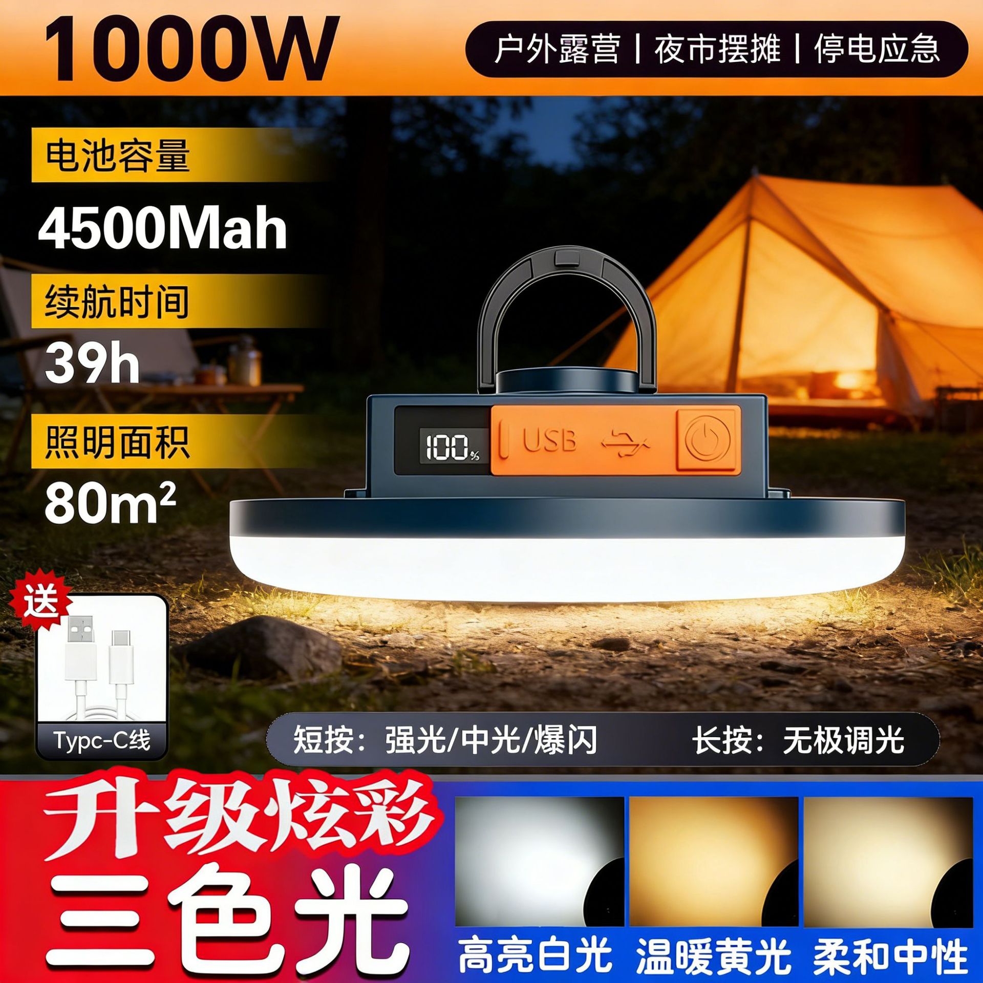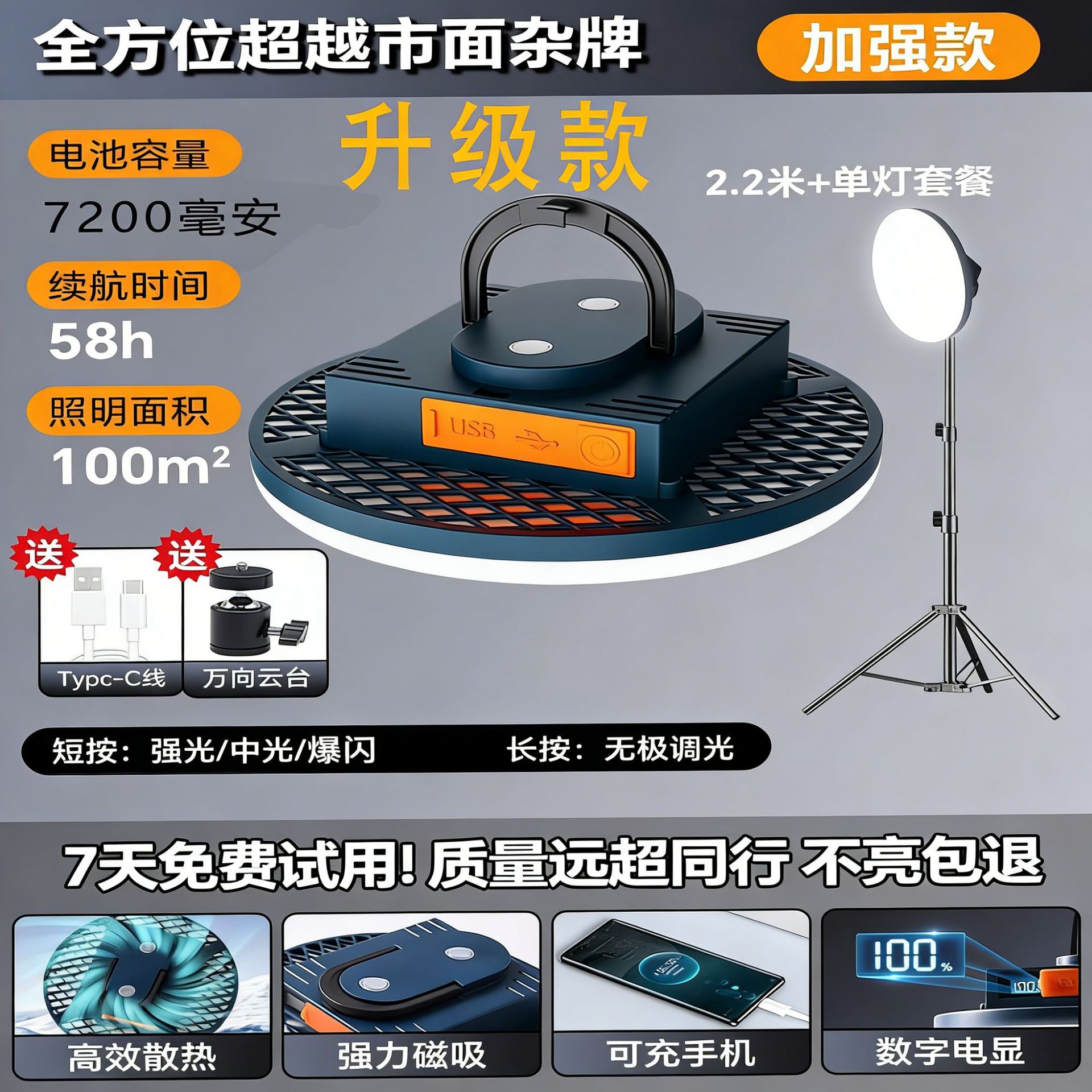 现货批发户外露营灯超长续航磁吸充电照明灯大容量摆摊专用照明灯