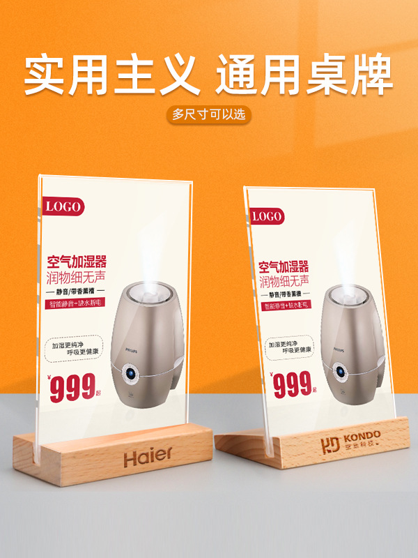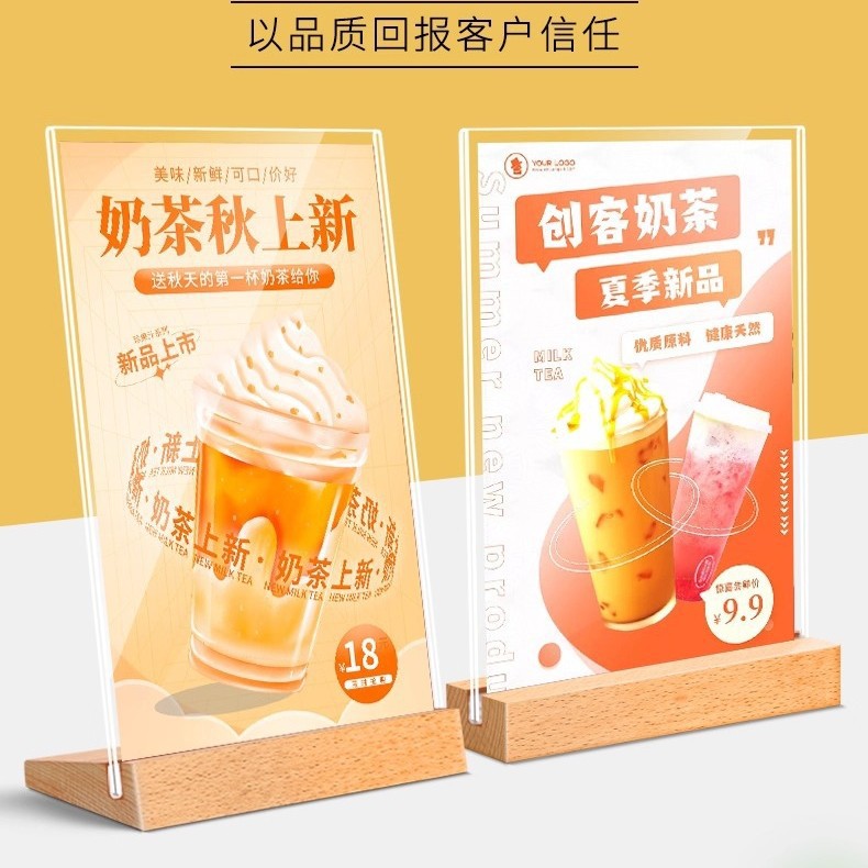 亚克力台卡展示牌亚克力a4榉木台牌木质餐牌A5广告牌桌面实木台卡
