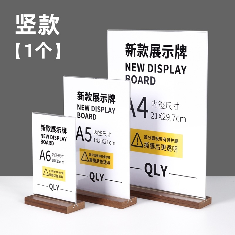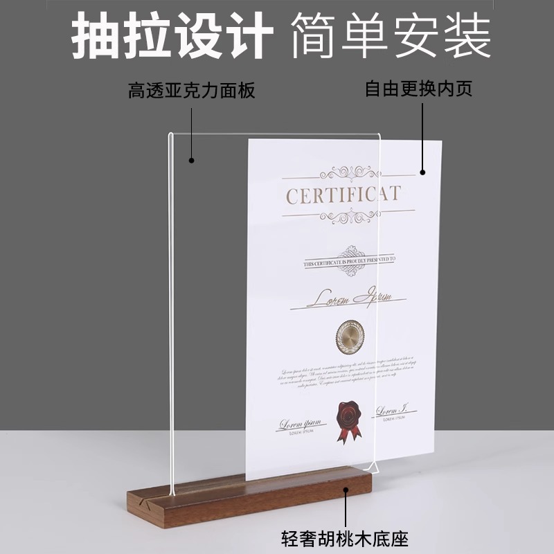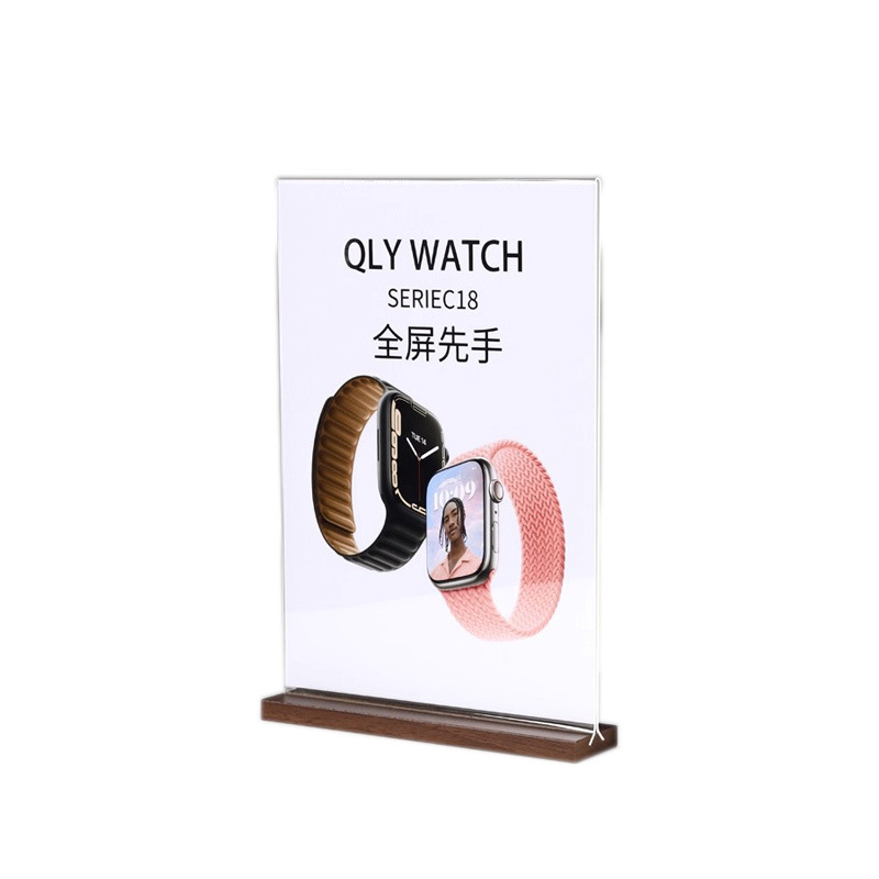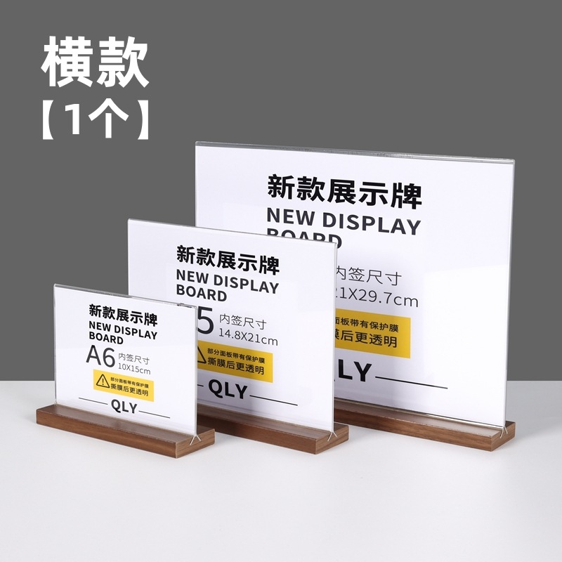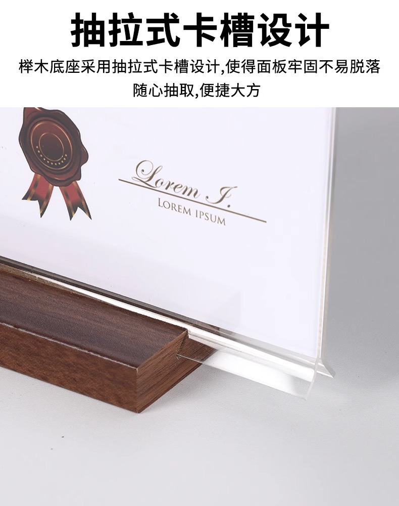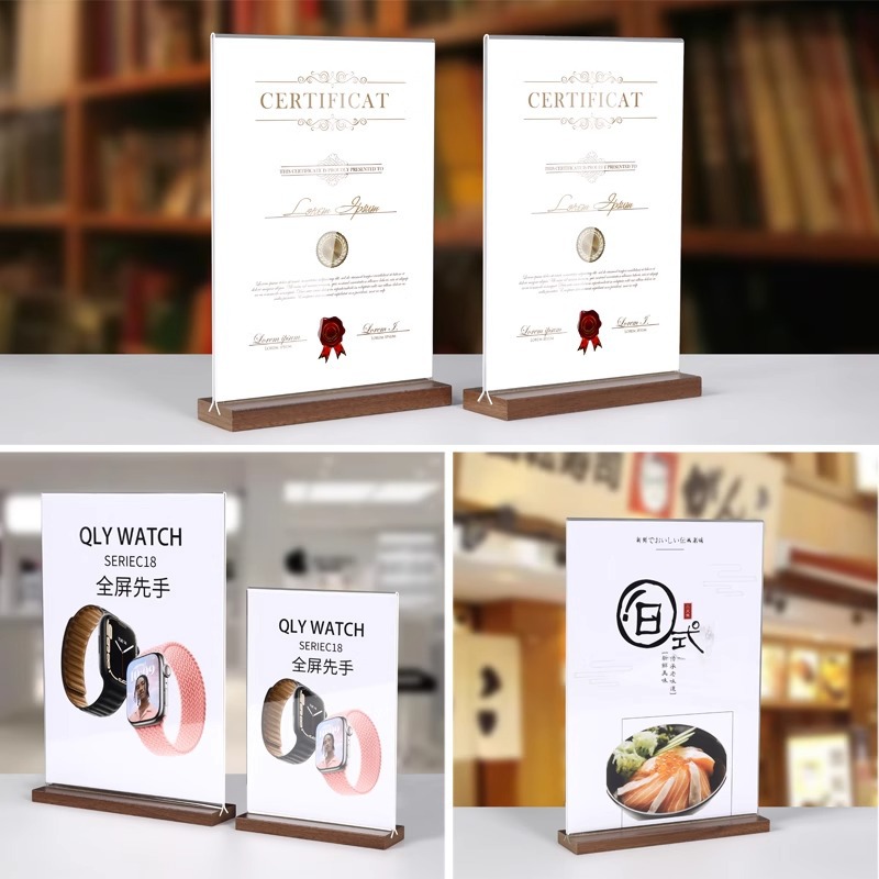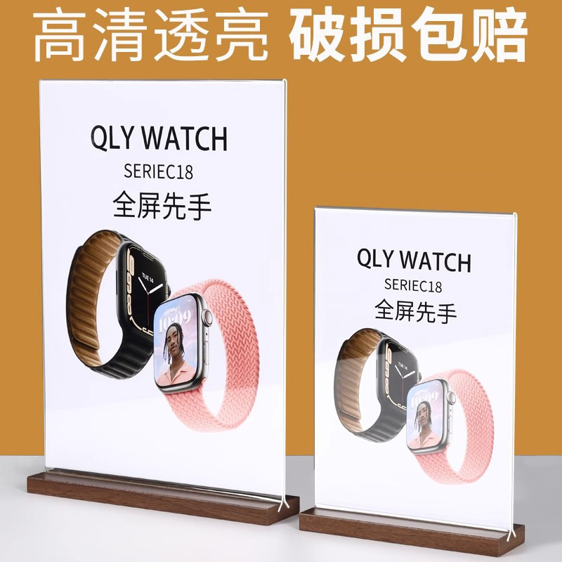 亚克力台卡架展示牌A4立牌桌牌木质高档榉木透明台卡桌面展示台牌