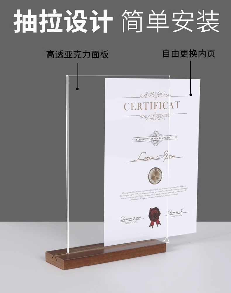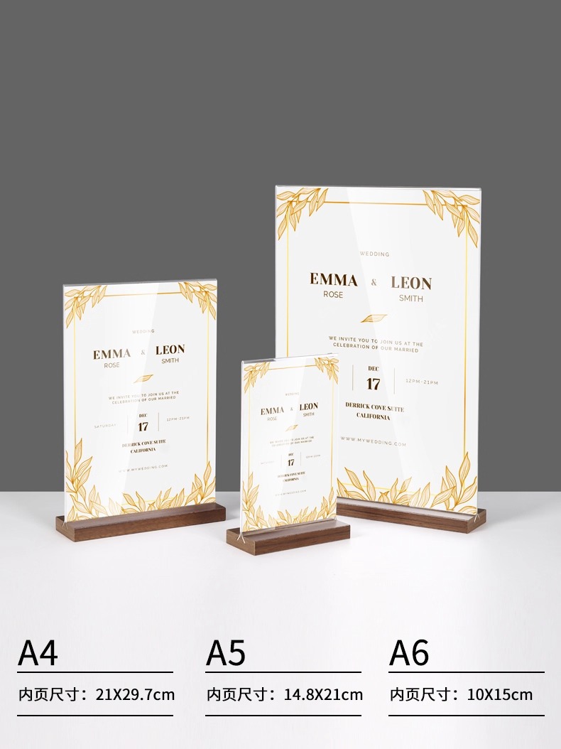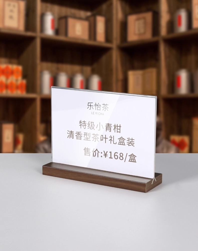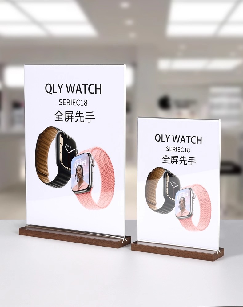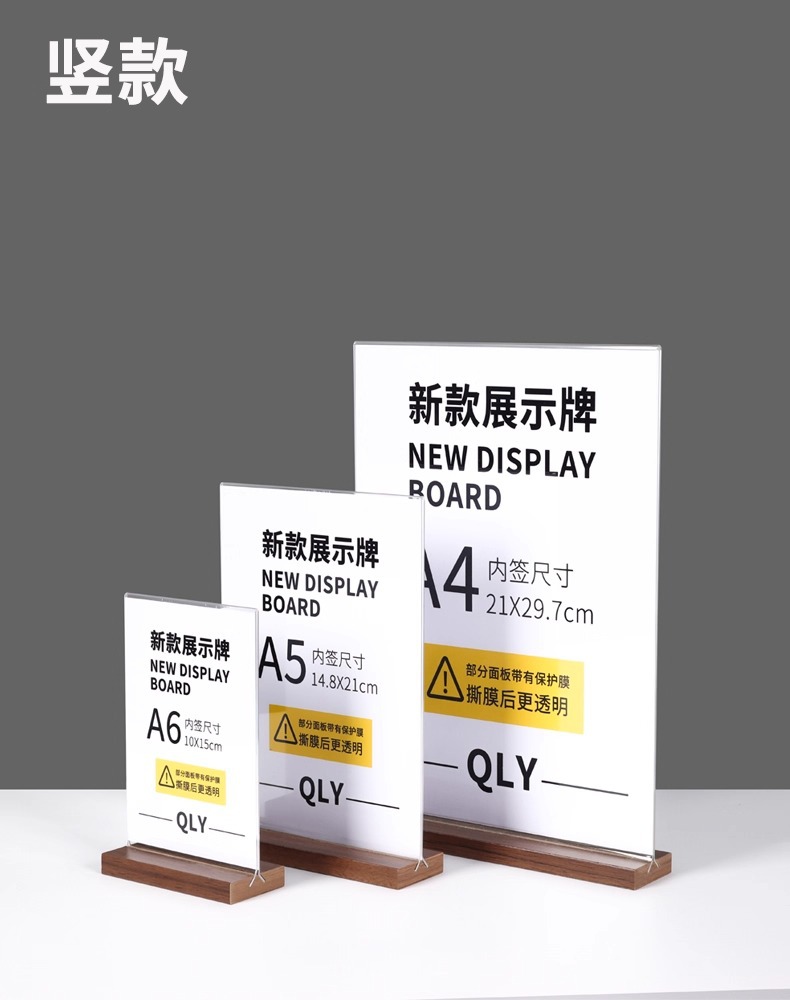 亚克力台卡架展示牌A4立牌桌牌木质高档榉木透明台卡桌面展示台牌