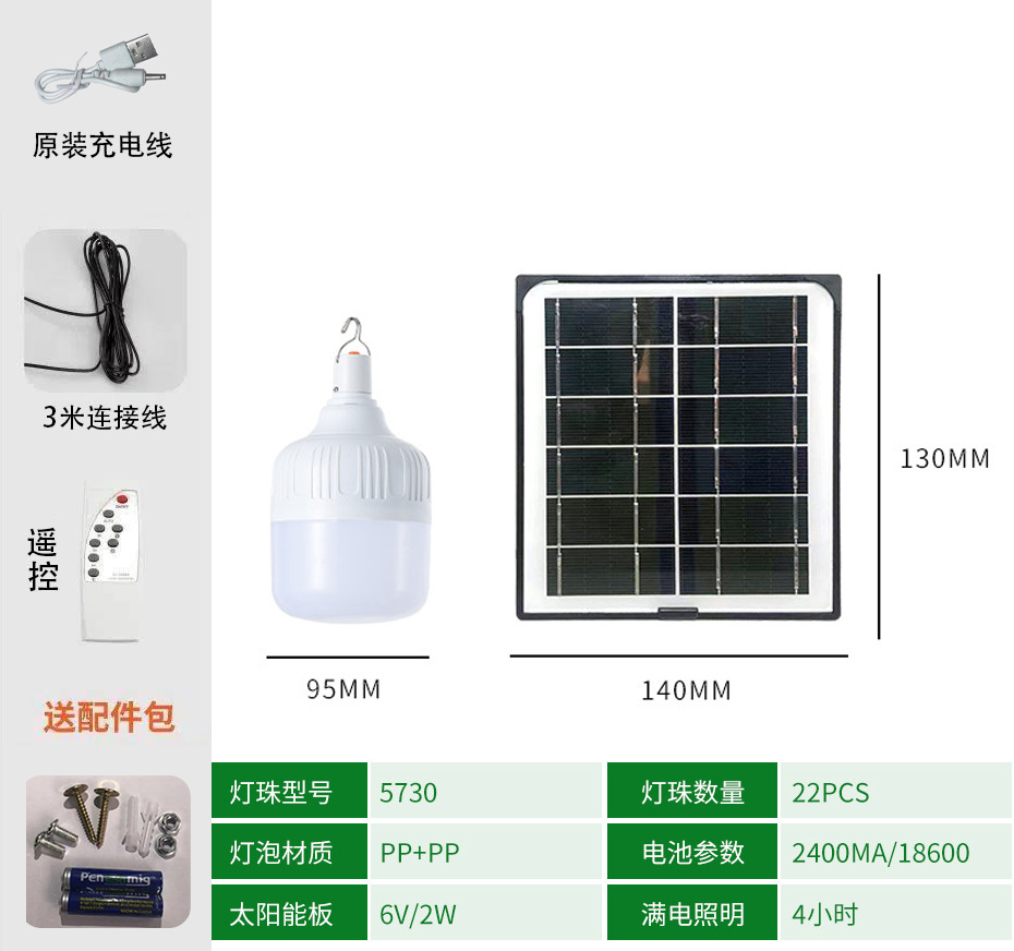 太阳能充电球泡灯摆地摊夜市照明灯停电应急户外野营帐篷led灯泡