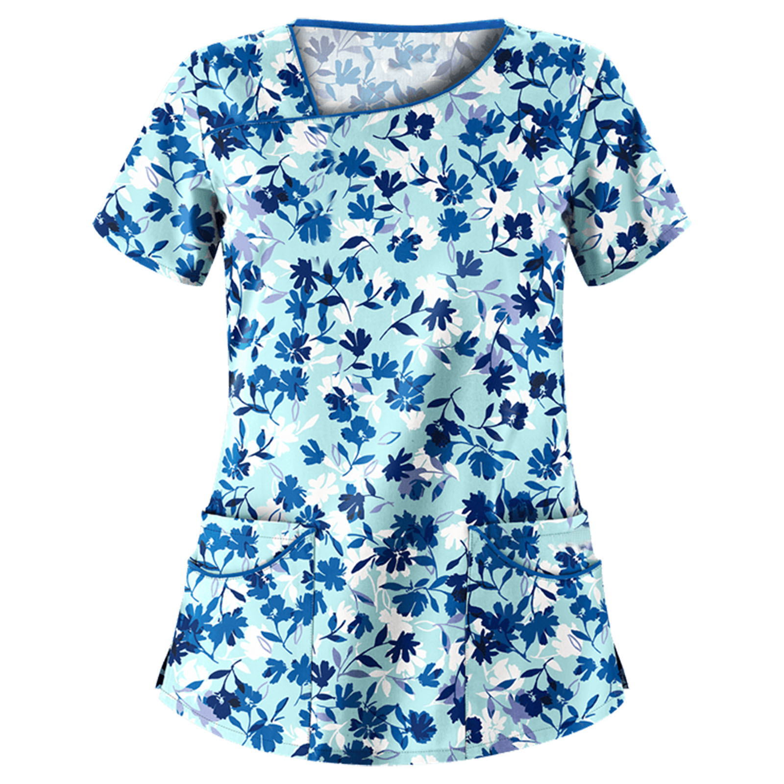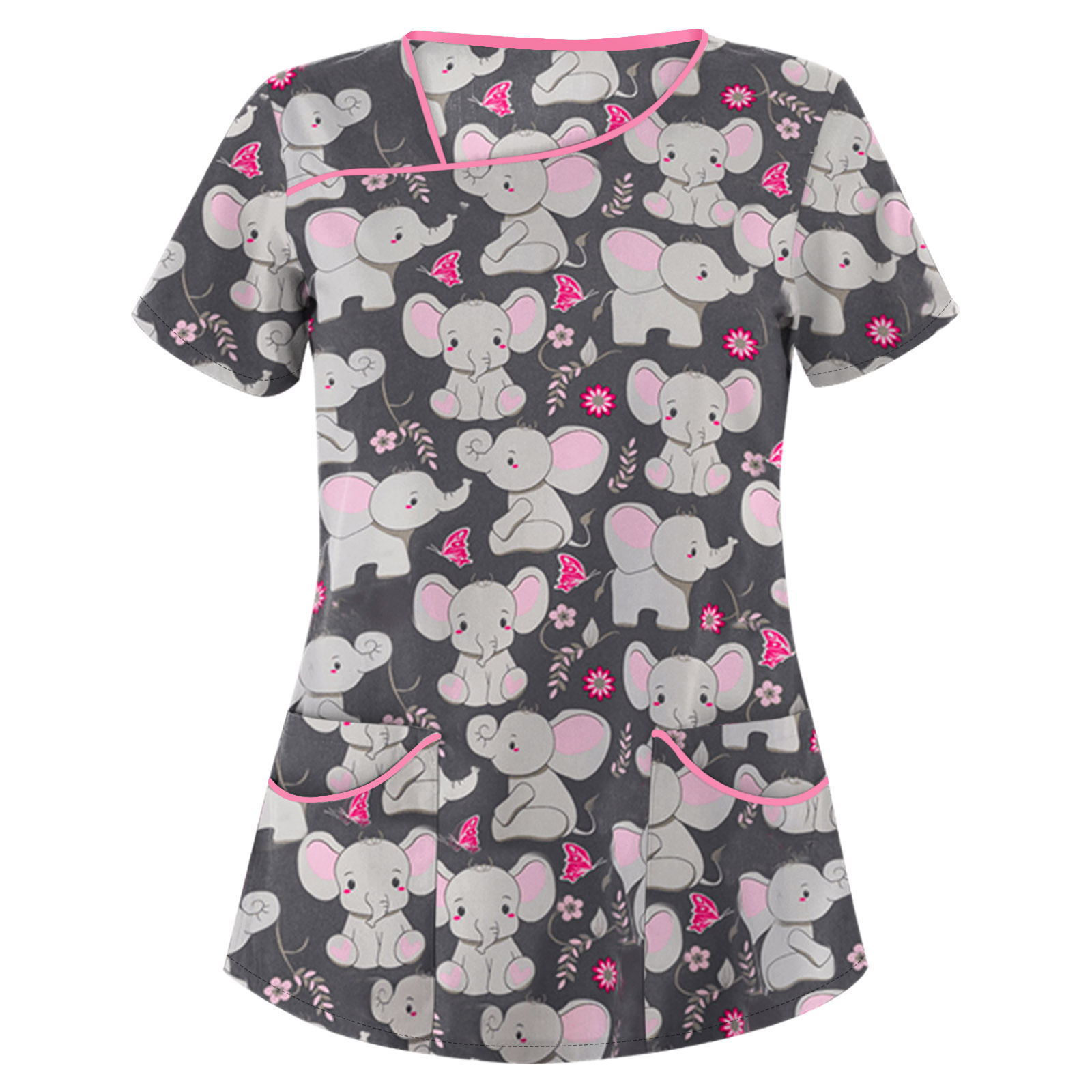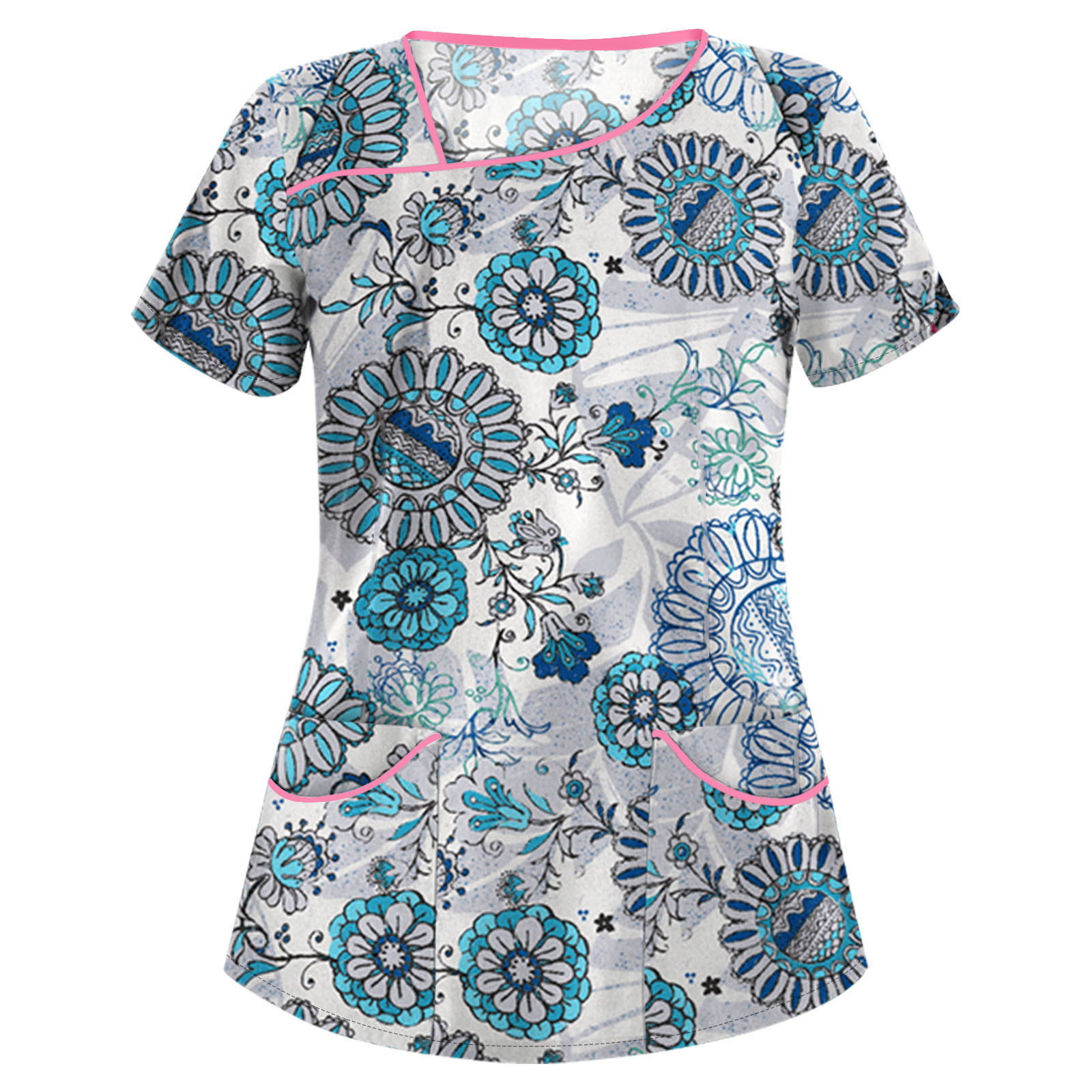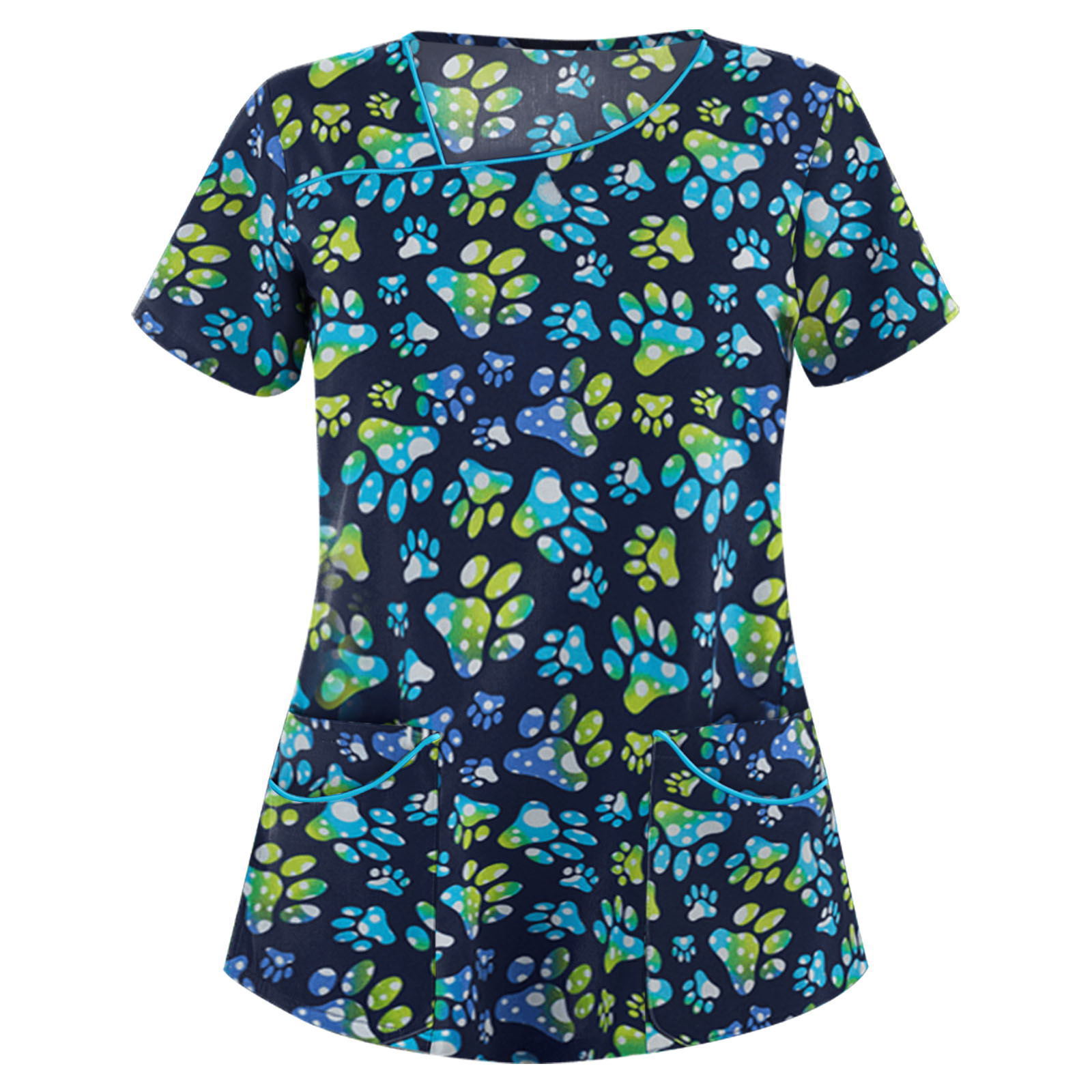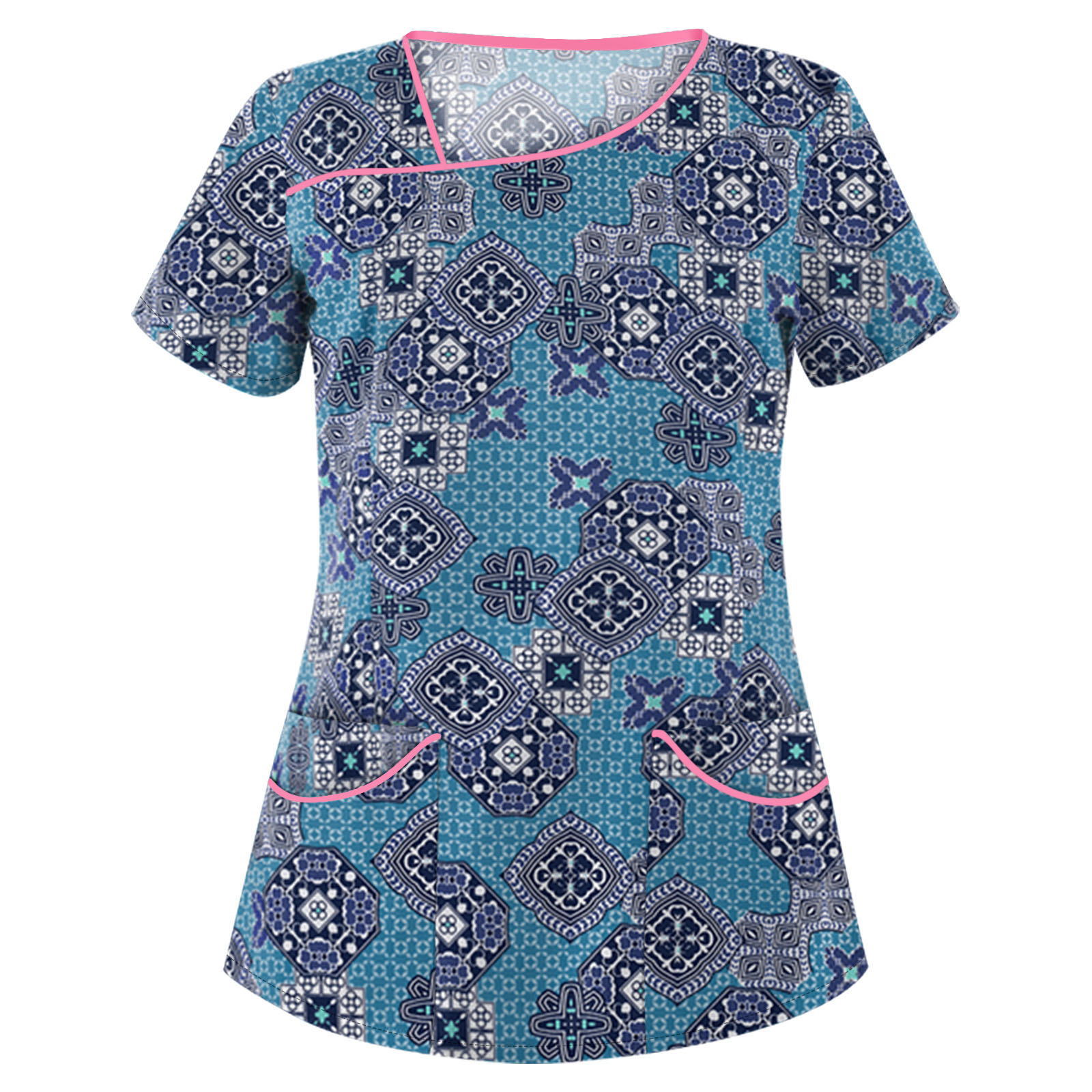 速9卖通wish亚马逊新款 欧美女装印花V领短袖口袋T恤女士上衣 现9