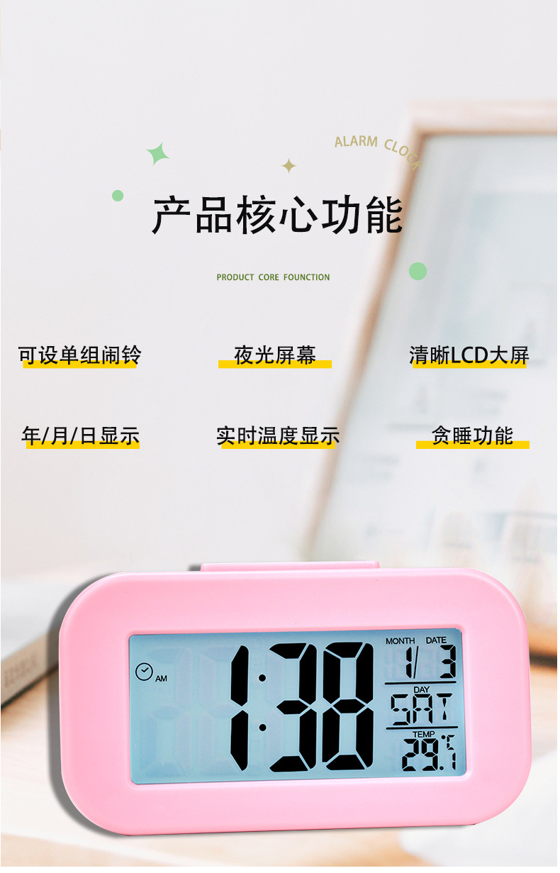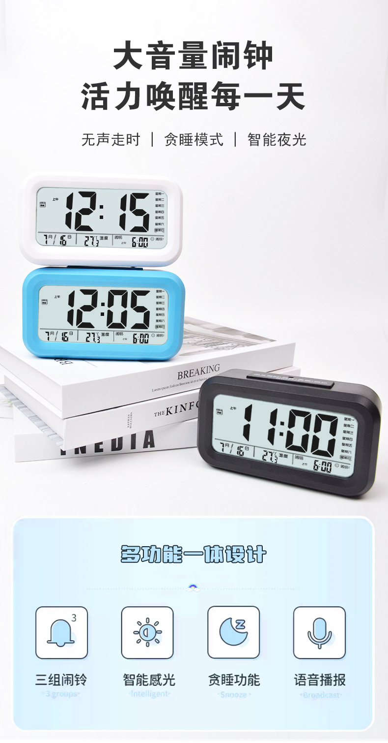 简约聪明钟电子闹钟学生专用懒人贪睡LED钟静音背光数字桌面钟