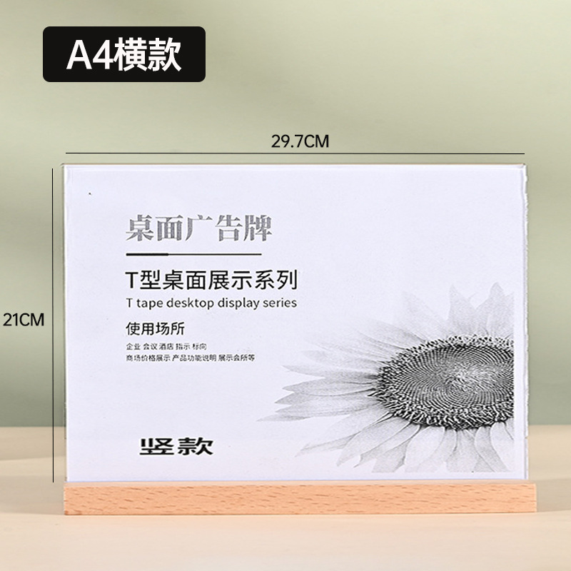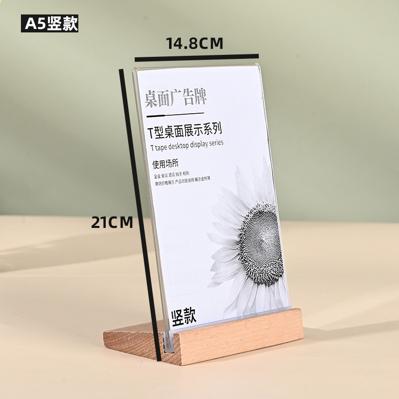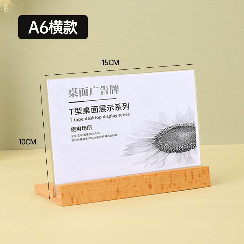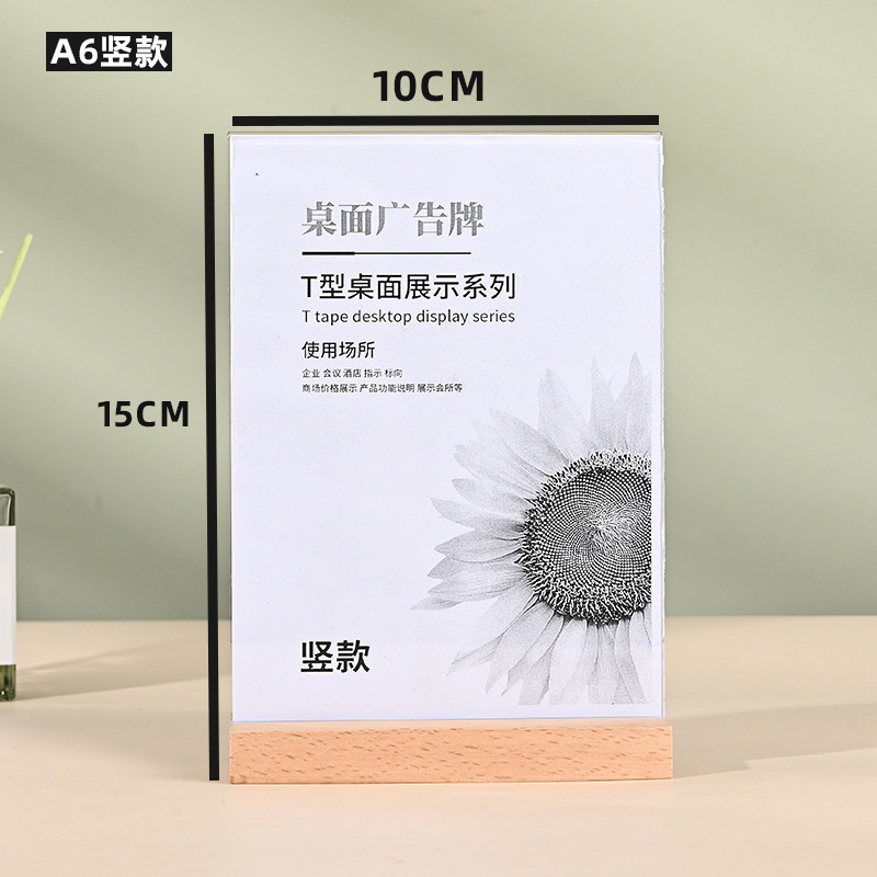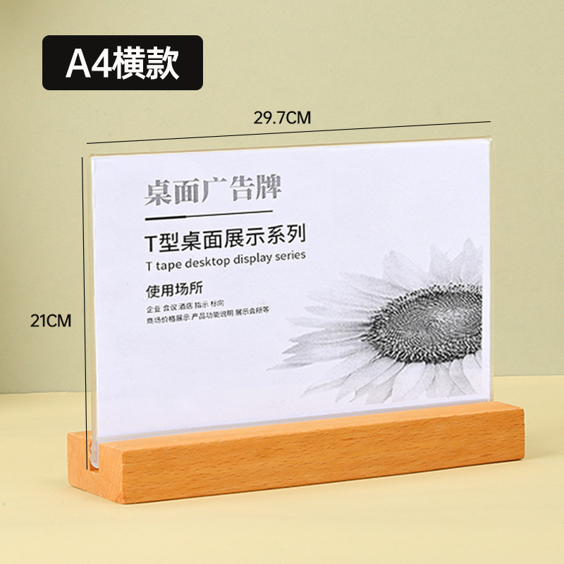 跨境亚克力透明台签双面加厚会议牌实木展示牌木质底座台卡批发