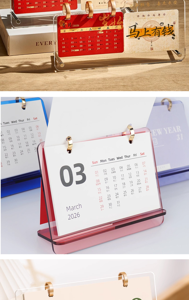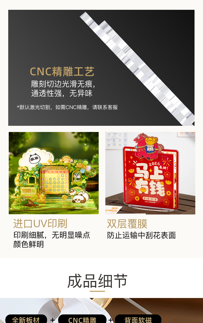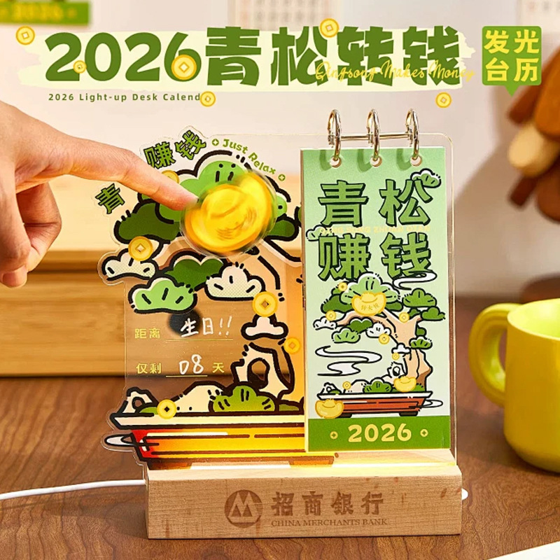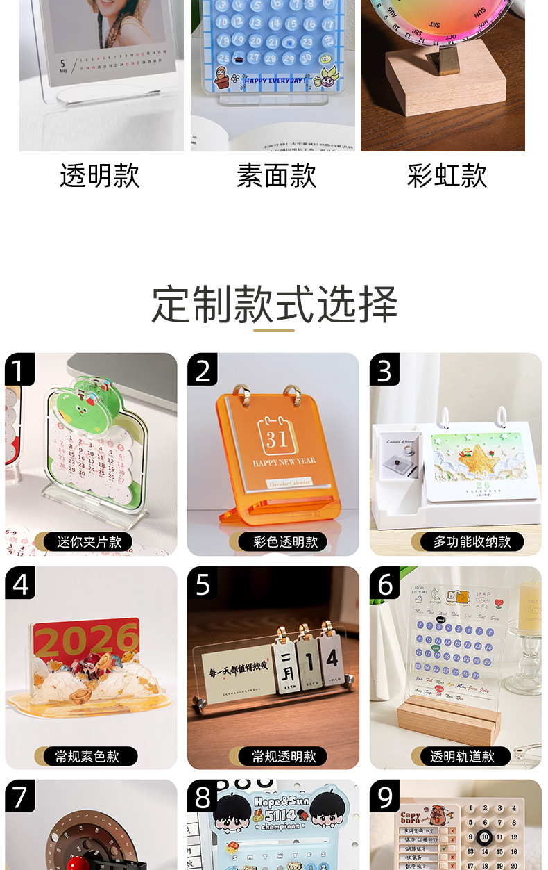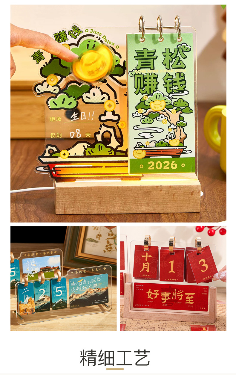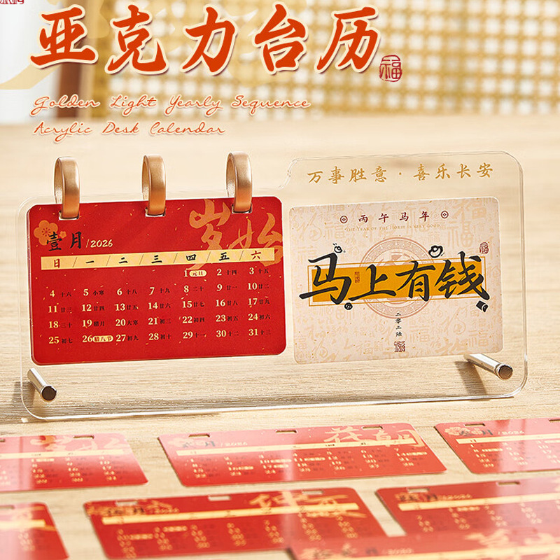 厂家批发2026年亚克力台历定制 办公桌面摆件发光亚克力摆件日历