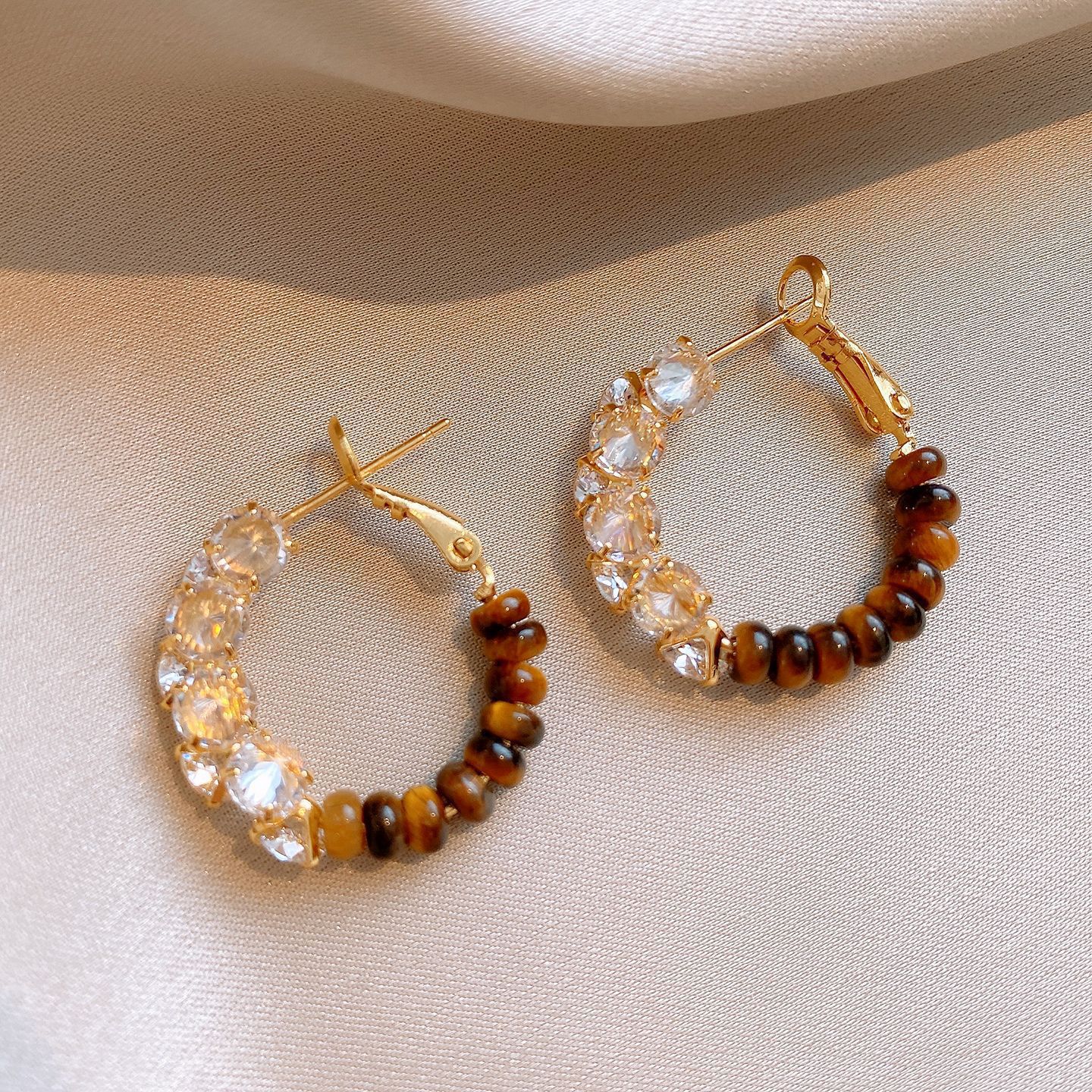 银针树脂虎眼石圆形豹纹耳环复古美拉德耳钉小众高级感耳饰批发女
