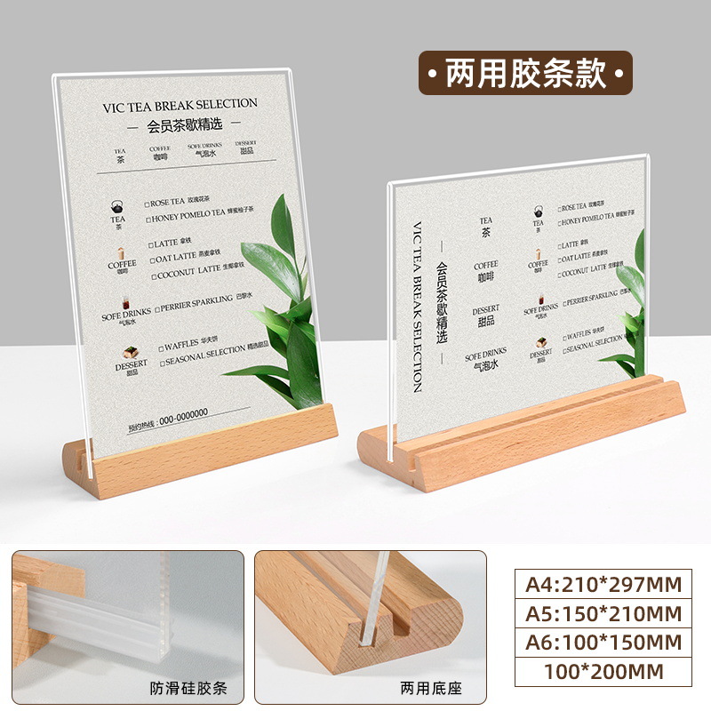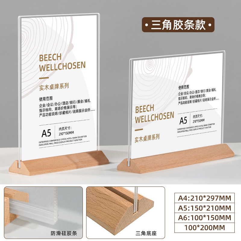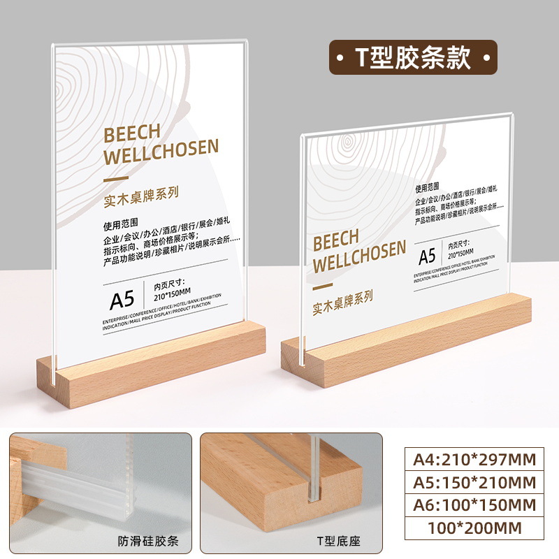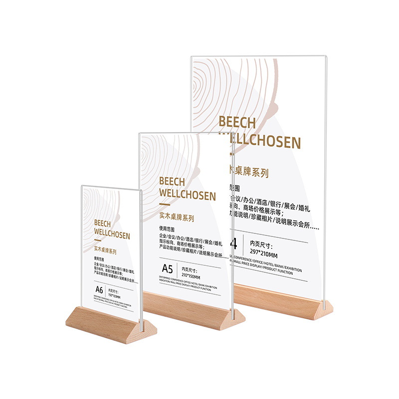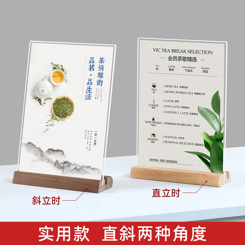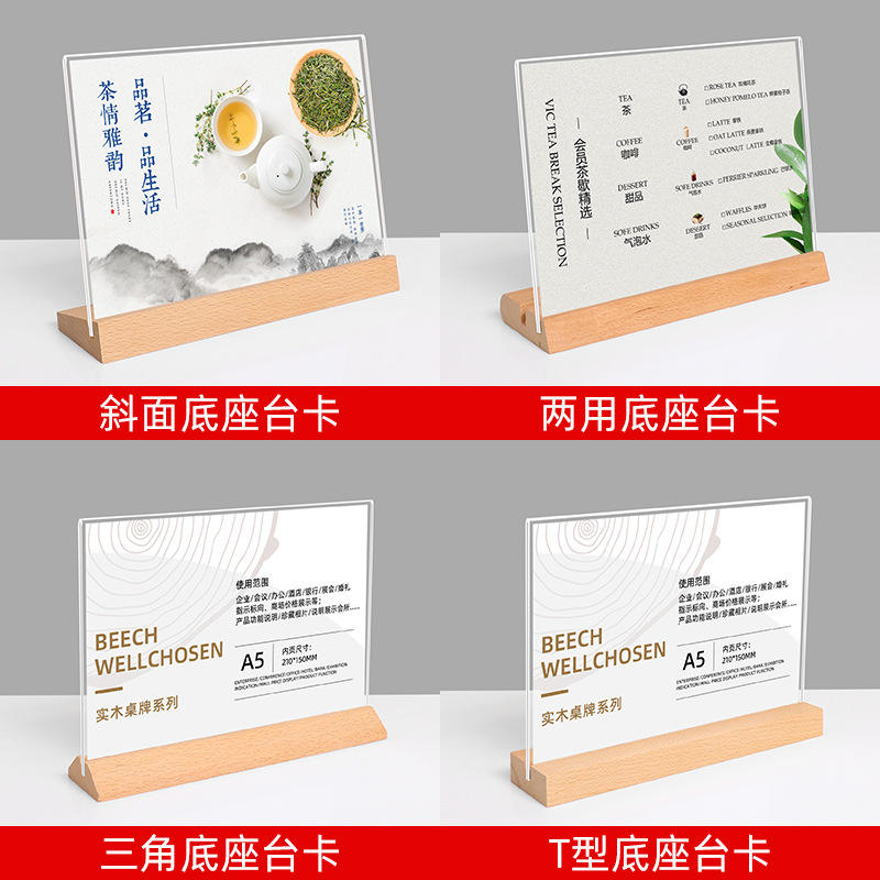 A4实木台卡展示牌台签桌牌立牌a6展示牌餐牌A5亚克力菜单牌现货批